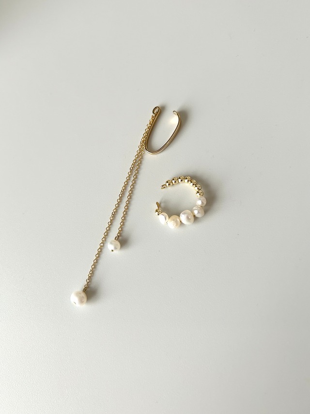 ・歪な淡水パールイヤーカフ 約22mm ・揺れる淡水パールイヤーカフ 約10cm 重ね着けも可愛い、淡水パールイヤーカフ2個セットです。 素材 合金、淡水パール パールアクセサリー パールイヤーカフ 淡水パール 耳元コーデ 大人アクセサリー 高見えアクセサリー