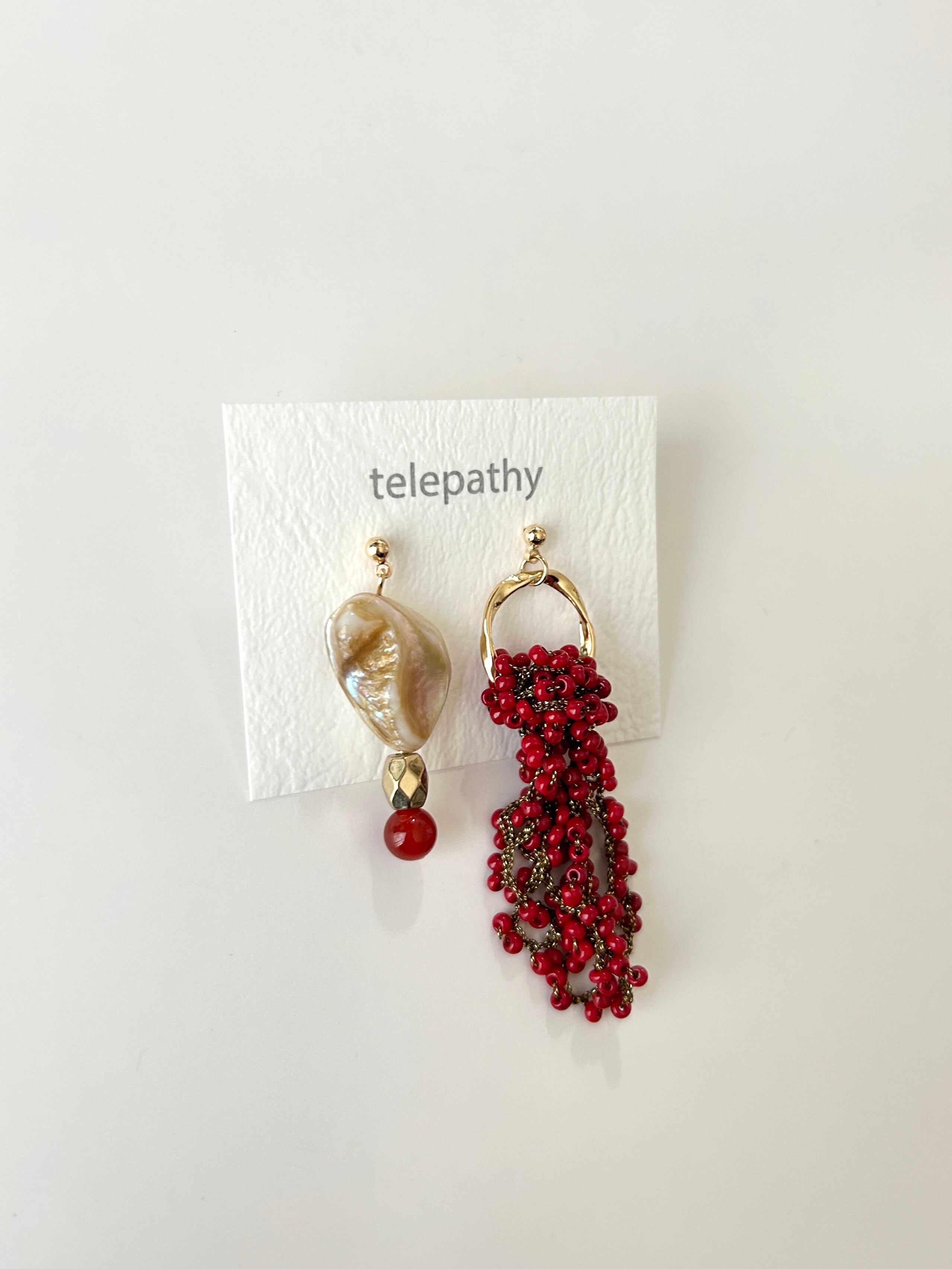 シェル・ビーズタッセルのアシンメトリーピアスです。