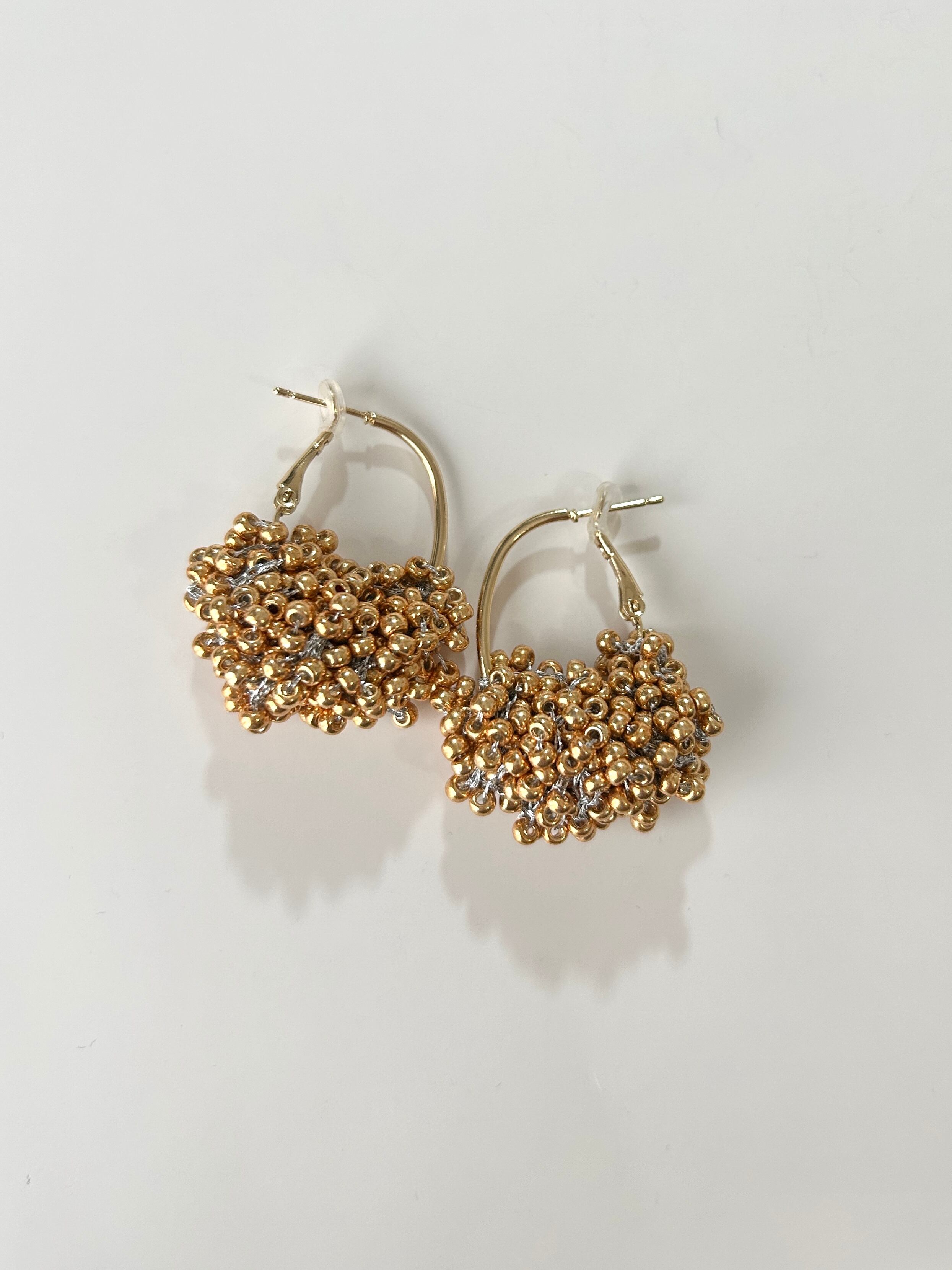 お客様オーダー分 ゴールドビーズ刺繍フープピアス