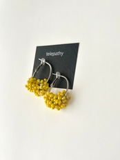 銀糸で、イエローガラスビーズをひと針ひと針編み上げました。