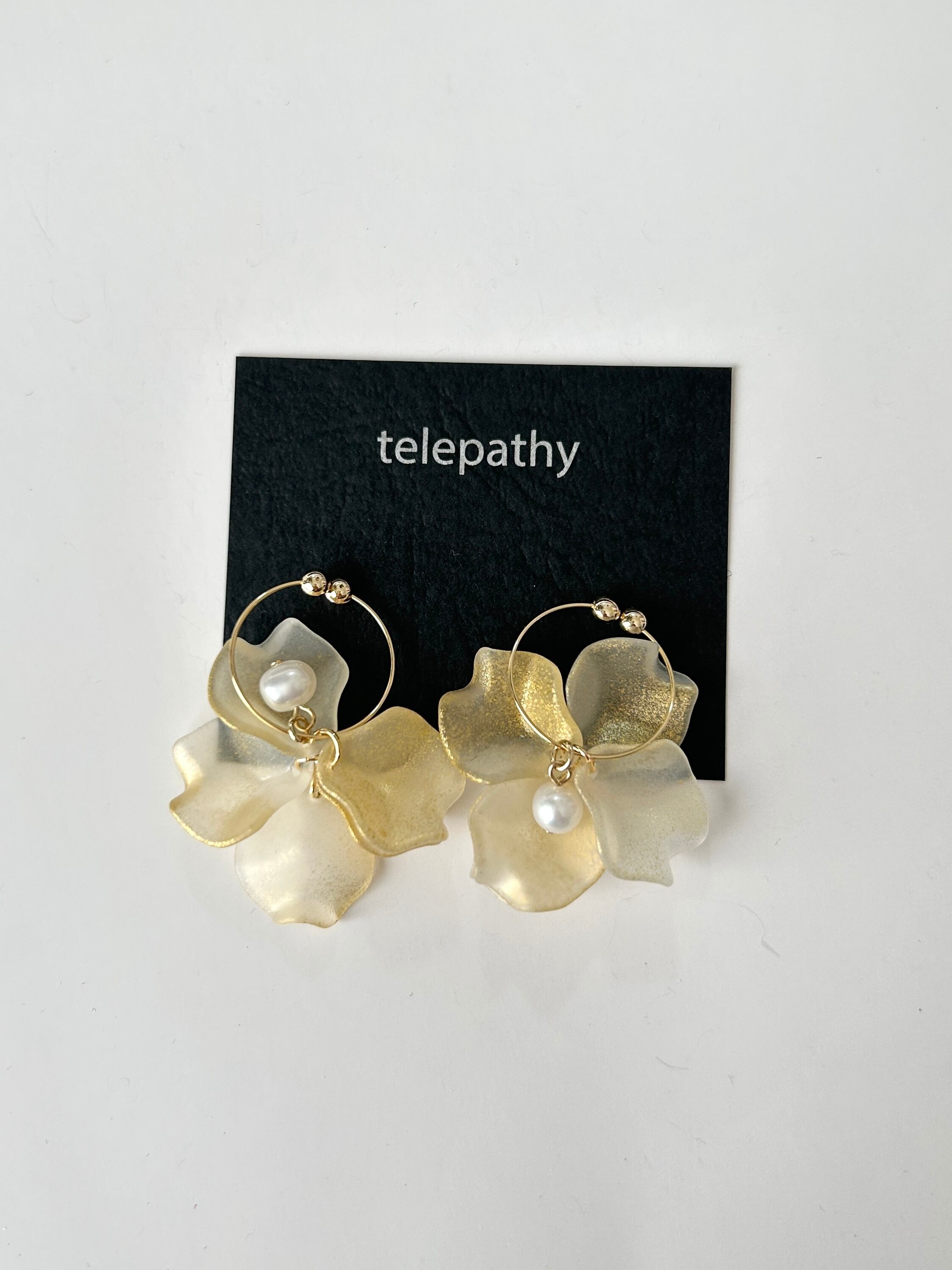 肌馴染みの良いゴールド系花びらに、忍ばせた淡水パールが上品です。