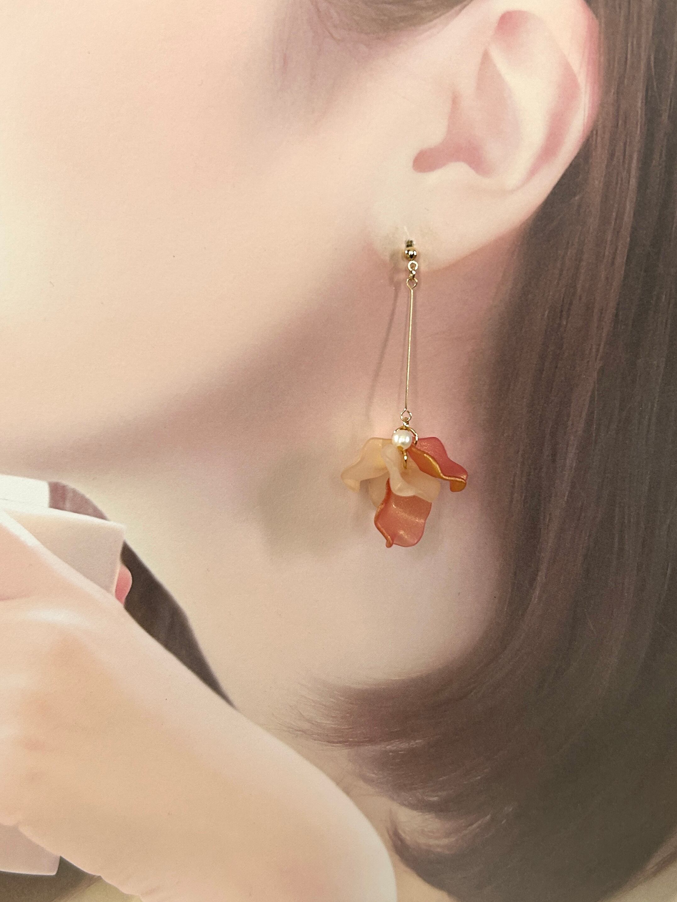 花びらがひらひら舞う、控えめ淡水パールを合わせて可憐に仕上げた春ピアスです。