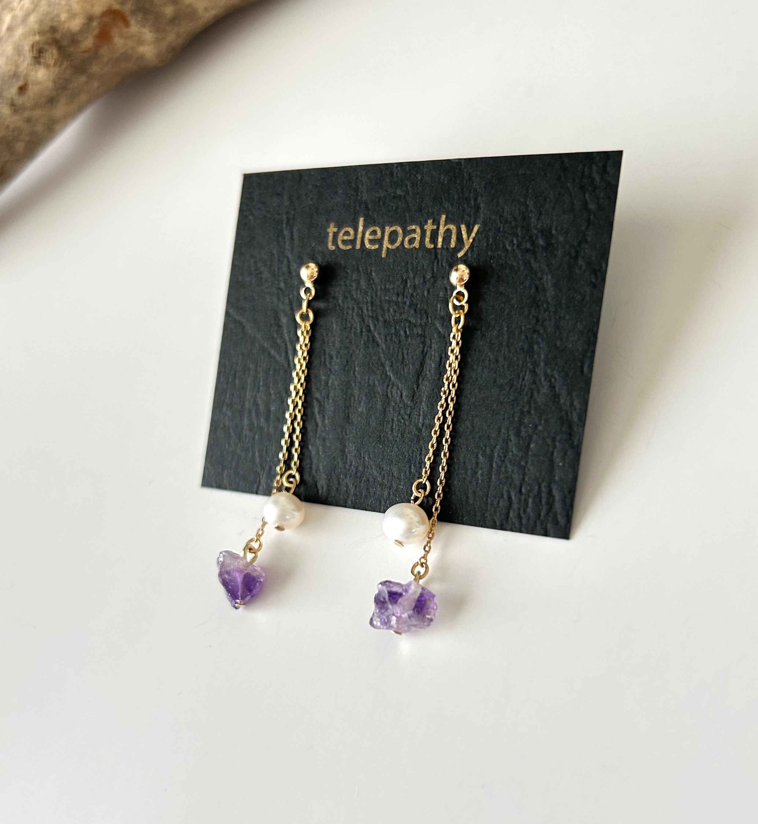 揺れる淡水パール×ラフカットアメジストピアス/イヤリング