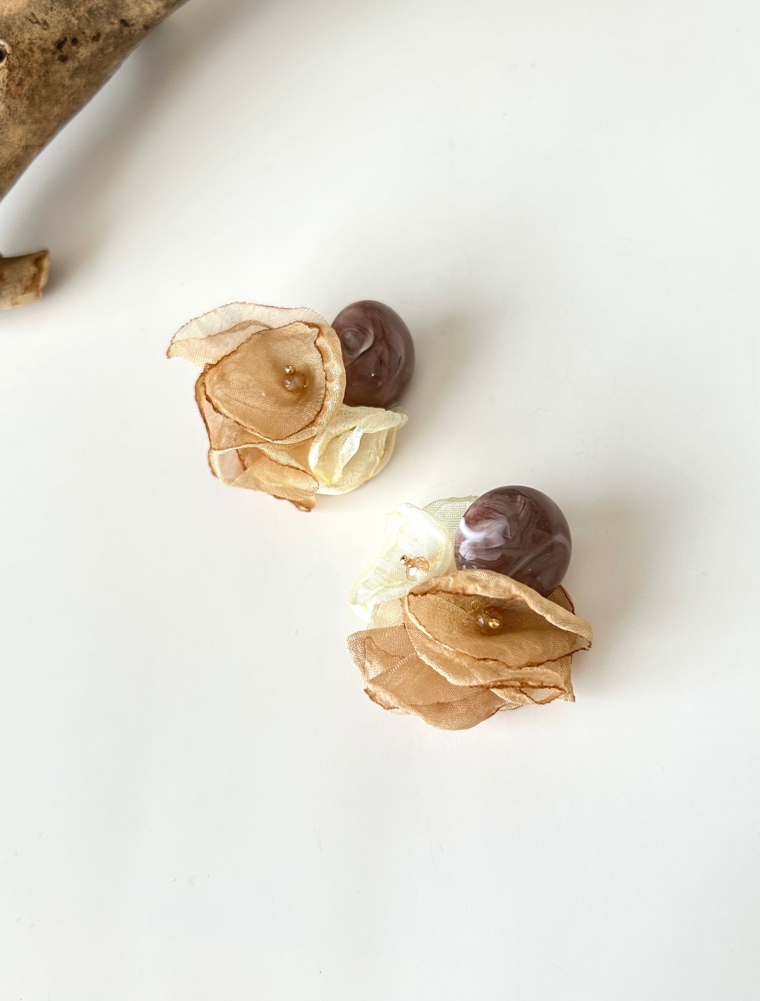 ドイツ製アクリルカボション×シフォンフラワーイヤリング