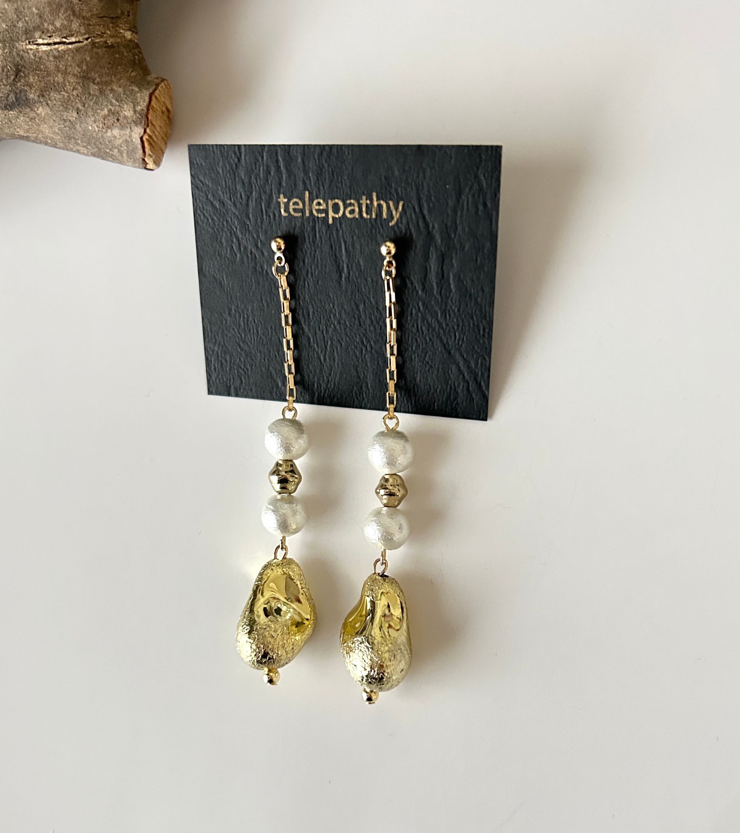 コットンパール×ゴールド 揺れるピアス/イヤリング