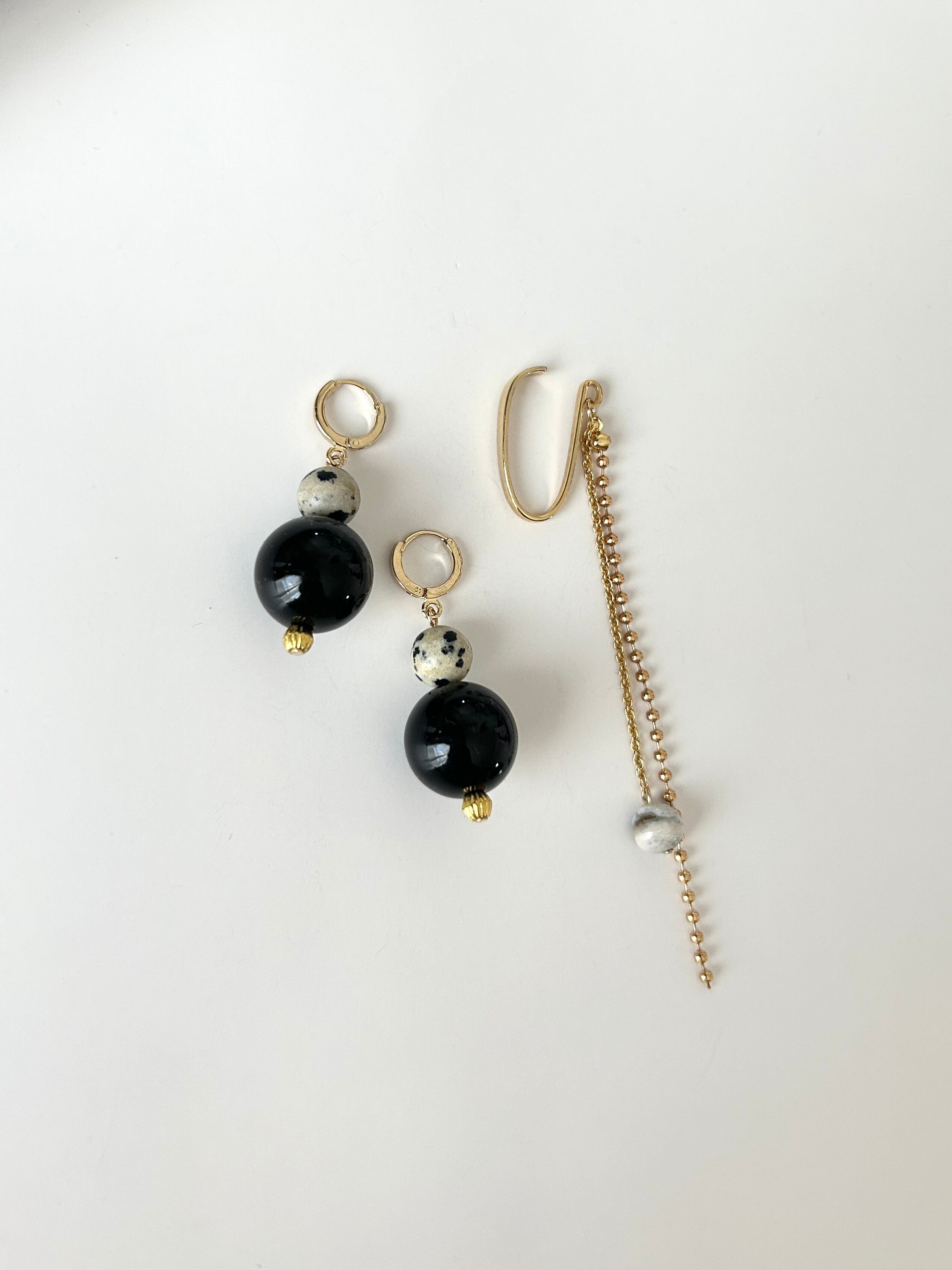 モノトーンワンタッチフープピアスと揺れるイヤーカフ セットです。
