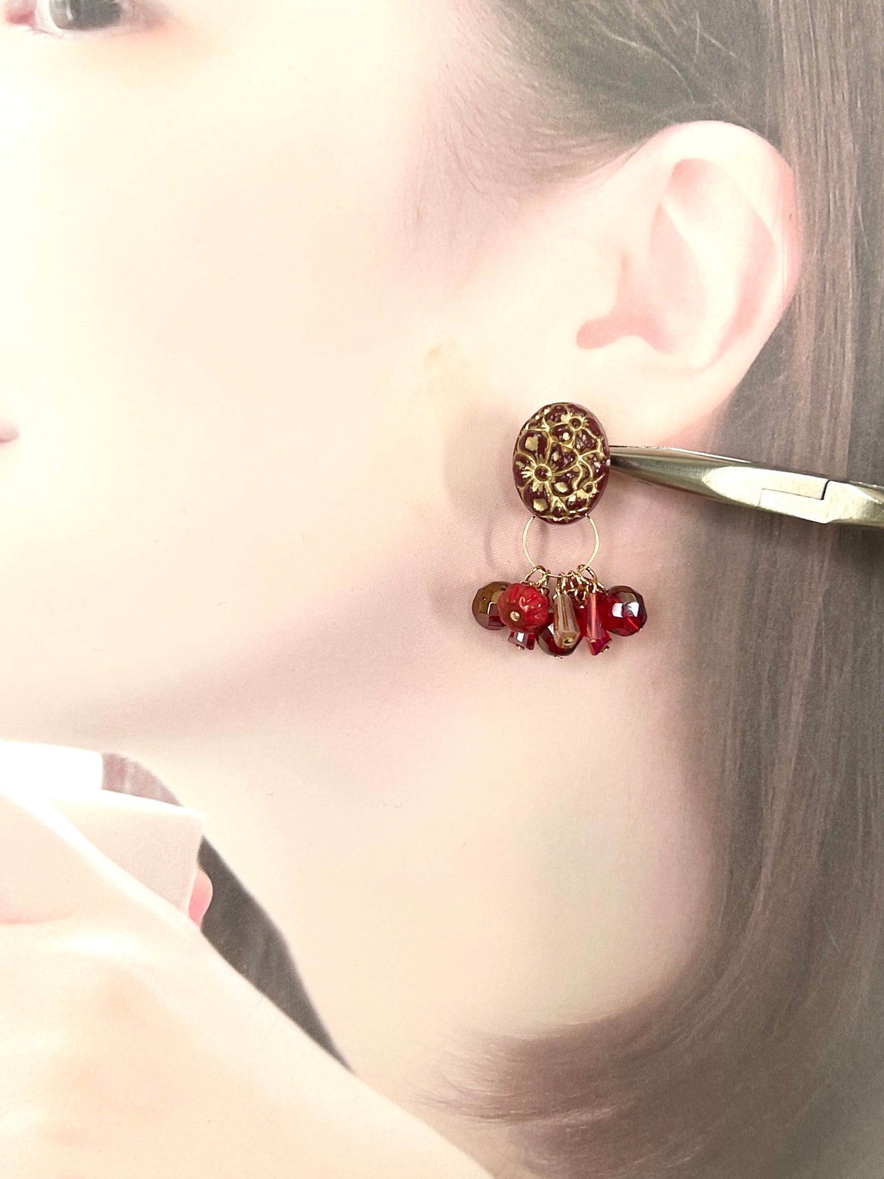 チェコビーズ・タワービーズのジャラジャラを合わせ、2way仕様に仕上げました。