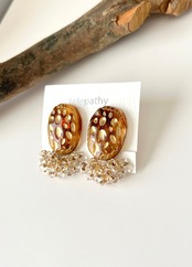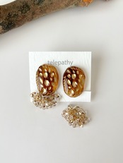 べっ甲カラーにゴールド柄入り個性派カボション×たっぷりチェコビーズ。