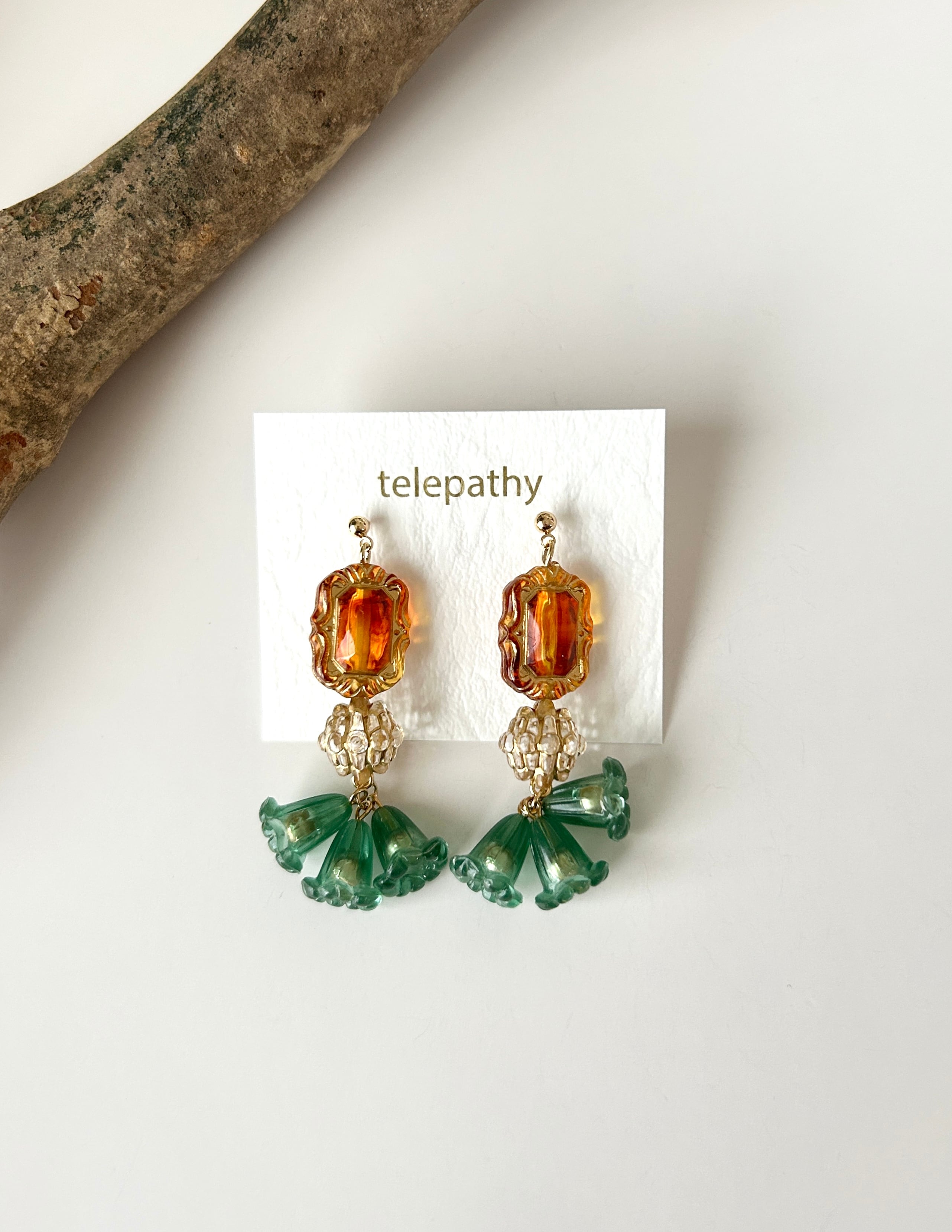 アンティーク調べっ甲カラー×グリーンのドイツ製アクリルフラワー。