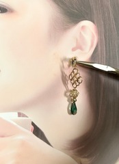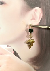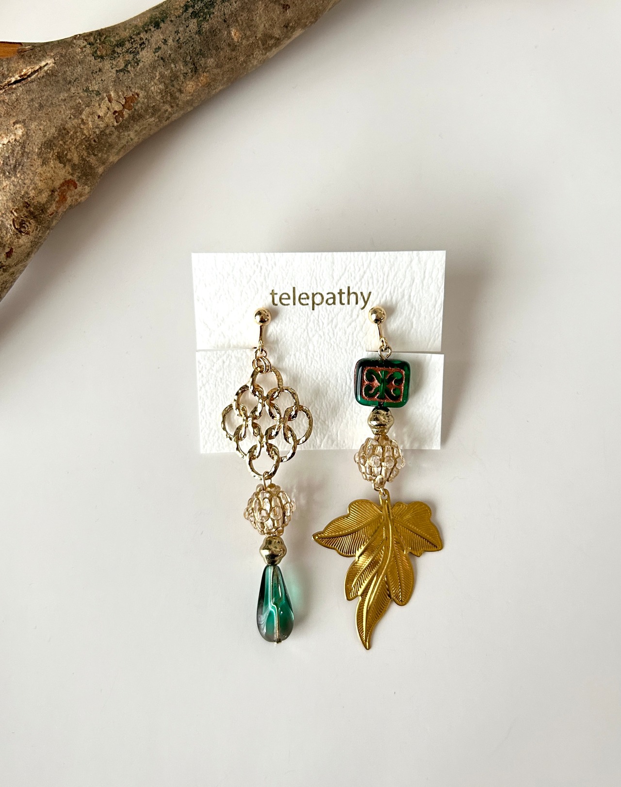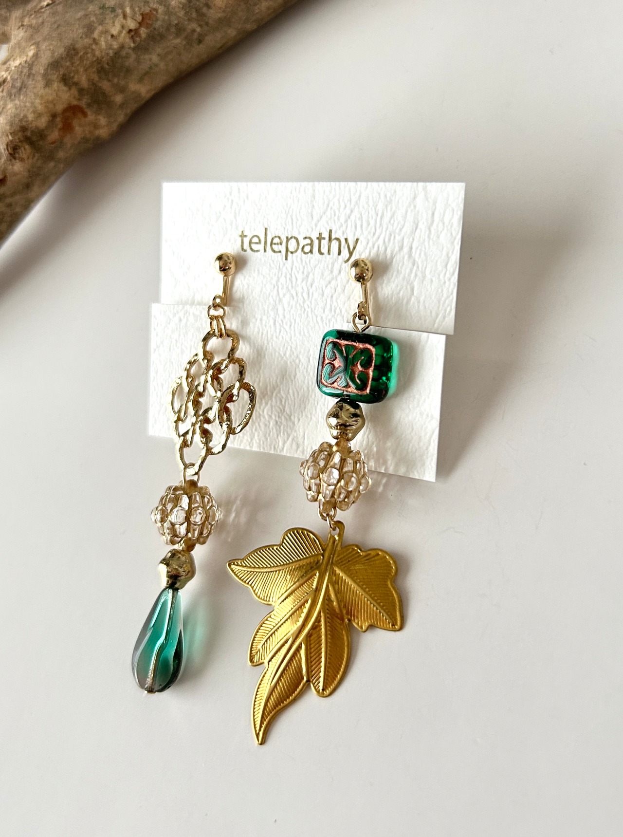 グリーン×ゴールド 大人アシンメトリーイヤリング