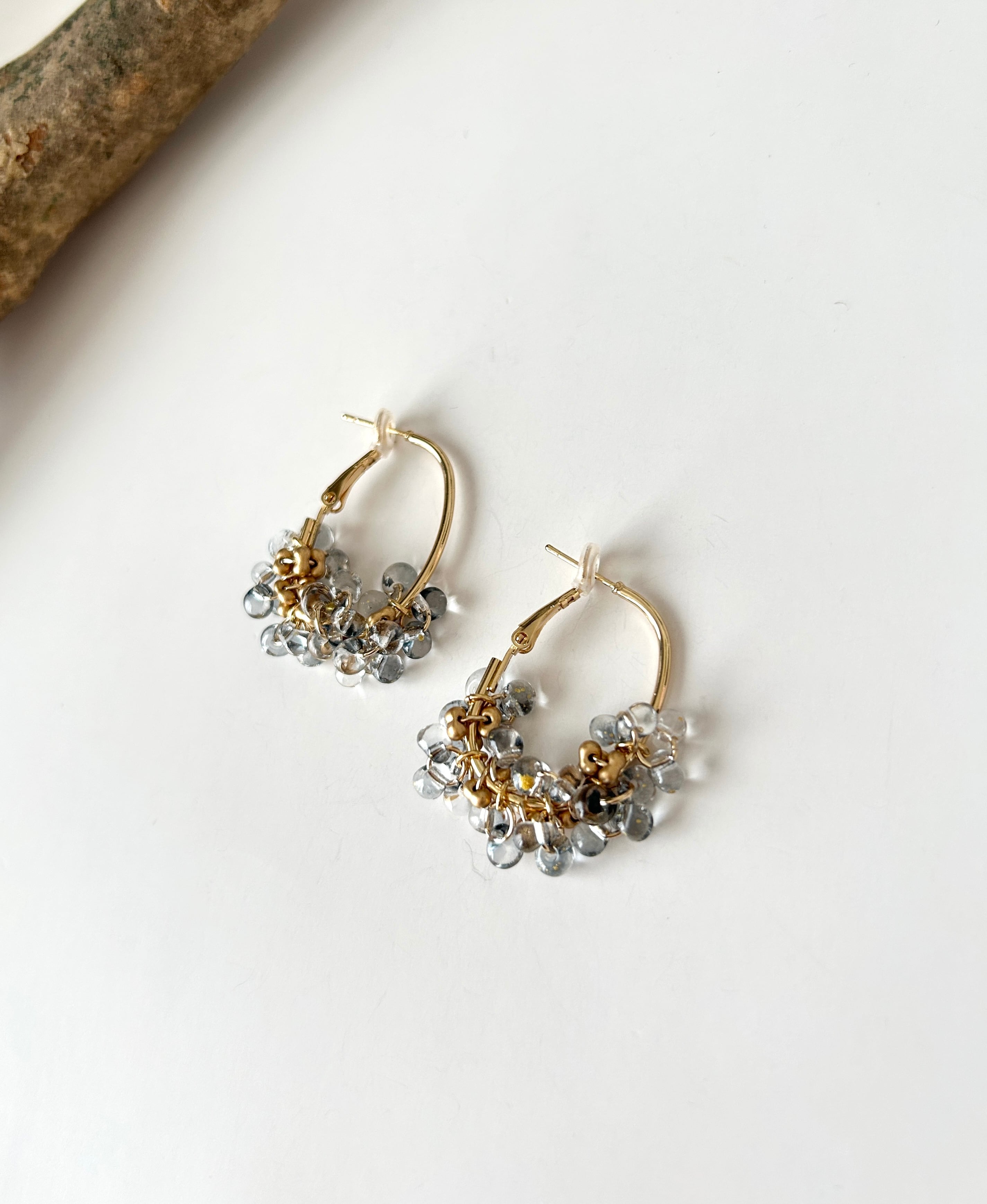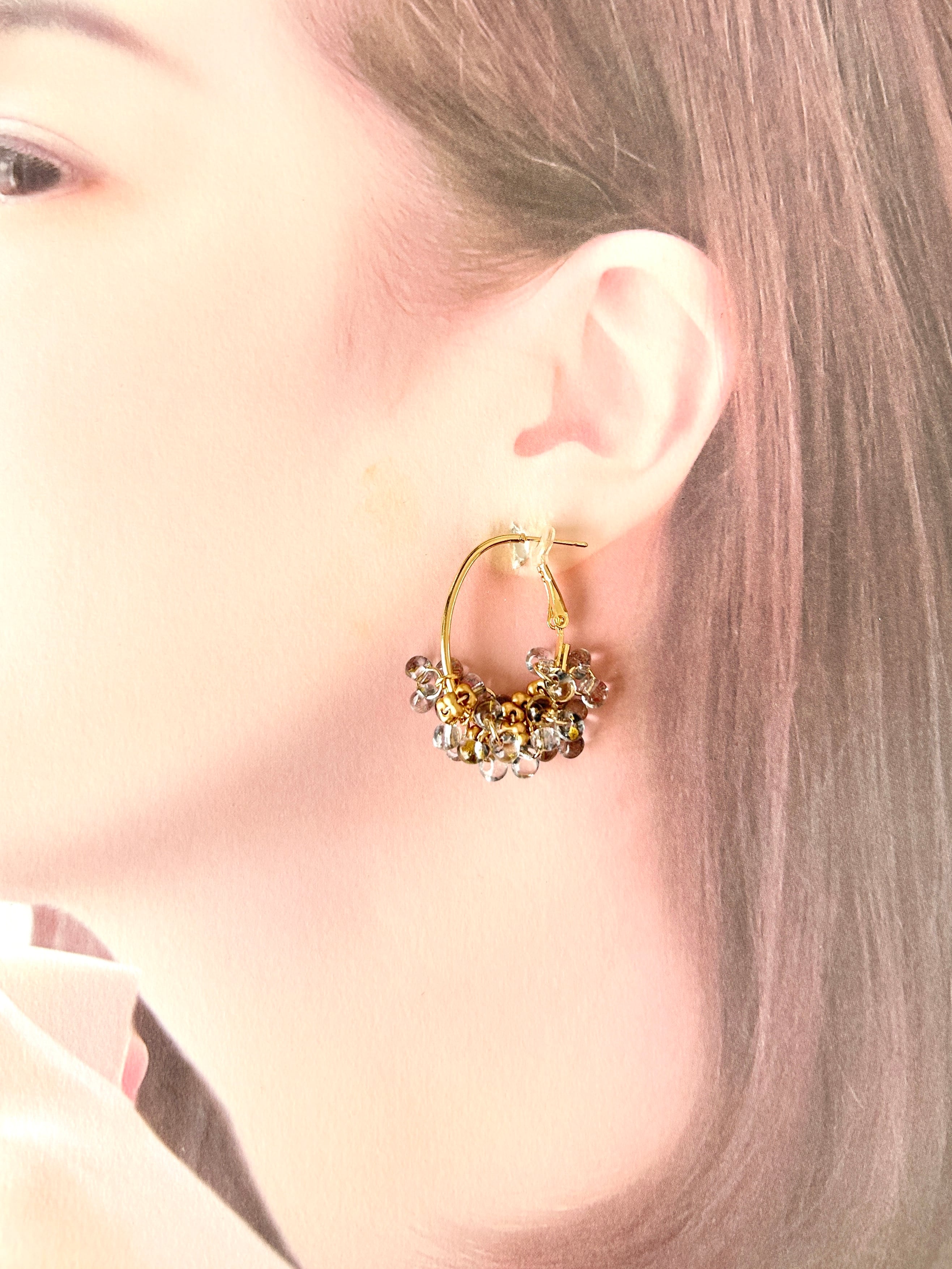 キラキラジャラジャラ可愛い、大人フープピアスです。