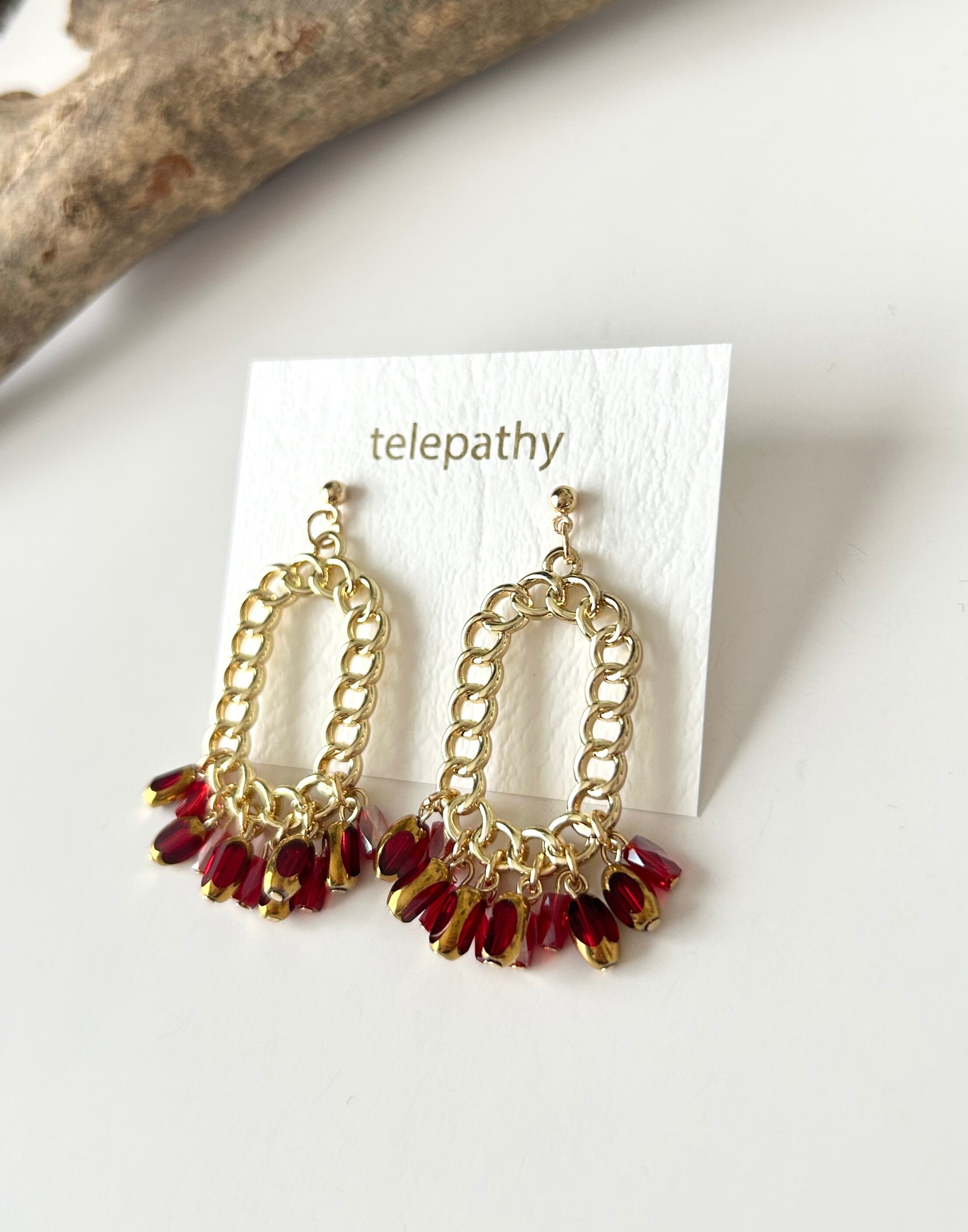シャラシャラガラス赤ビーズピアス/イヤリング