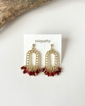 あみあみメタルパーツに、2種のガラスビーズを合わせた、さりげない赤が素敵な大人ピアスです。
