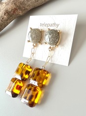 グレーラメ×べっ甲カラーレオパードピアス チタンポスト