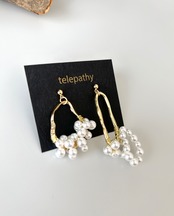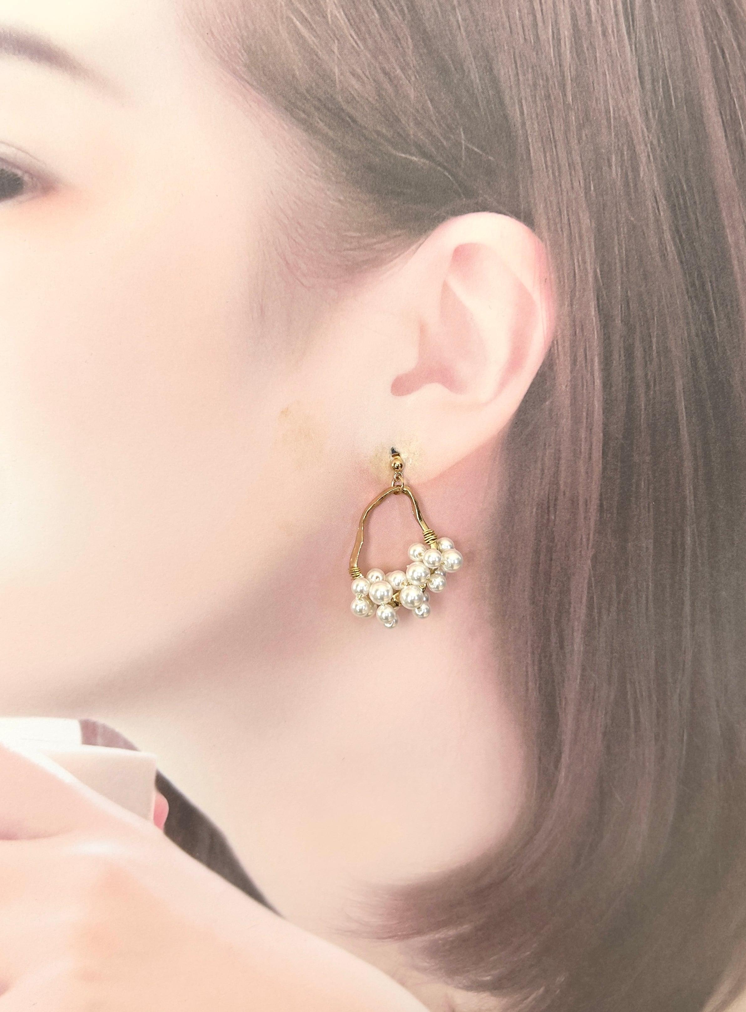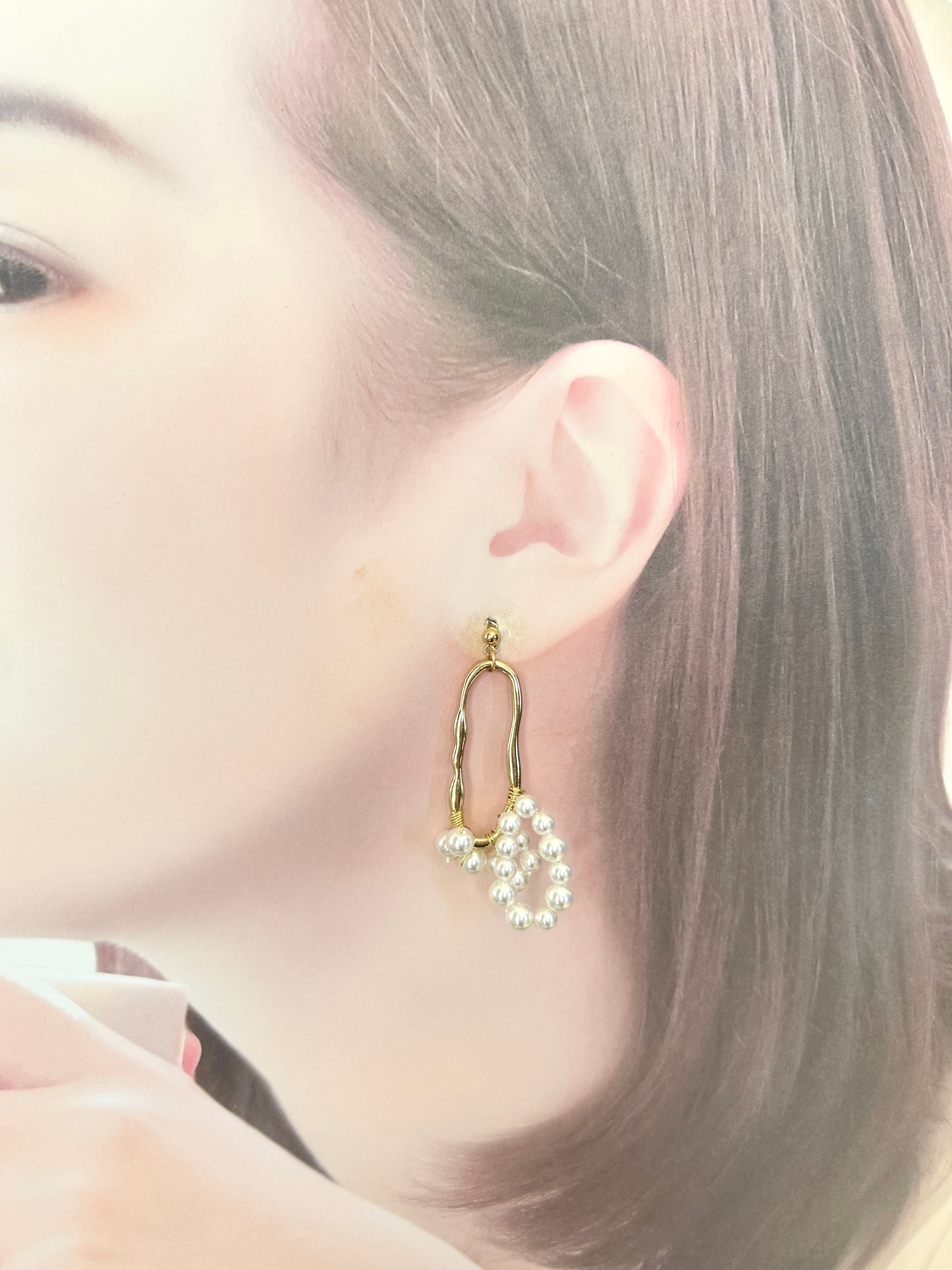 メタルにパールを纏わせた、動きのあるデザインが面白い、個性派アシンメトリーピアスです。