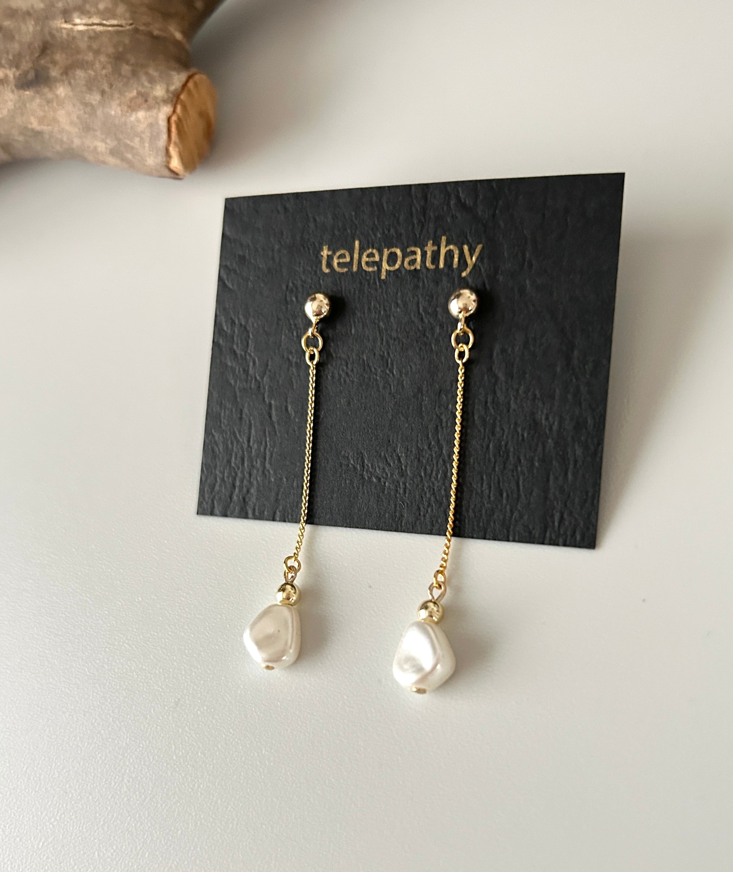 プチパール×極細チェーン チタンポストピアス/イヤリング/樹脂ノンホールピアス