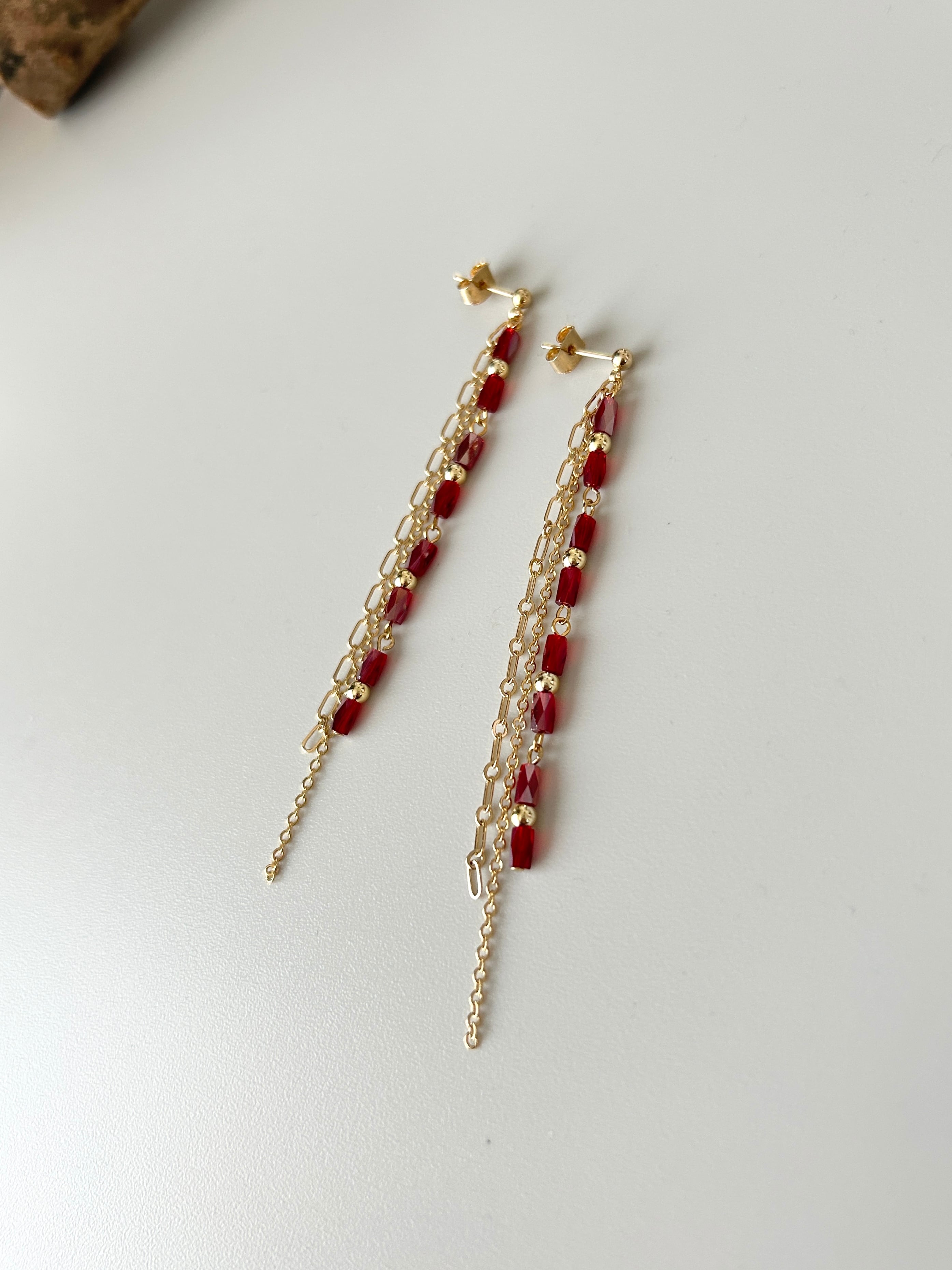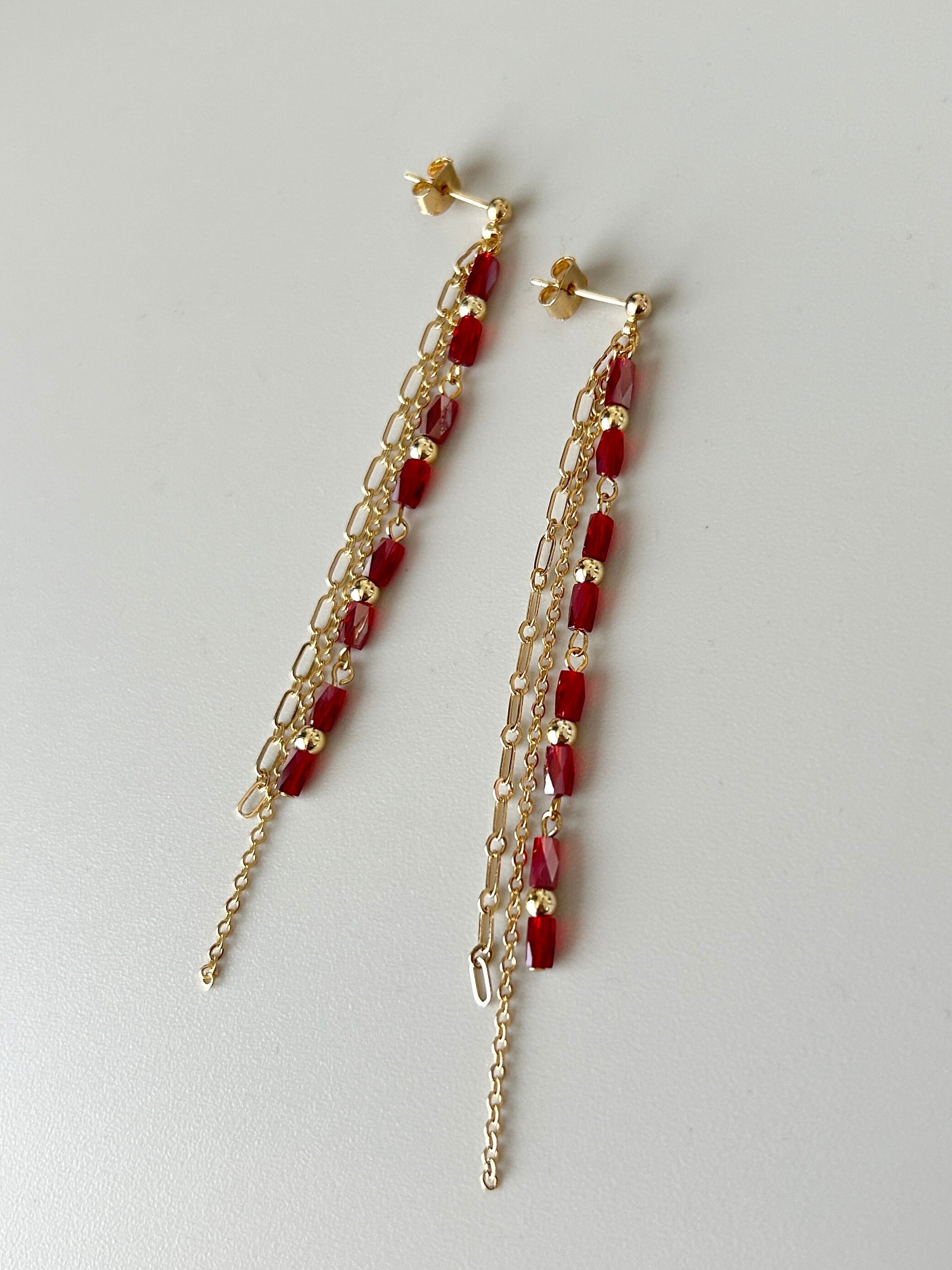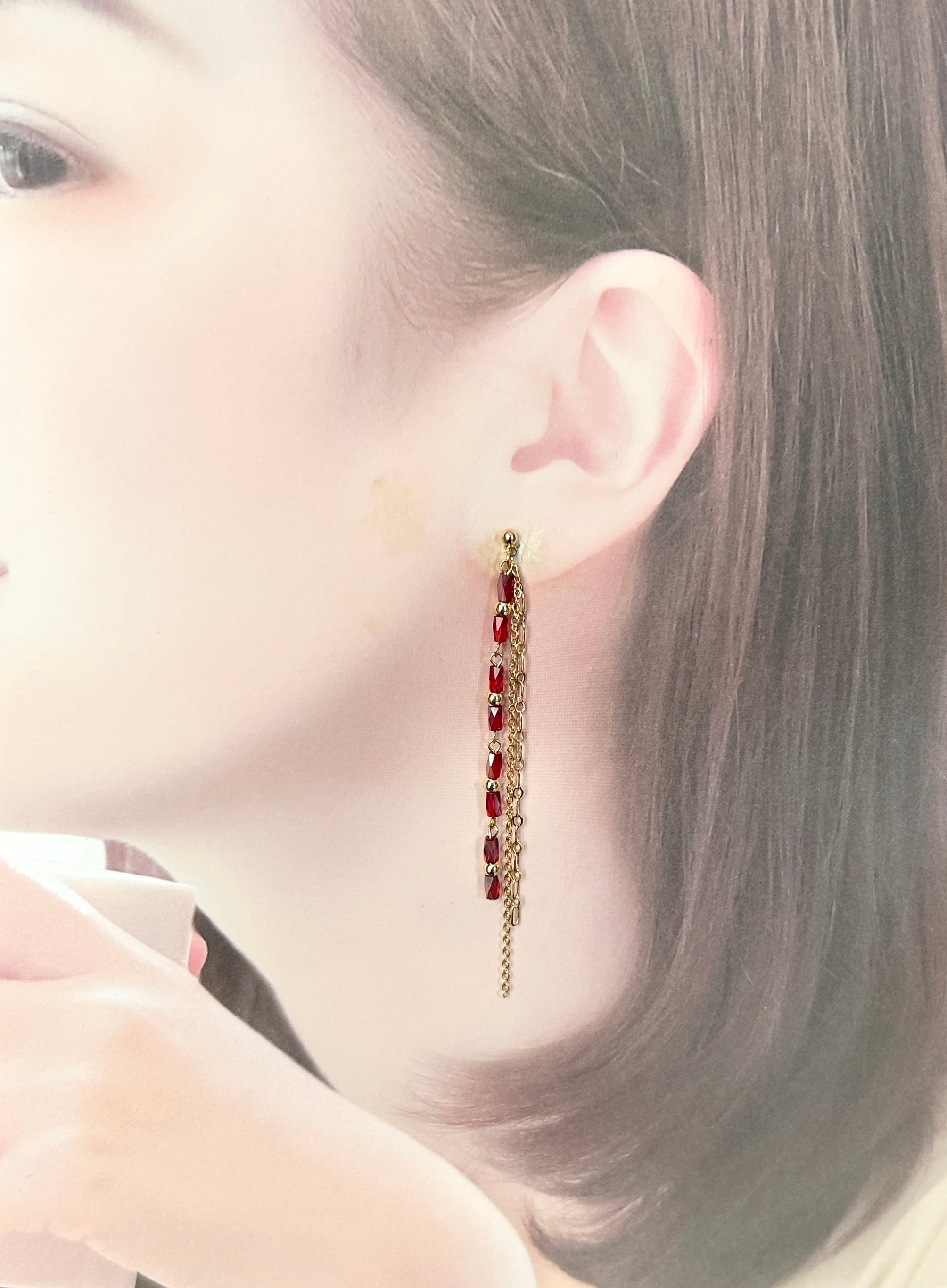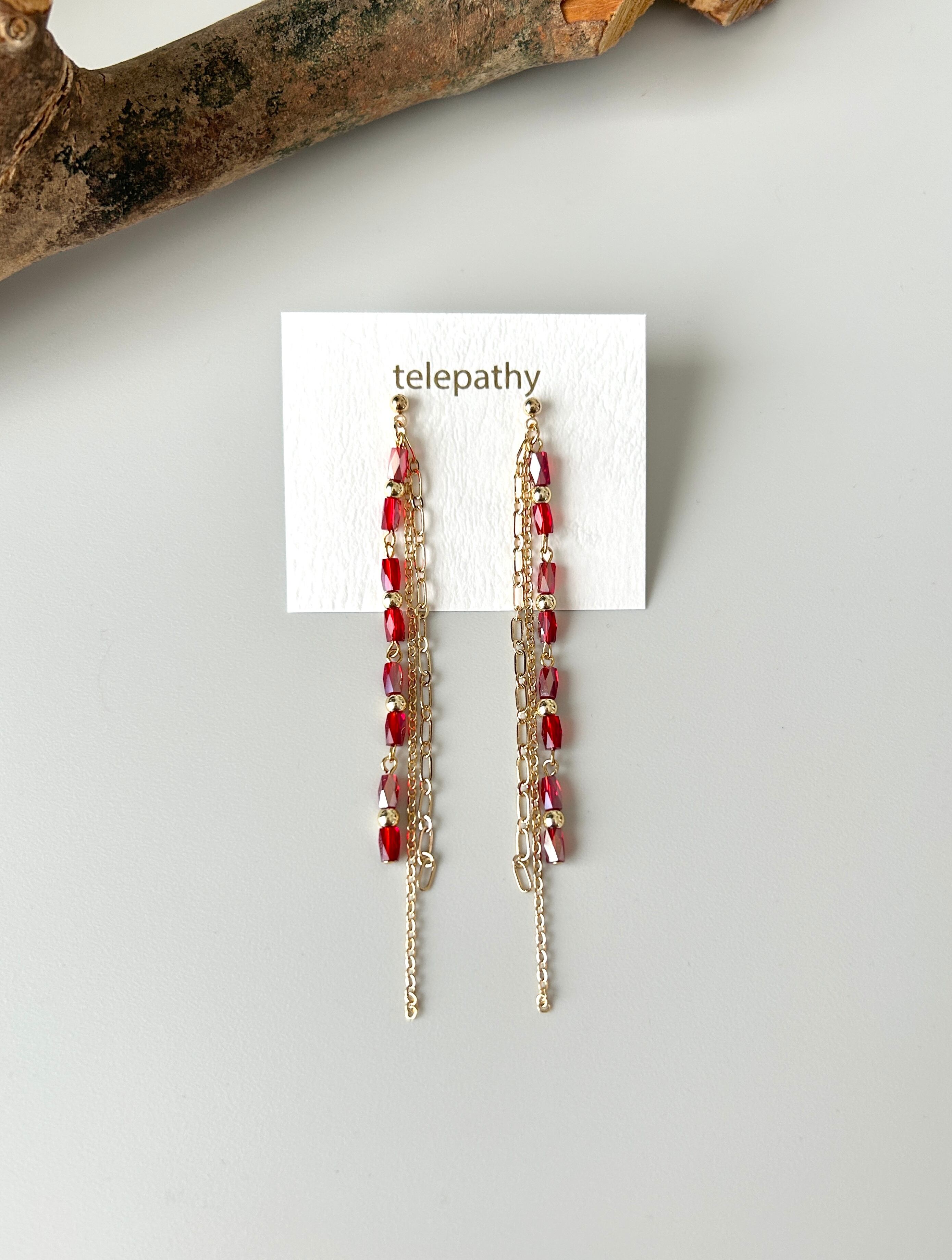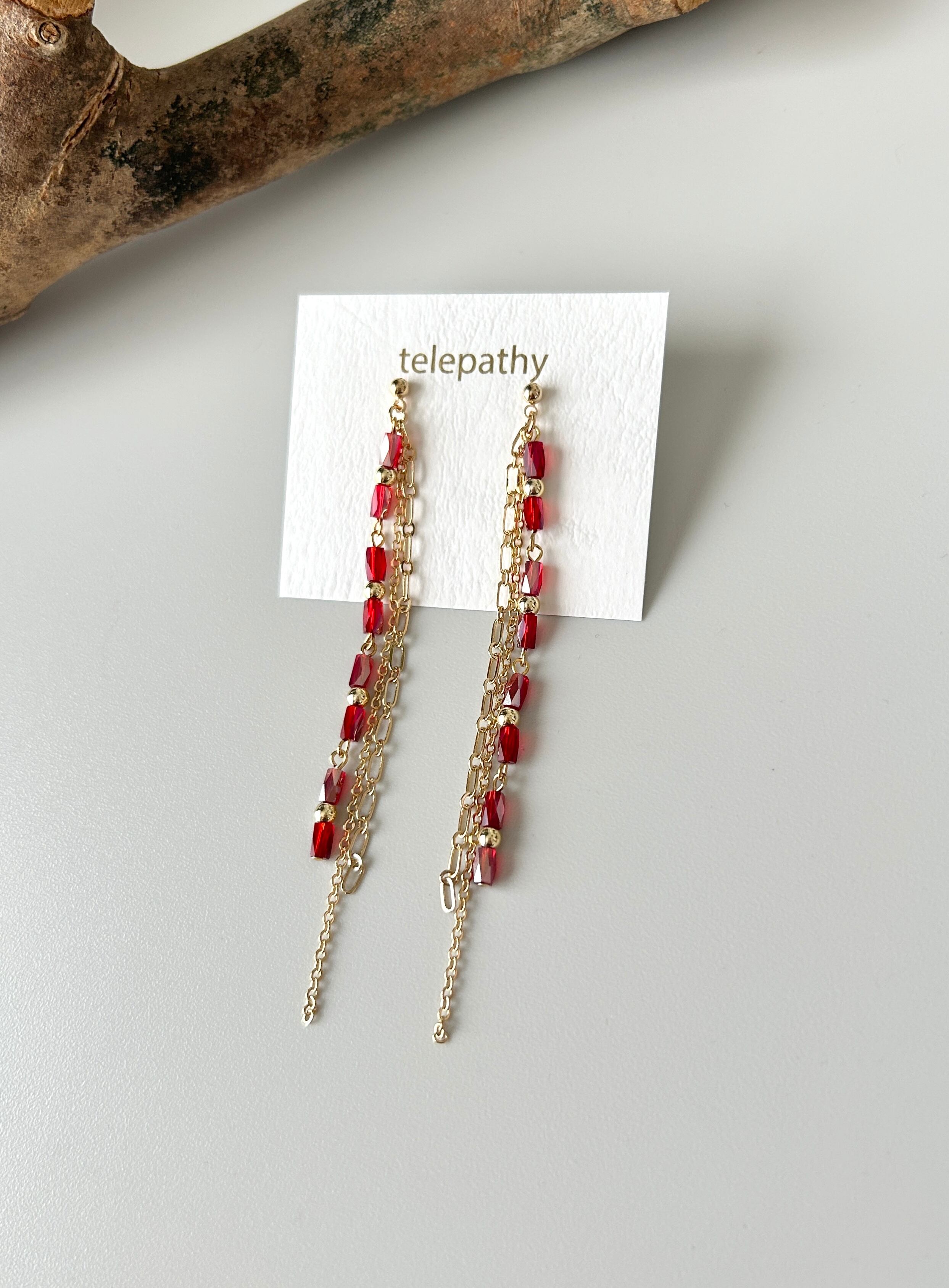 ガラスビーズ&チェーン ロングピアス/イヤリング クリスタルレッド