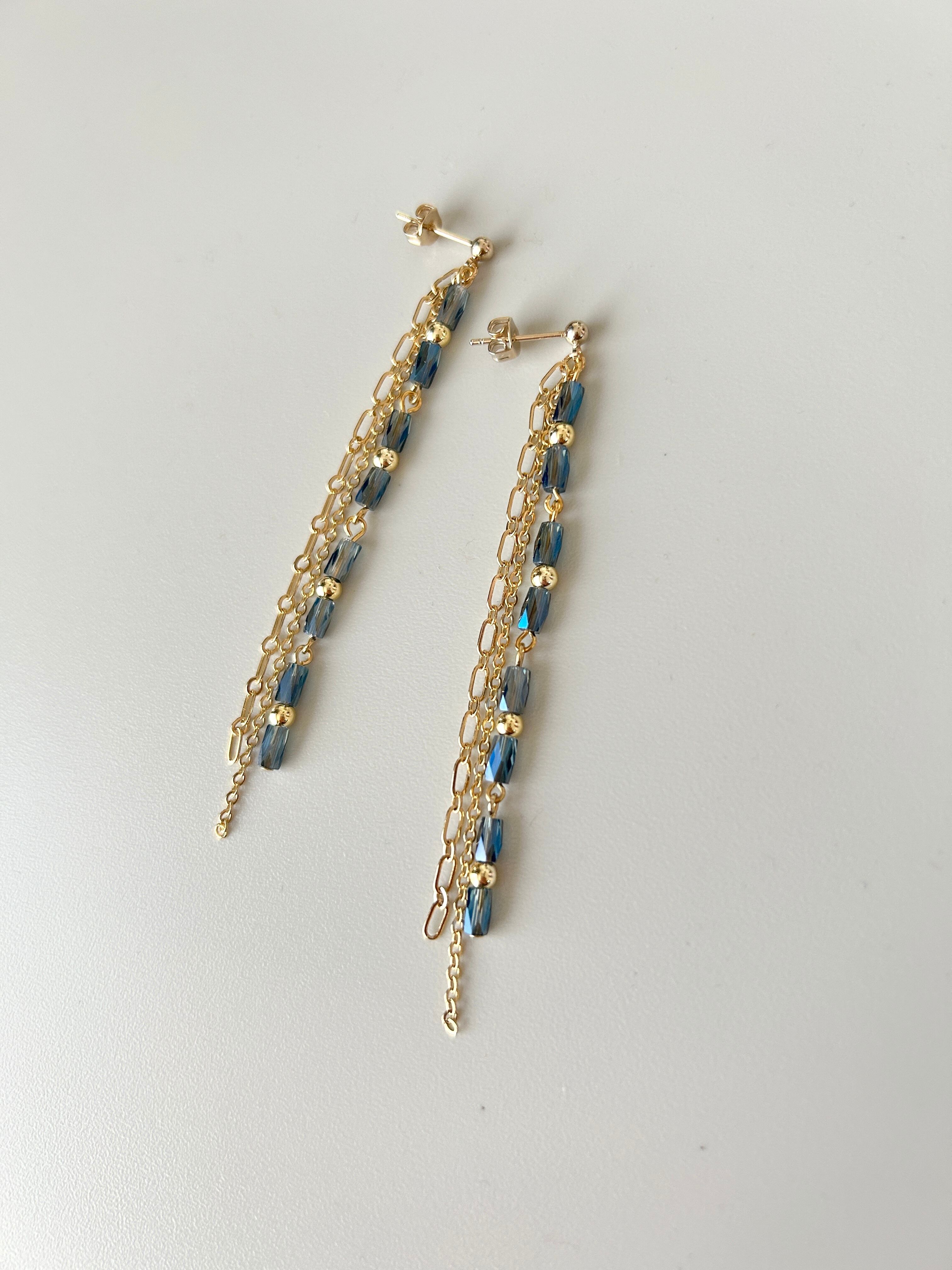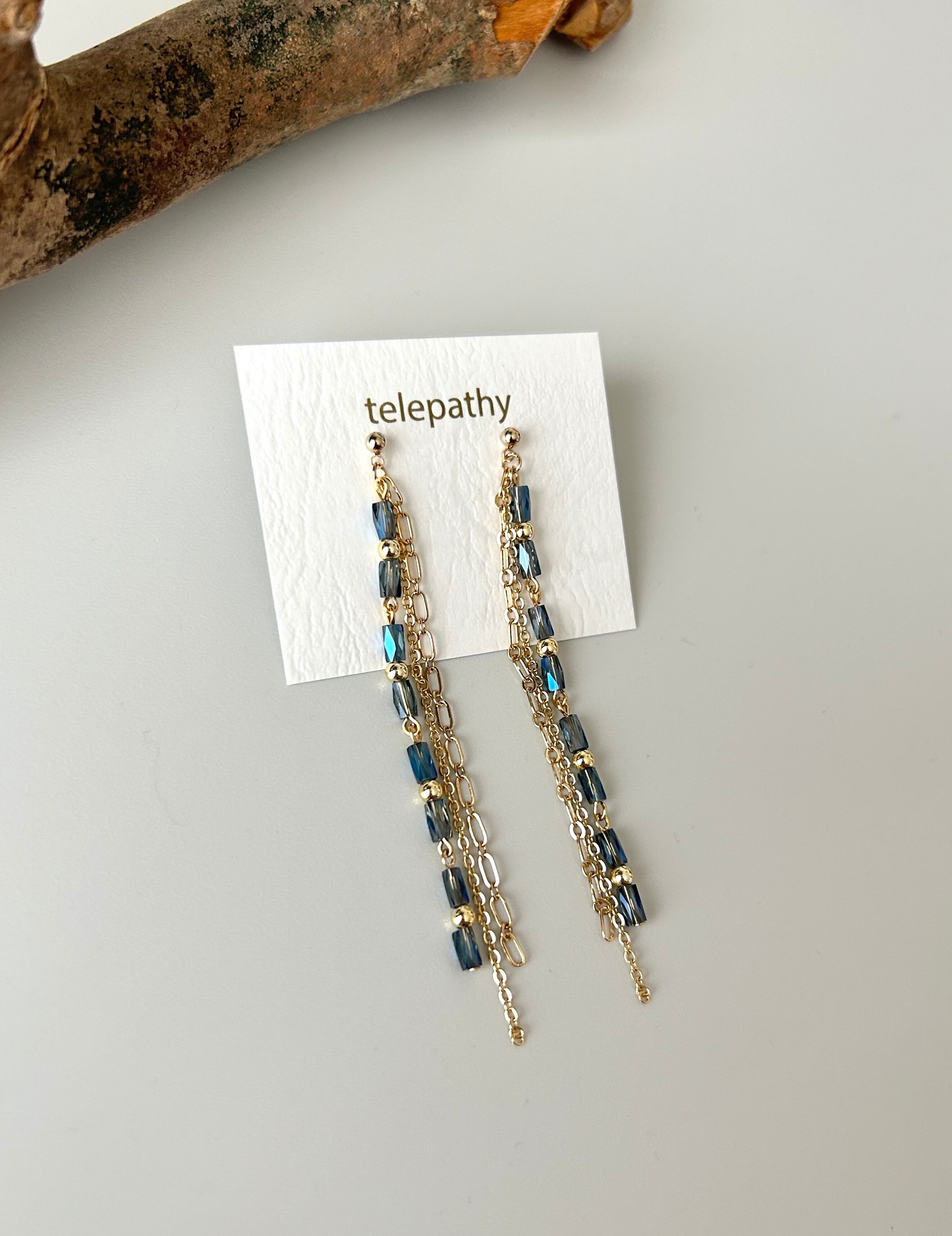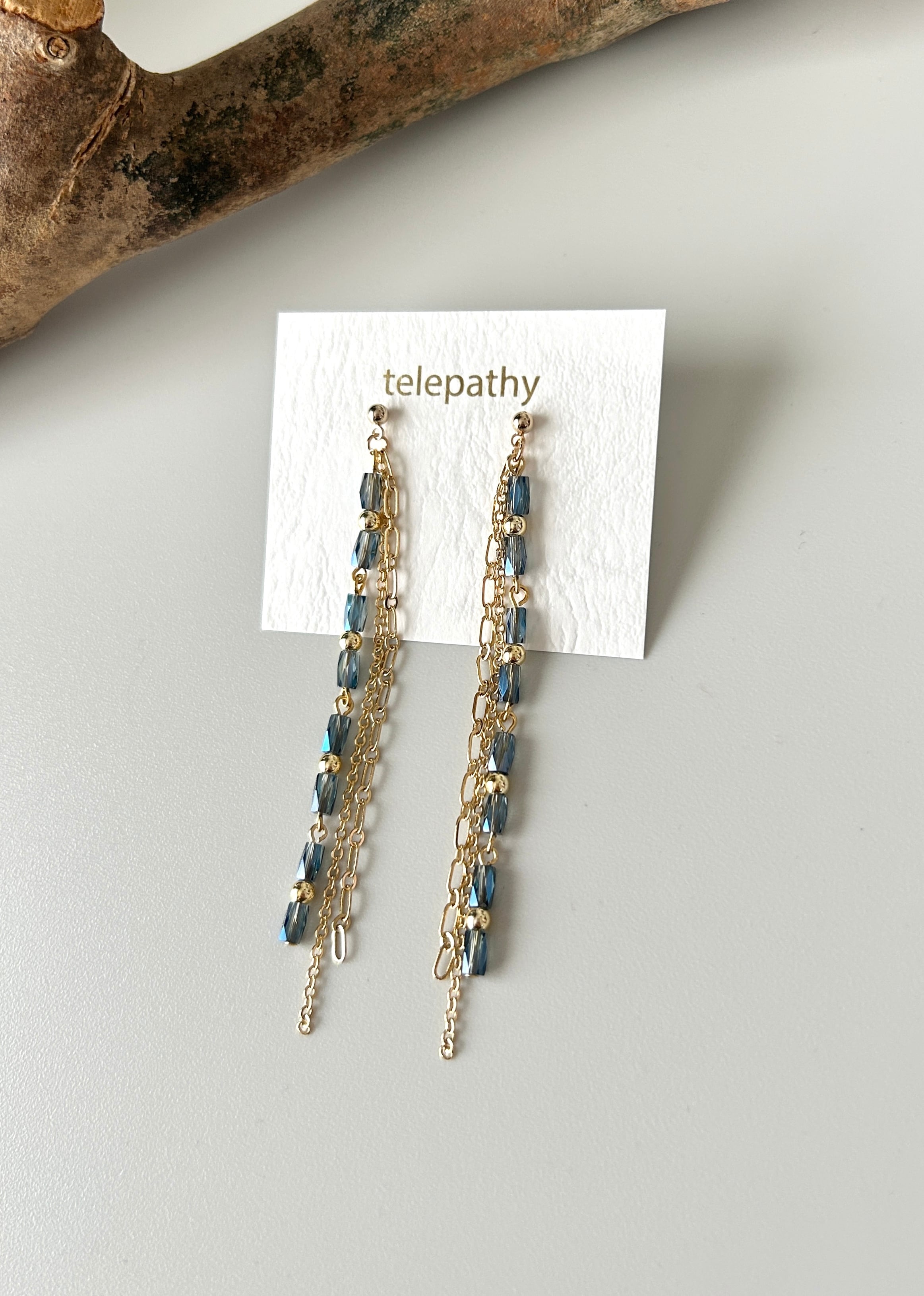 ガラスビーズ&チェーン ロングピアス/イヤリング クリスタルブルー