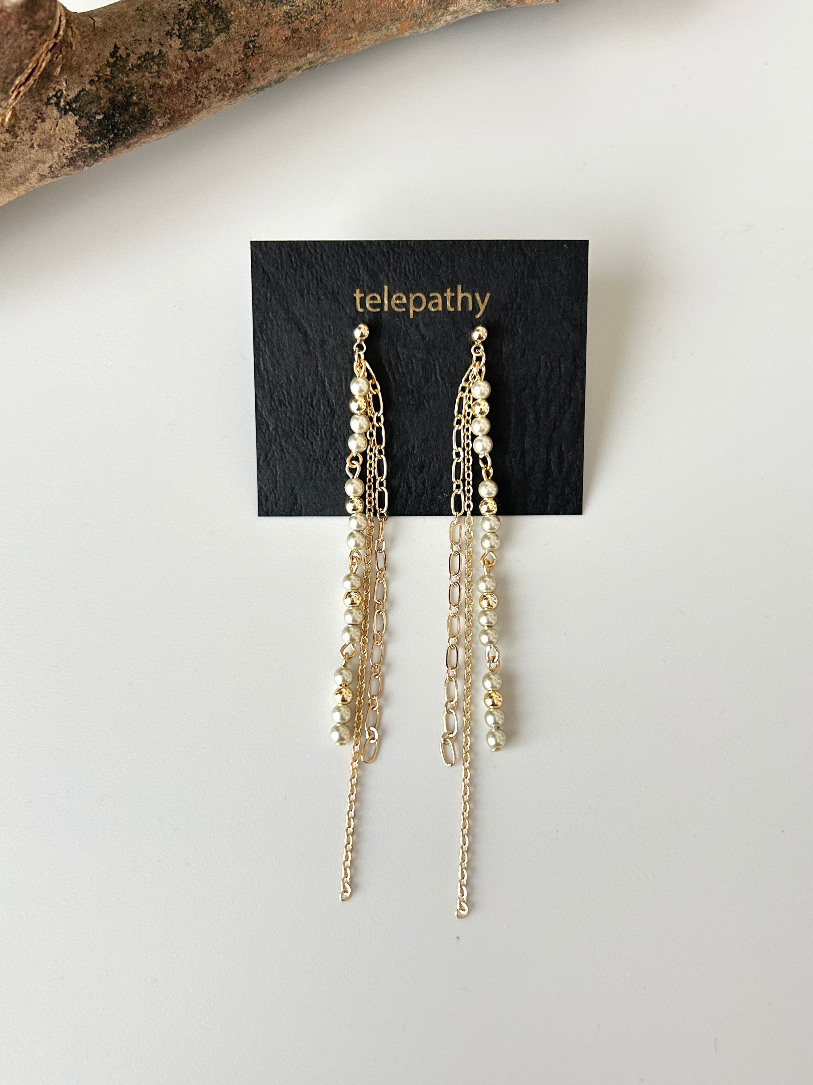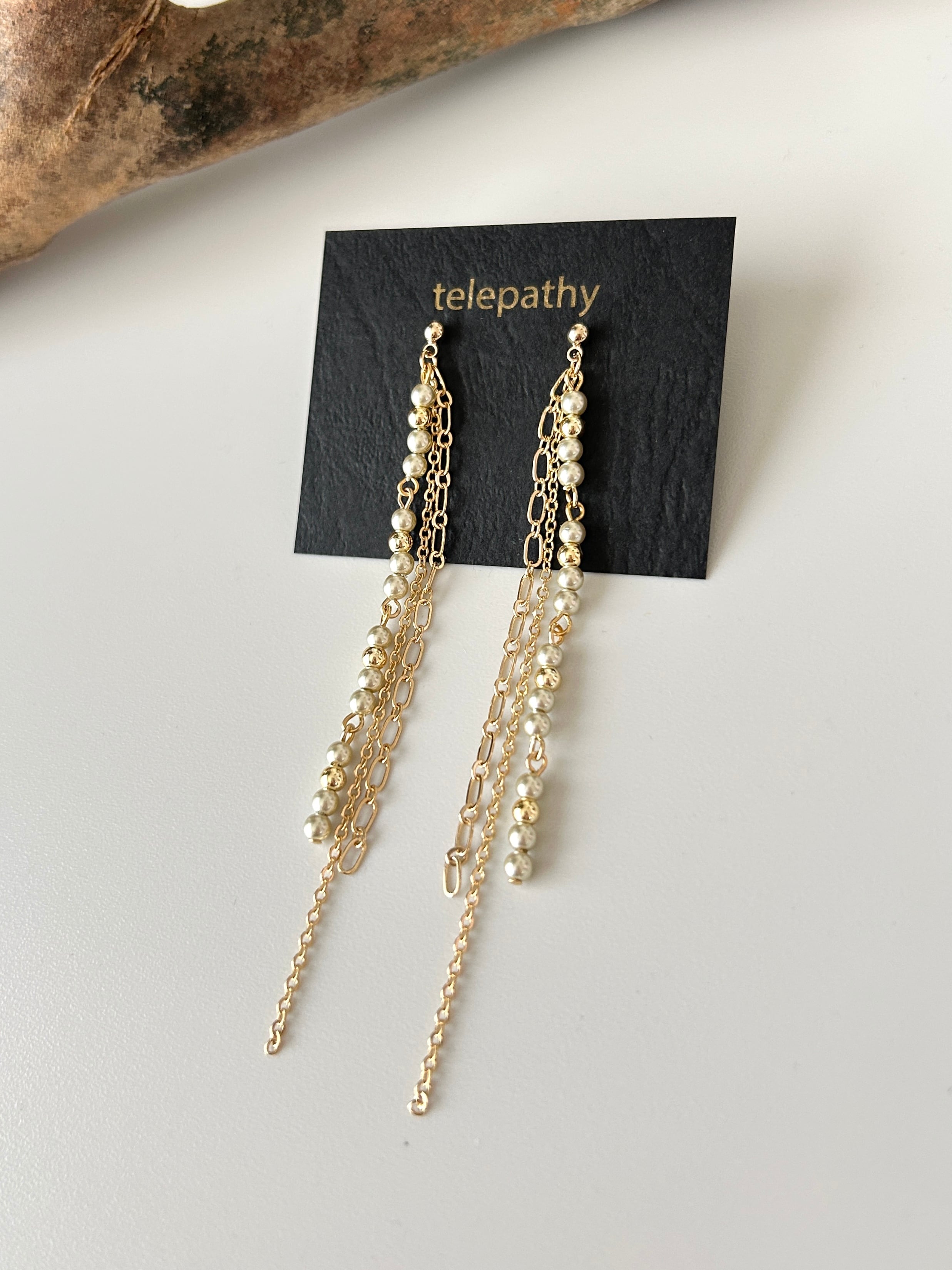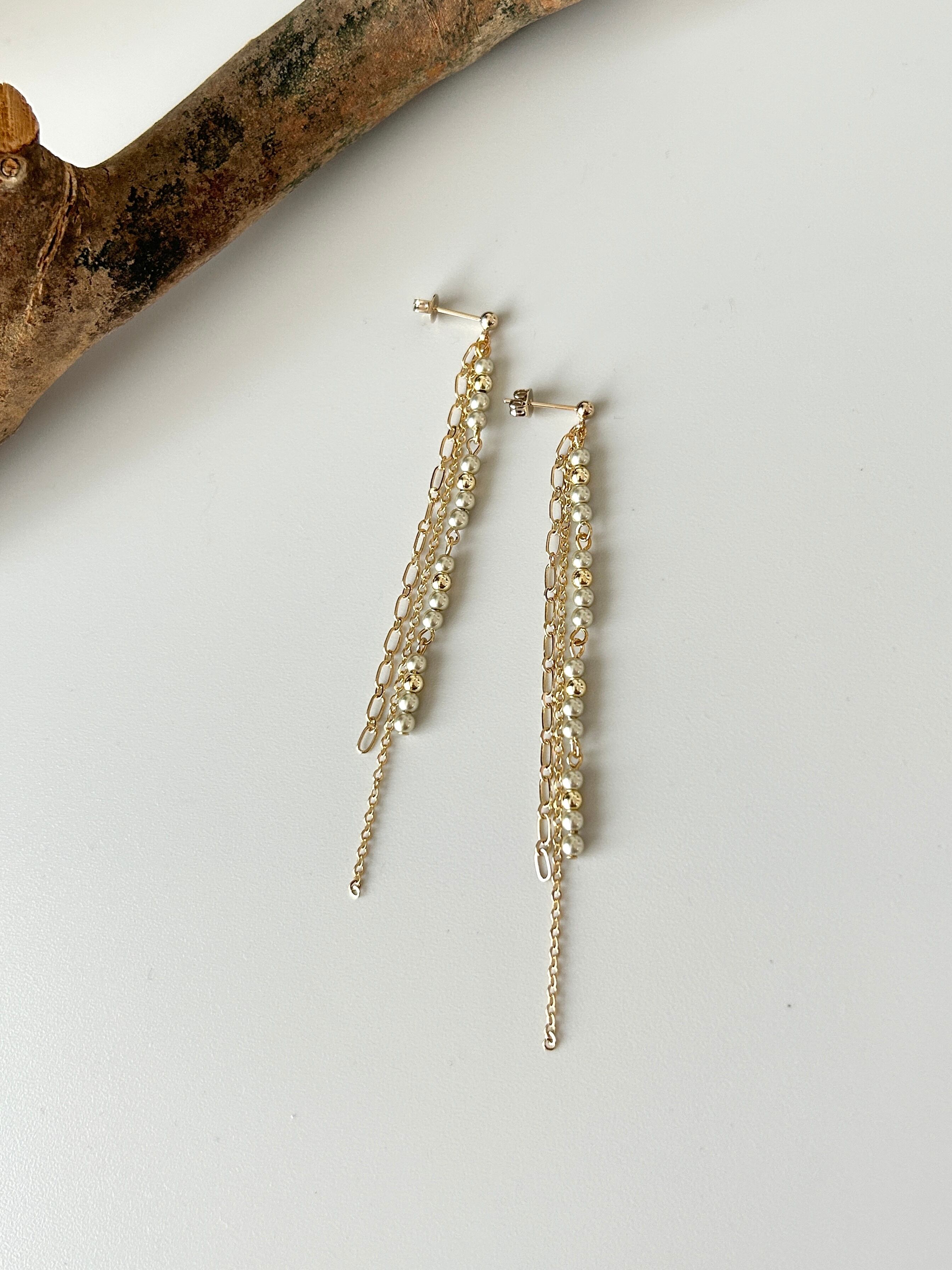 シャンパンゴールドパール&チェーン ロングピアス/イヤリング