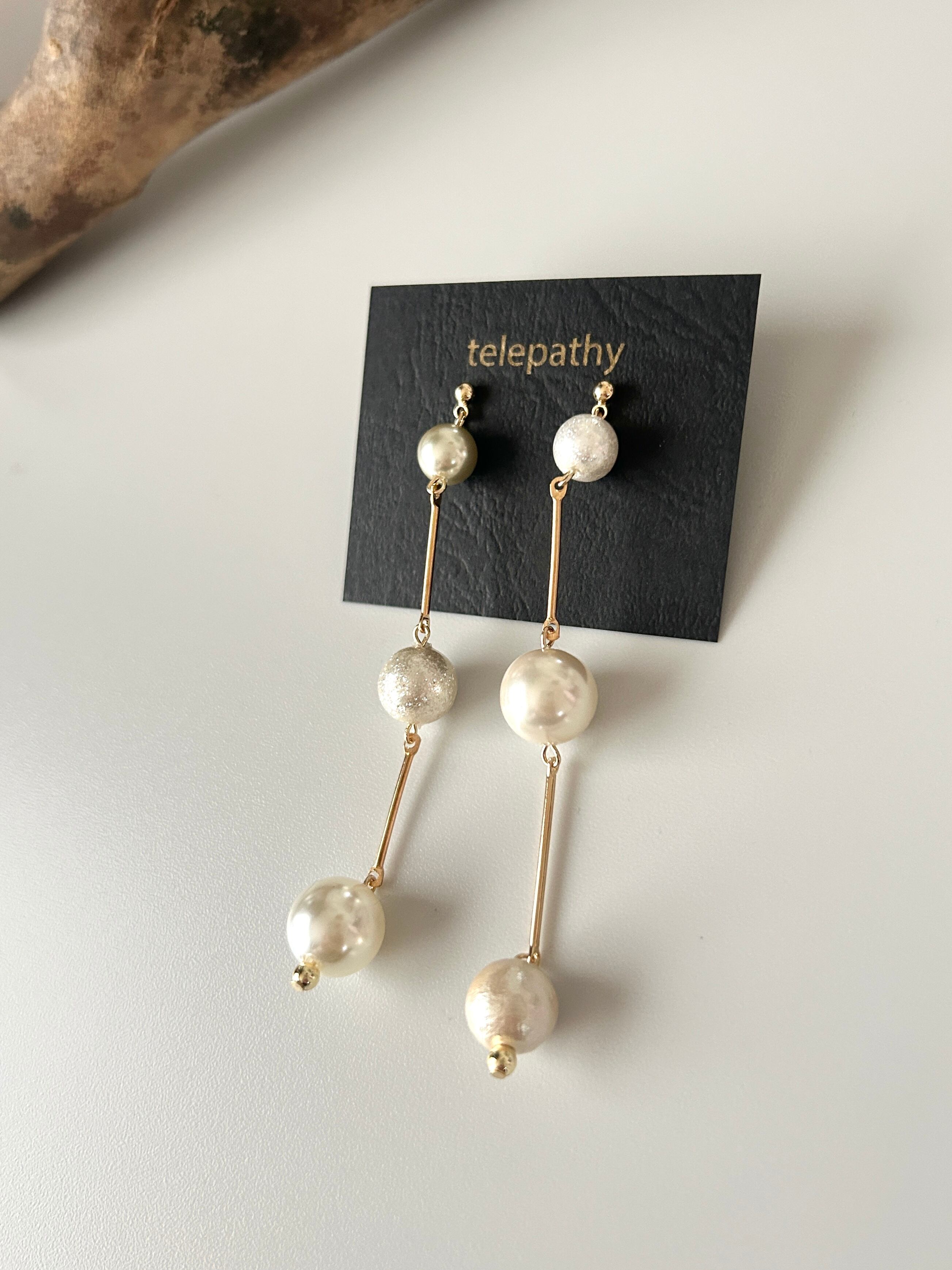 着けるとユラユラ可愛いアシンメトリーピアスです。