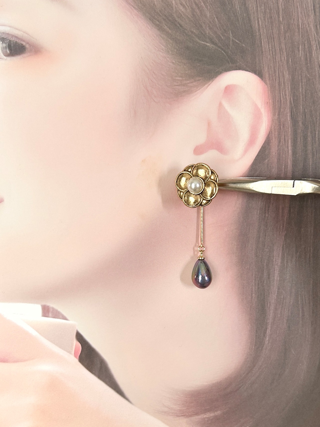 ヴィンテージライクフラワー×メタルパープル雫ピアス