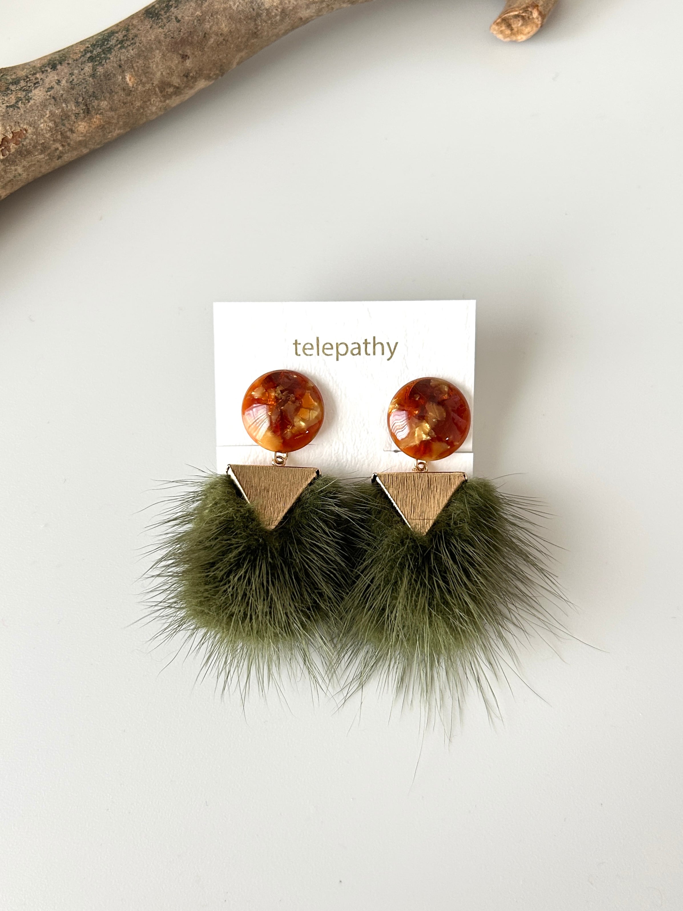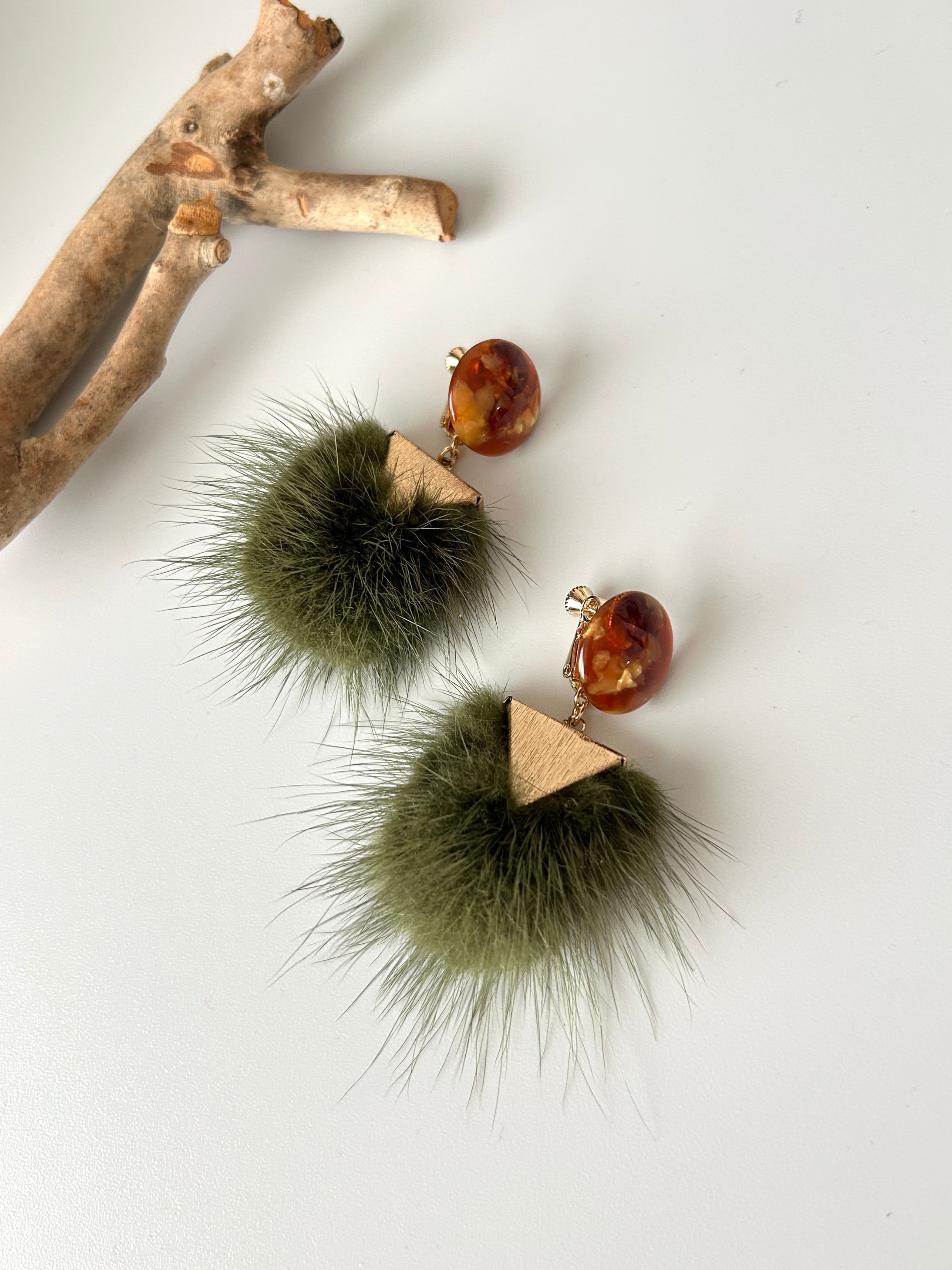 綺麗なブラウンマーブルのアセチカボション×カーキミンクファー。