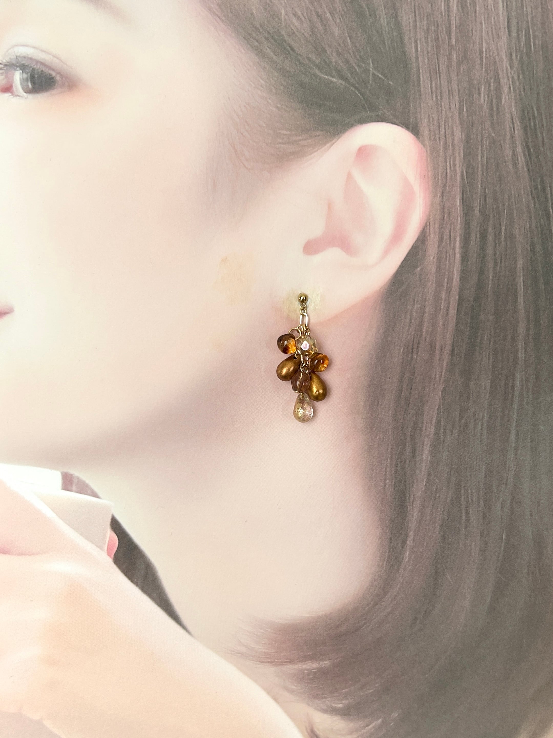 秋色チェコビーズピアス/イヤリング