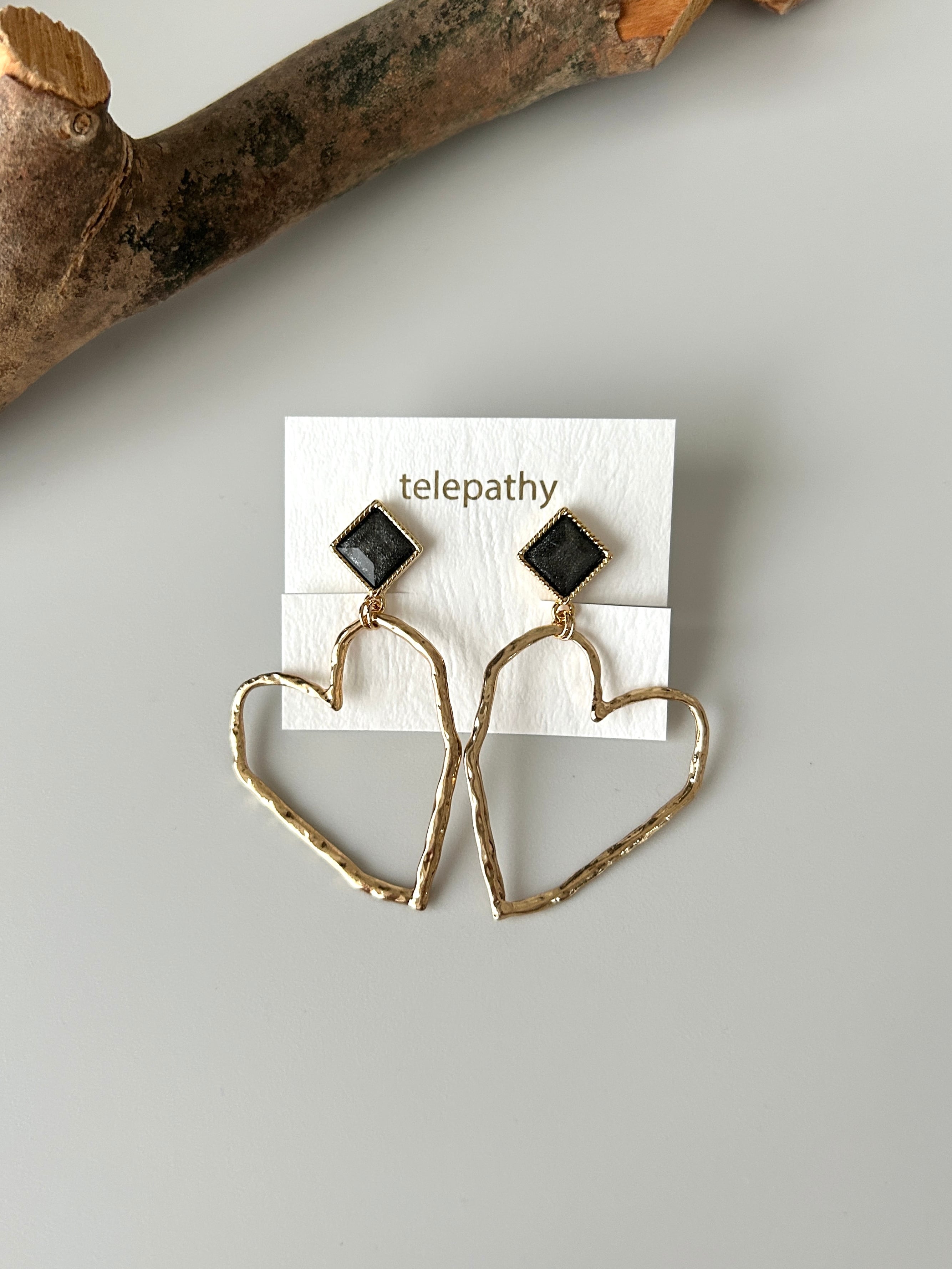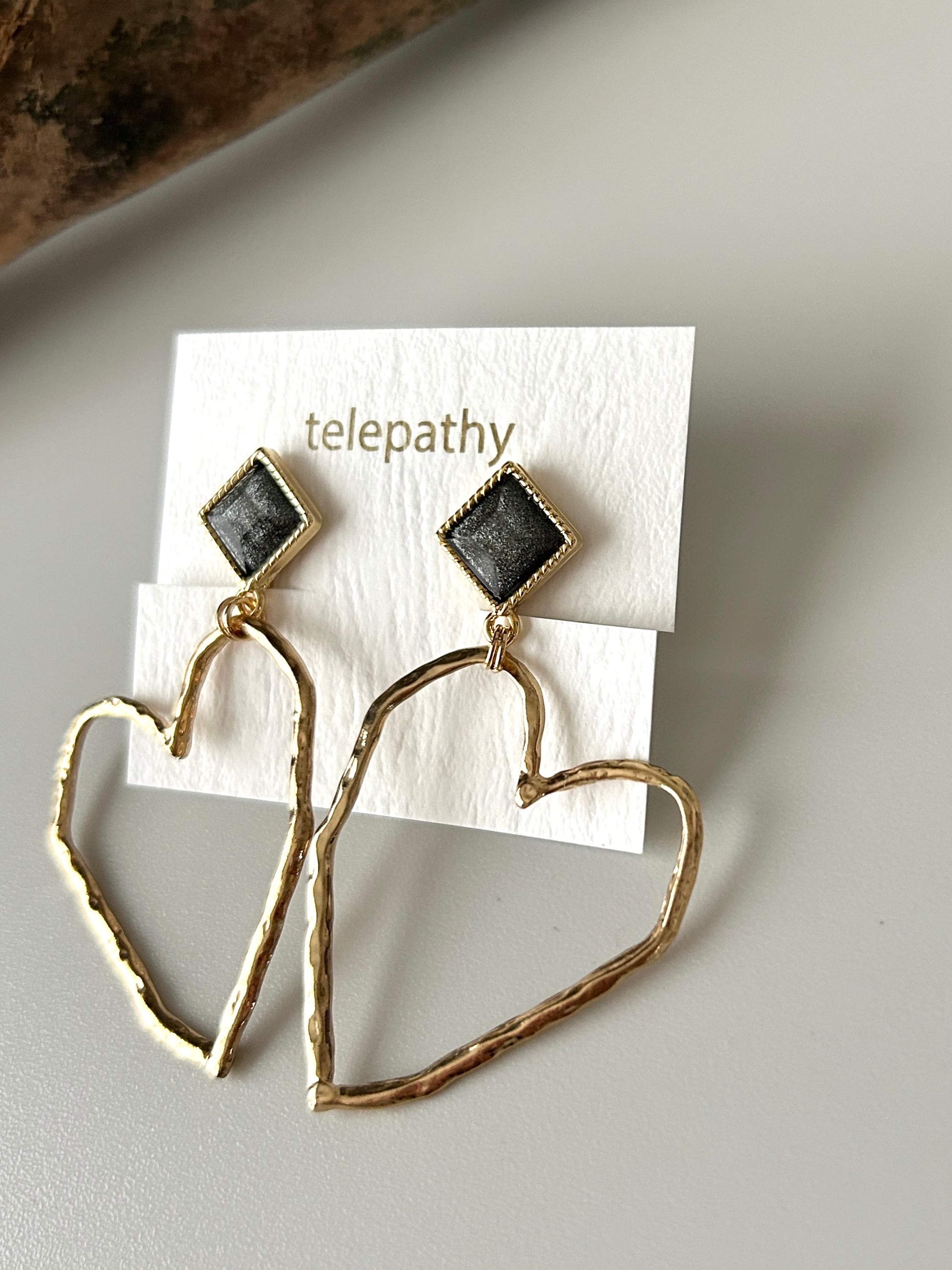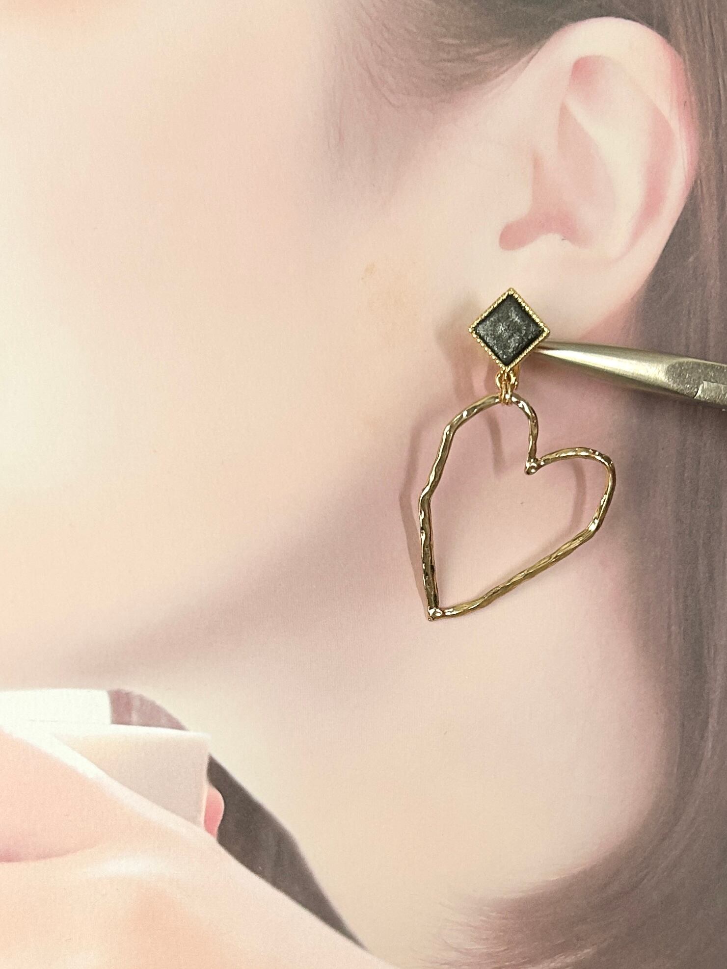 小ぶりなスクエアブラックカボション×大ぶりメタルハート。