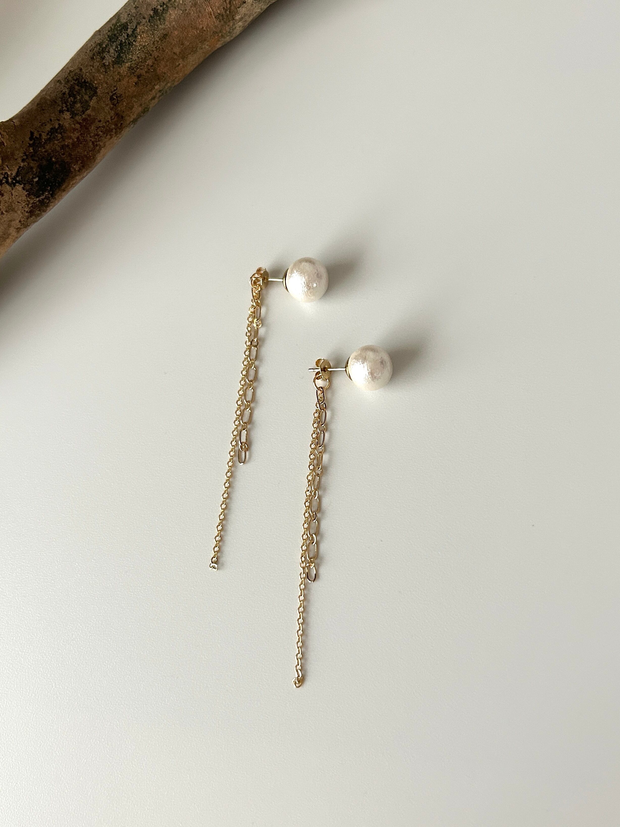 コロンとした10mmコットンパール×2種のチェーンバックキャッチ。