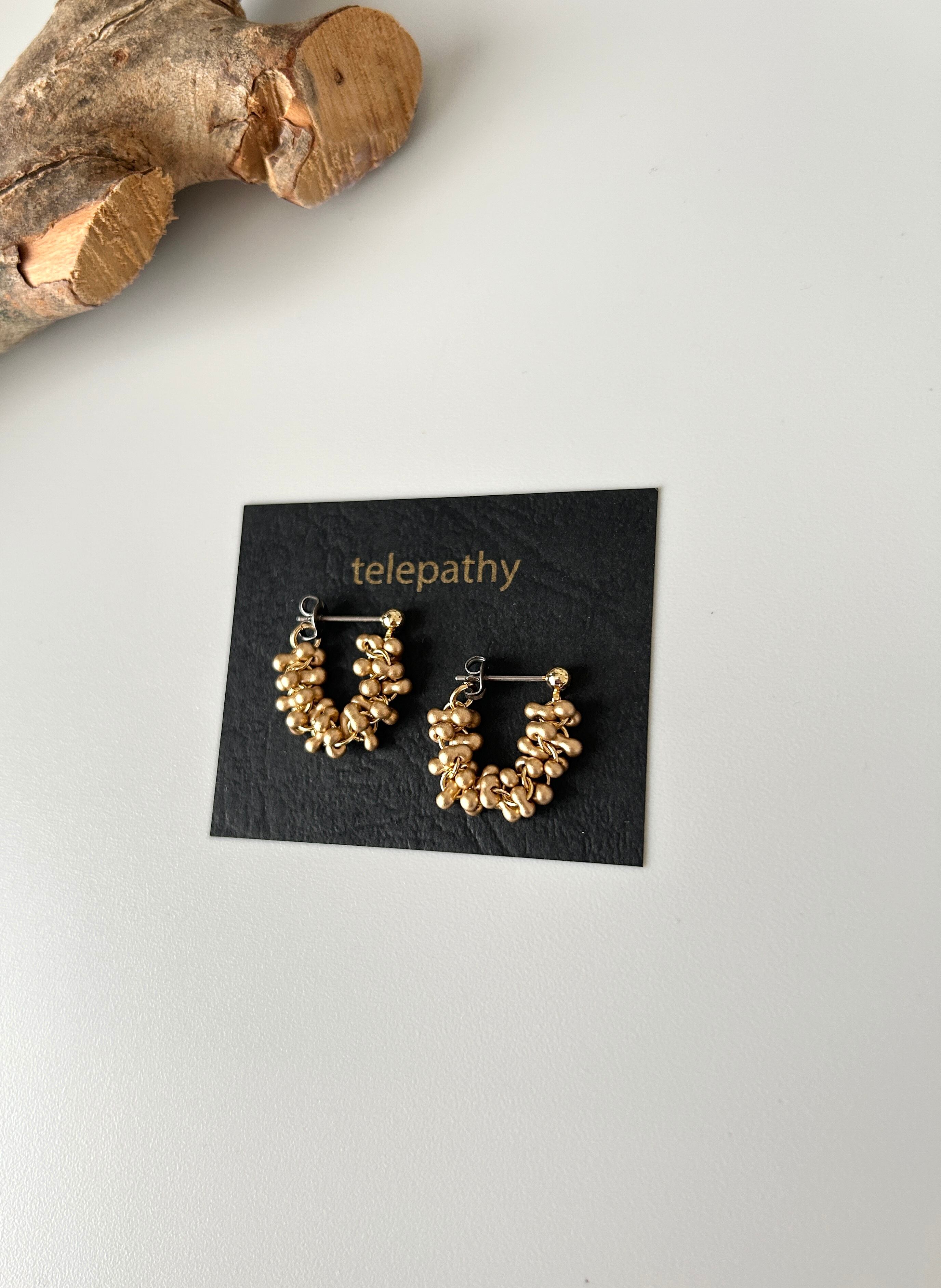 マットゴールドチェコビーズフープピアス チタンポスト