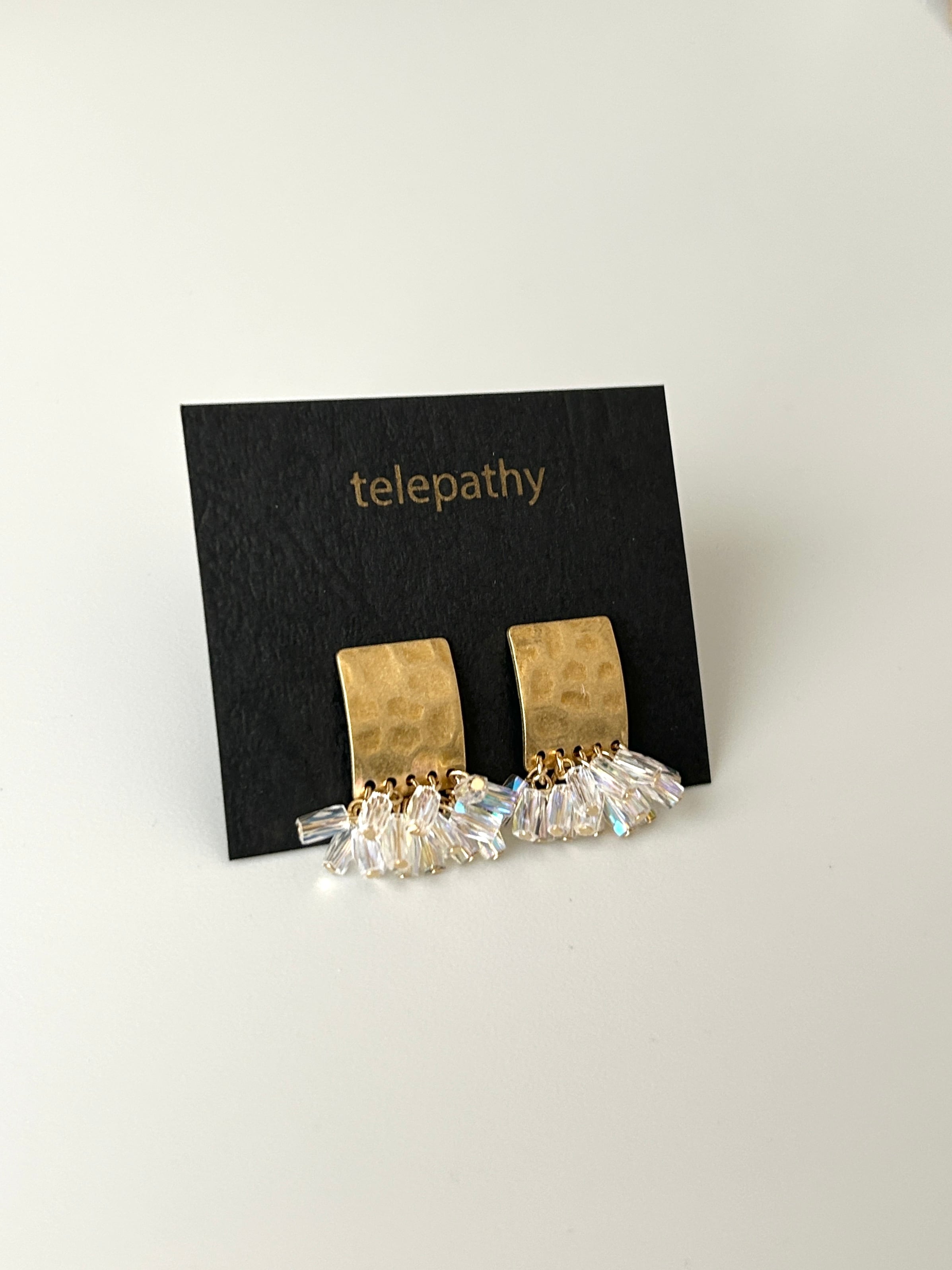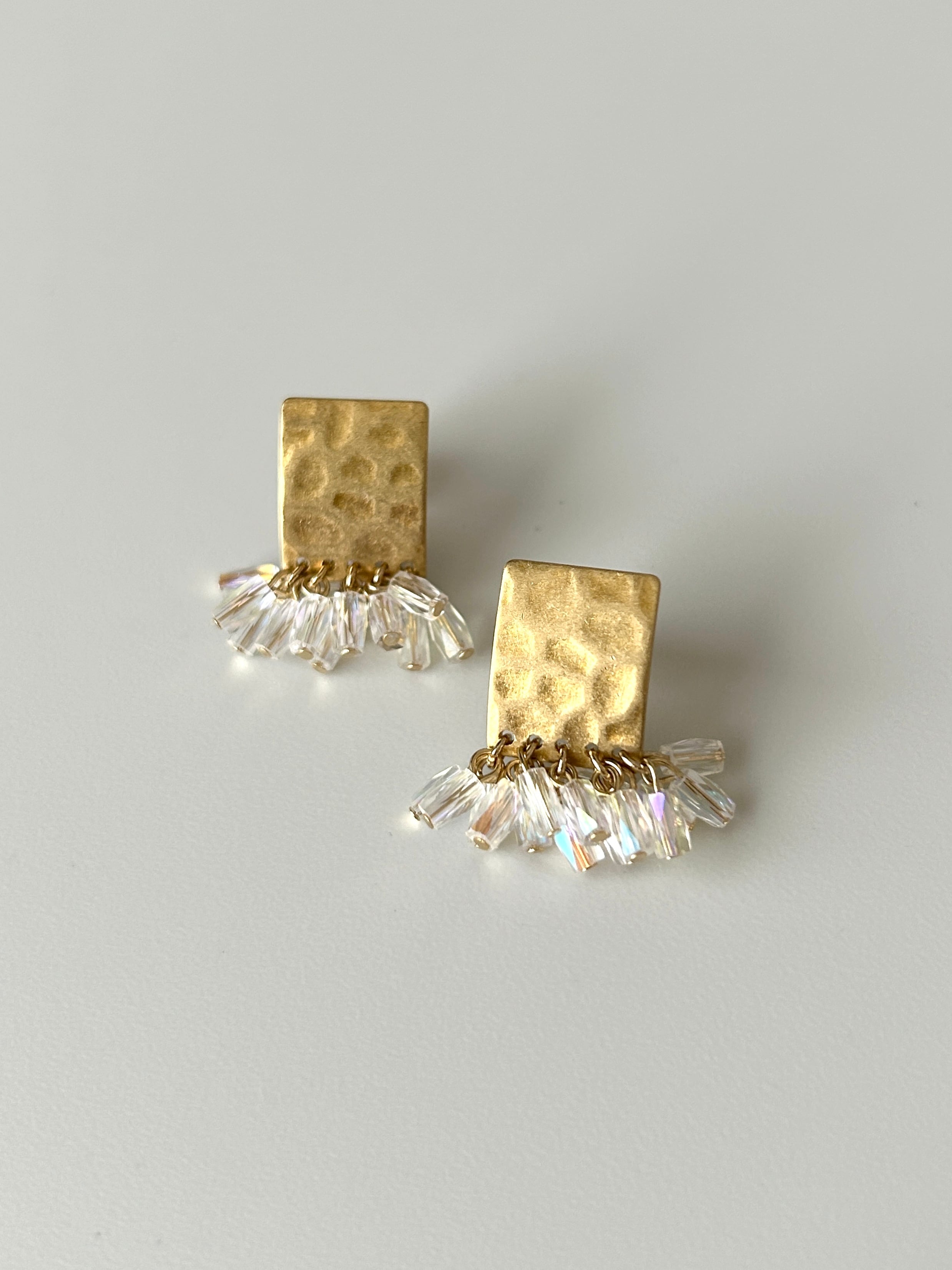 ほんのりカーブしたハンマー加工の真鍮プレートに、たっぷりキラキラクリアガラスビーズを合わせました。