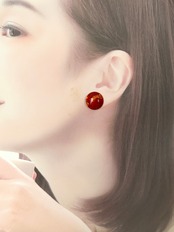 発色の良いアセチピアスと、秋色ビーズ・チェーンの2連ブレスレット。