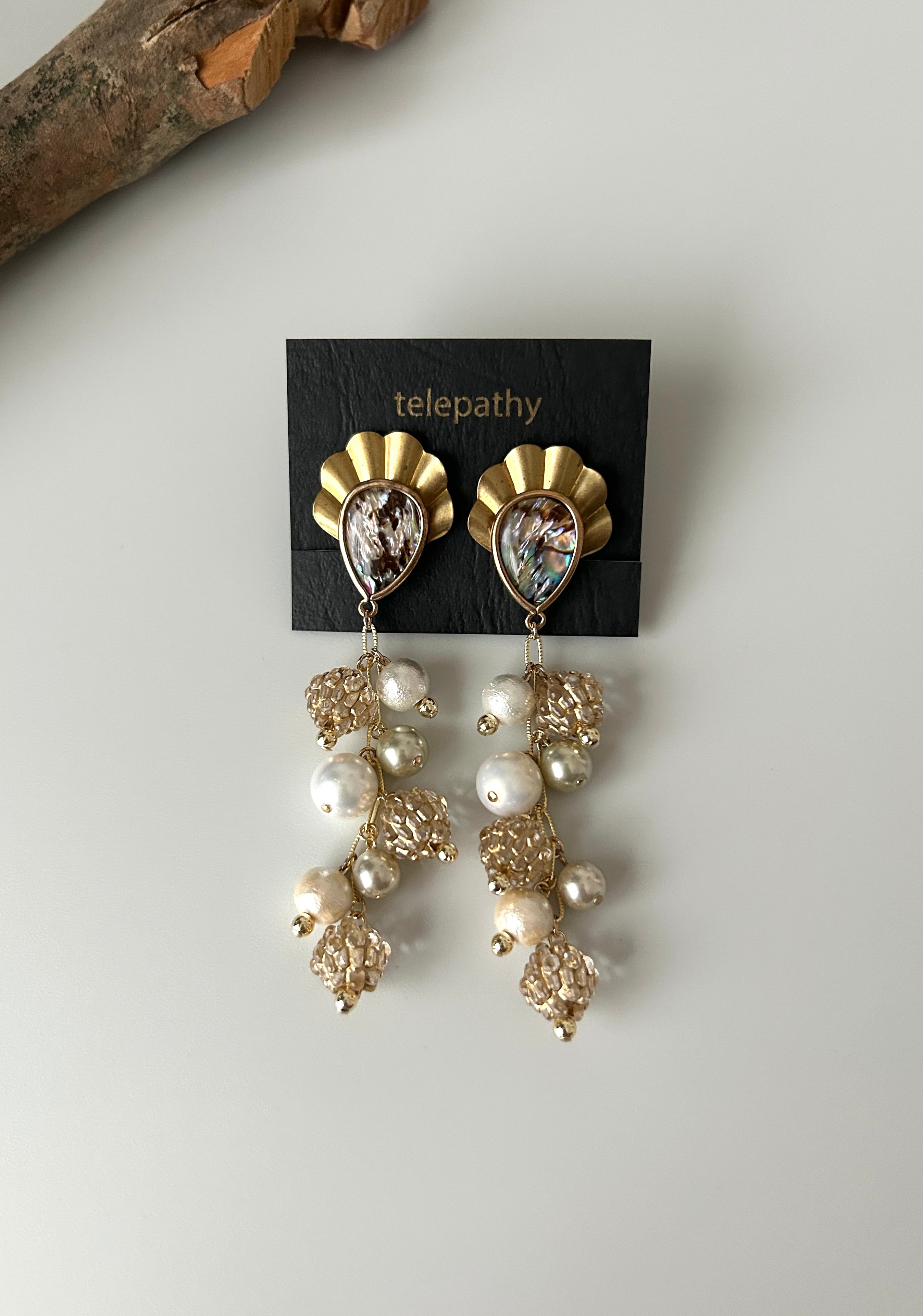 ジャラジャラパール&ビーズを合わせた、個性派大ぶりイヤリングです。