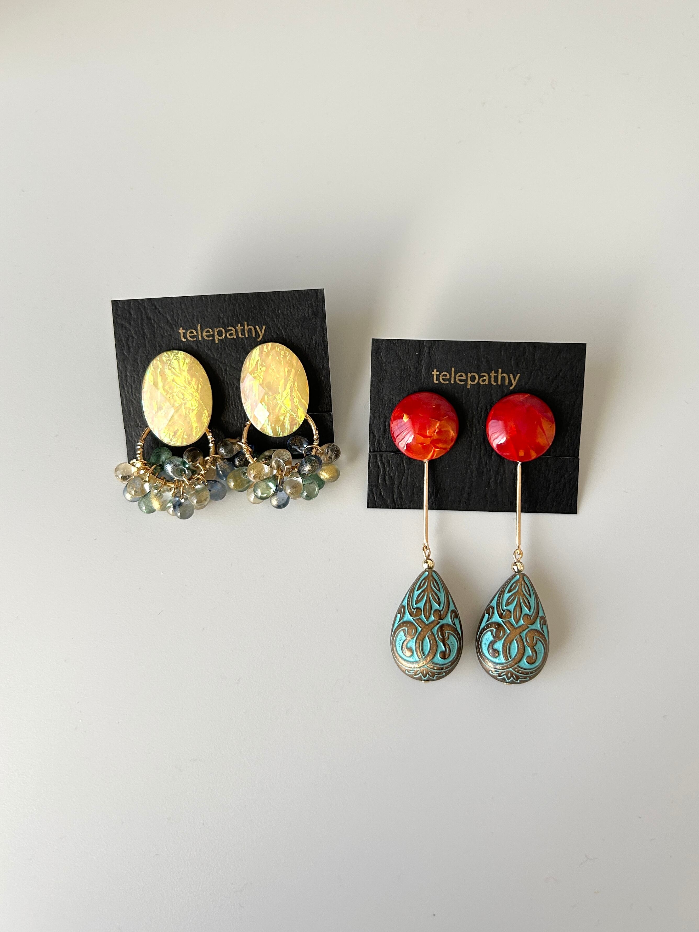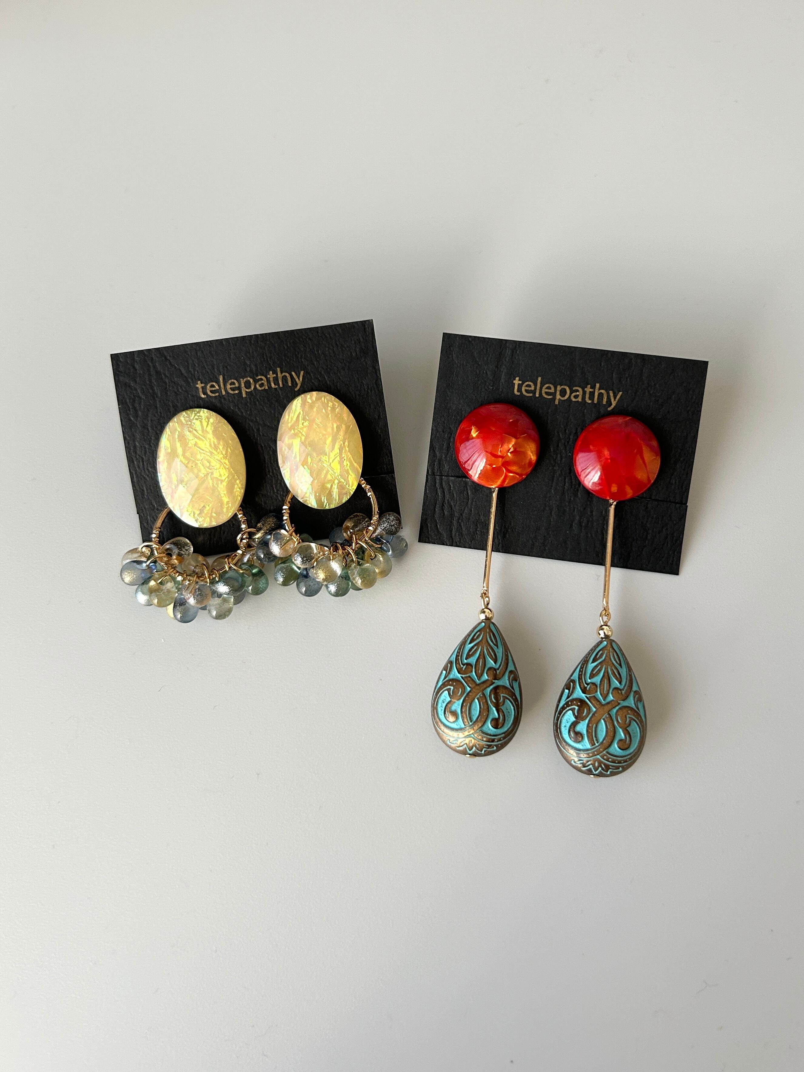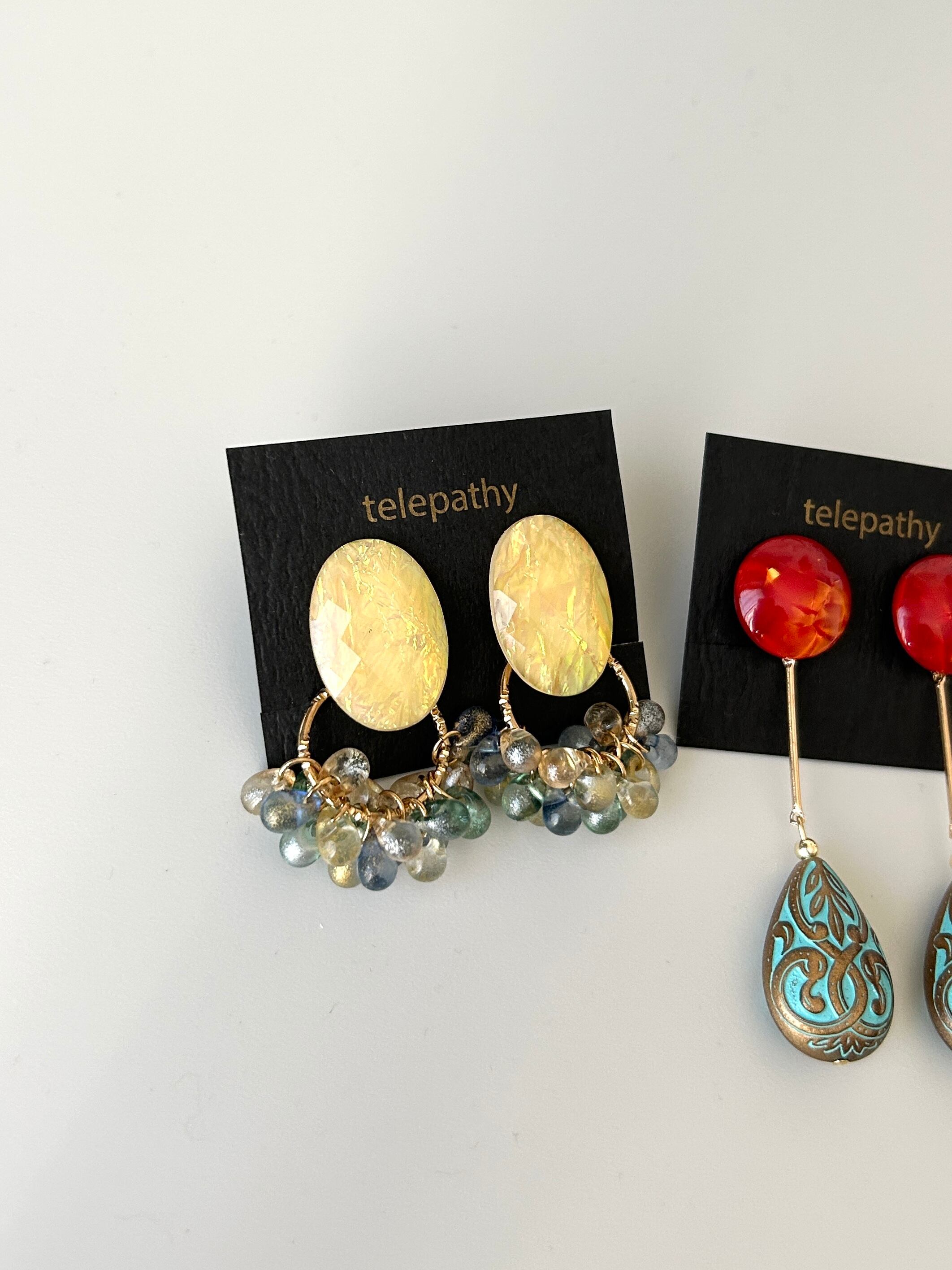 ・オーロラカボション×たっぷり雫2wayイヤリング
