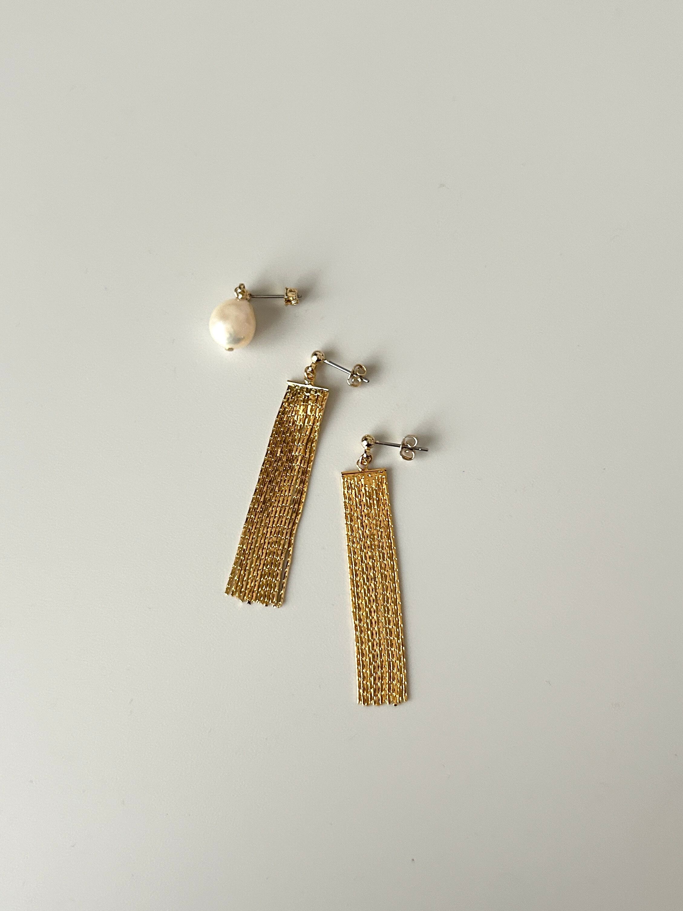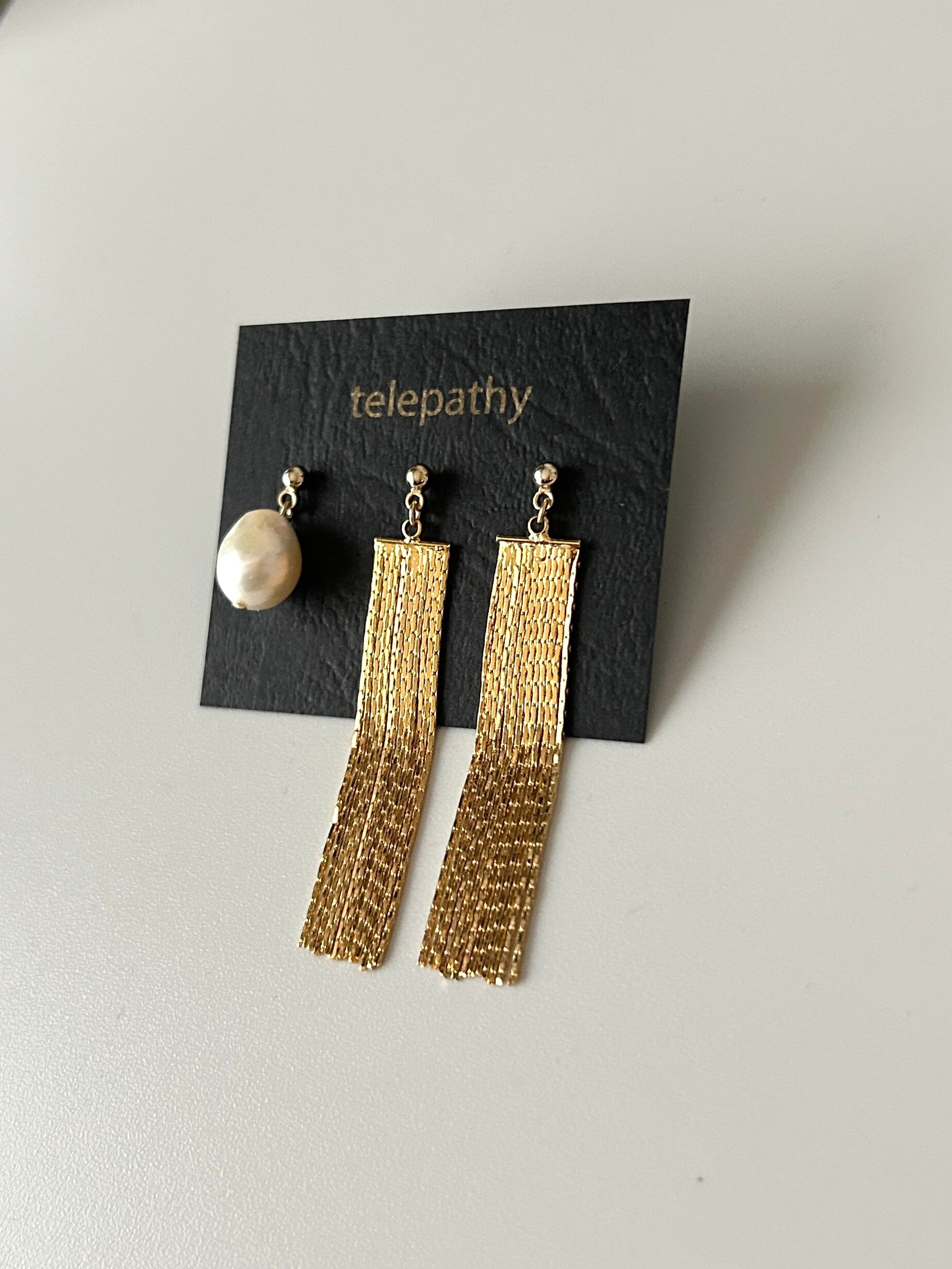淡水パール&極細チェーンフリンジ ピアス/イヤリングセット