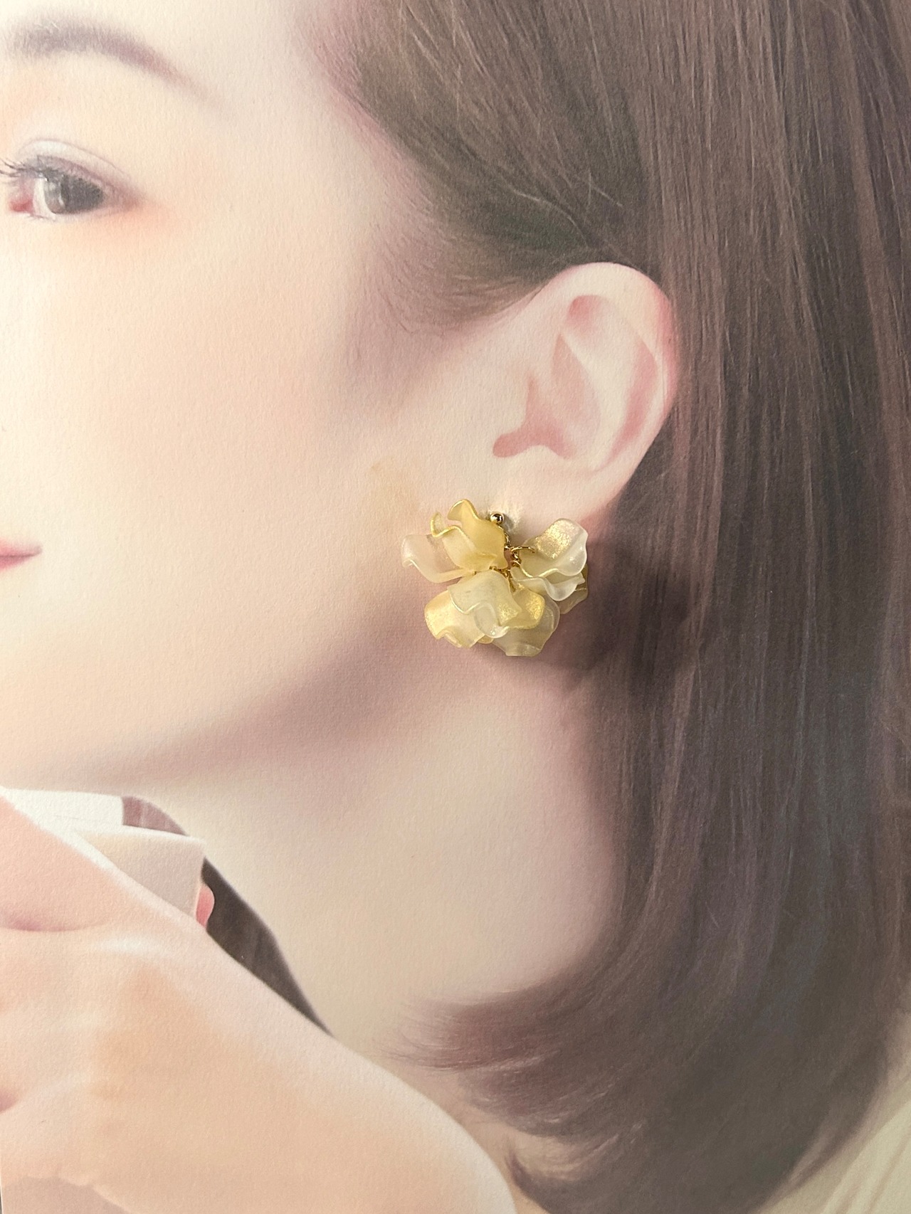 ゴールドも入ったグラデーション花びらをたっぷり使用し、ふんわり仕上げました。