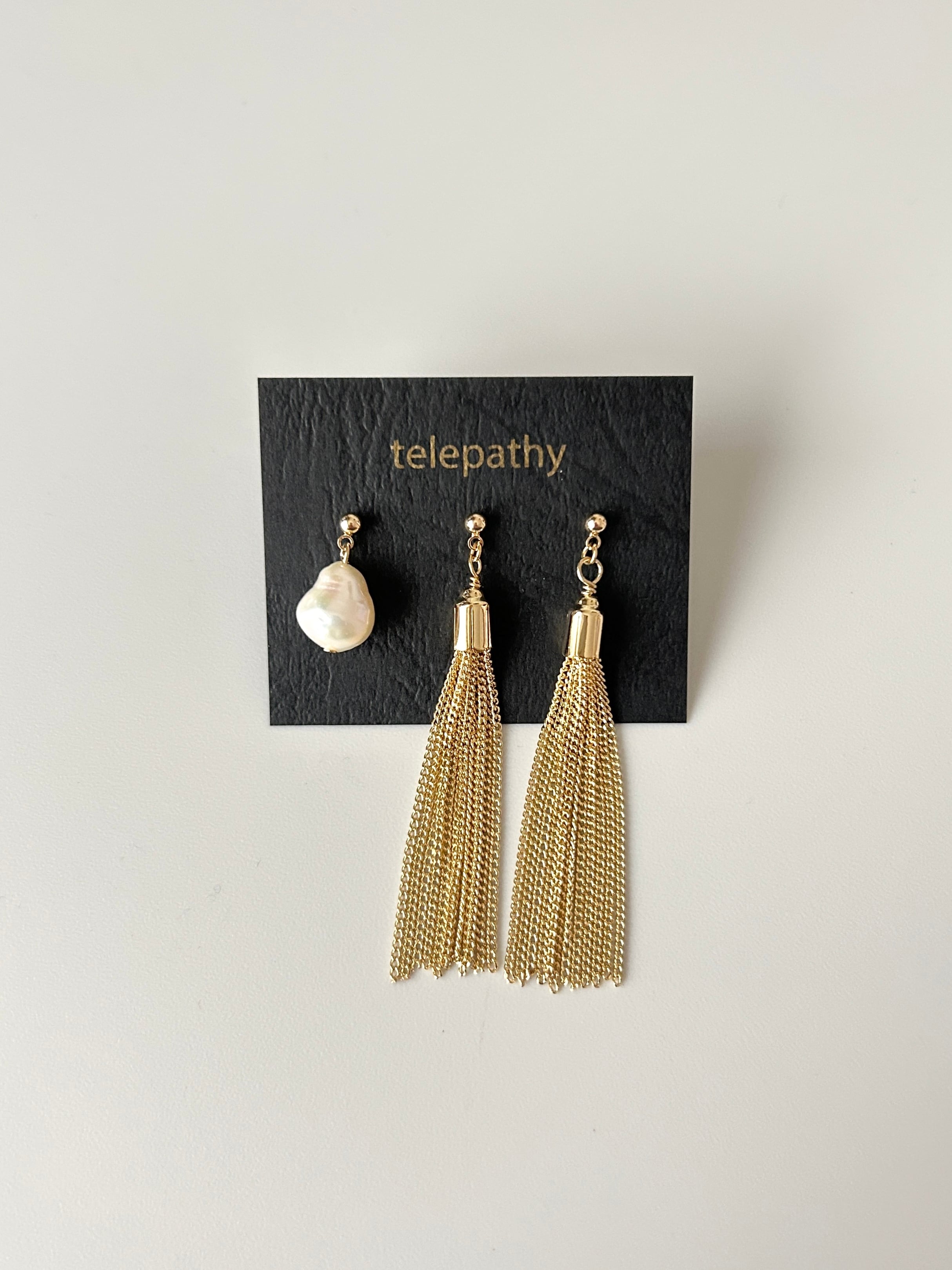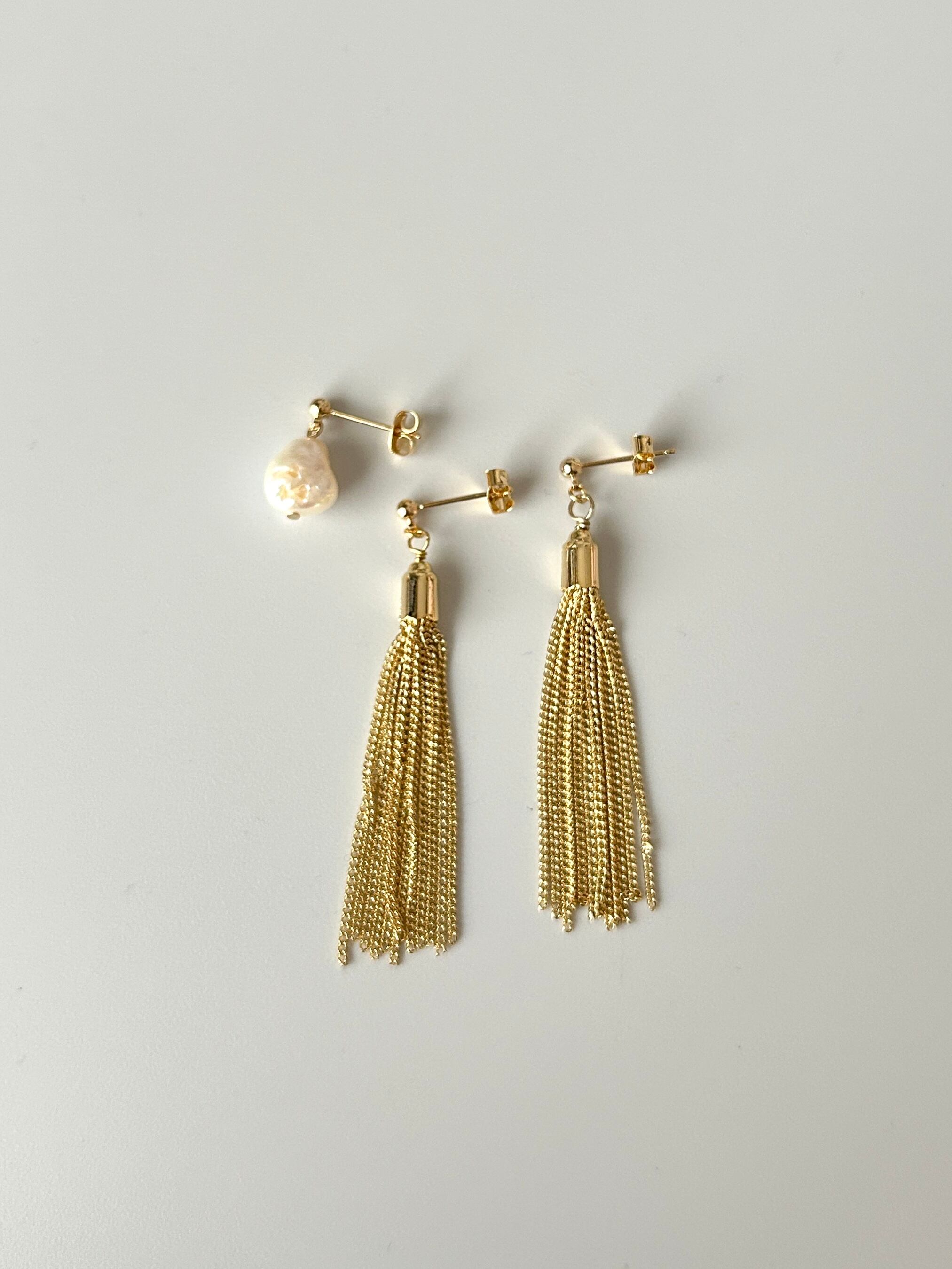大粒淡水パール&高品質メタルタッセルピアスのセットです。