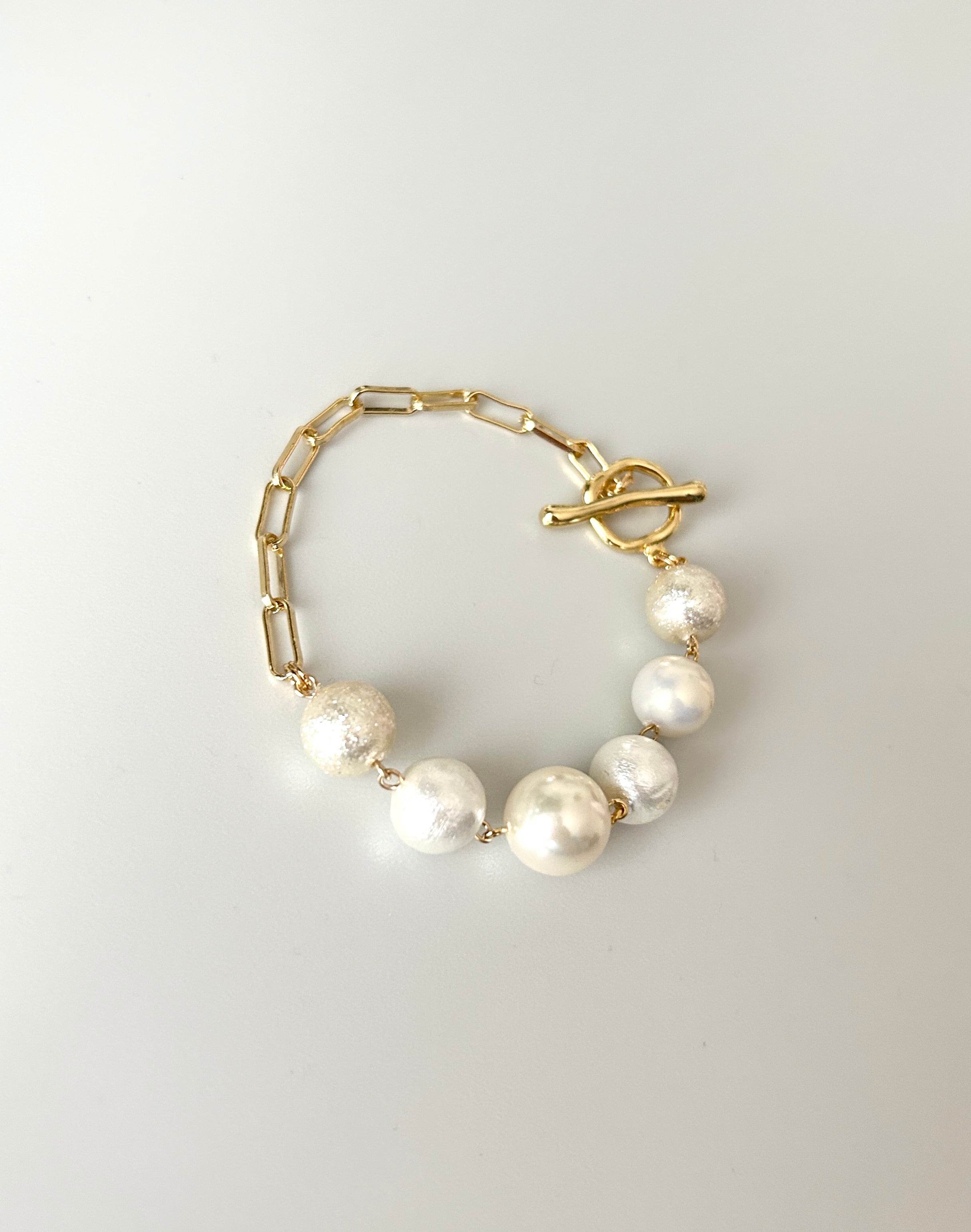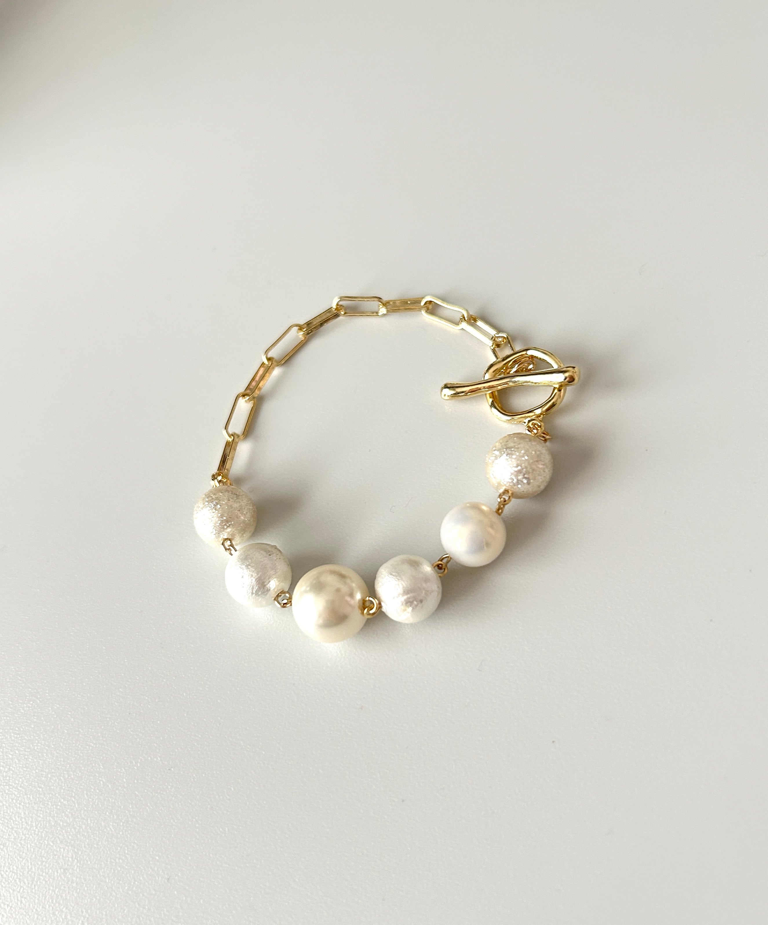 お呼ばれにも、デイリー使いにもぴったりなパールブレスレットです。