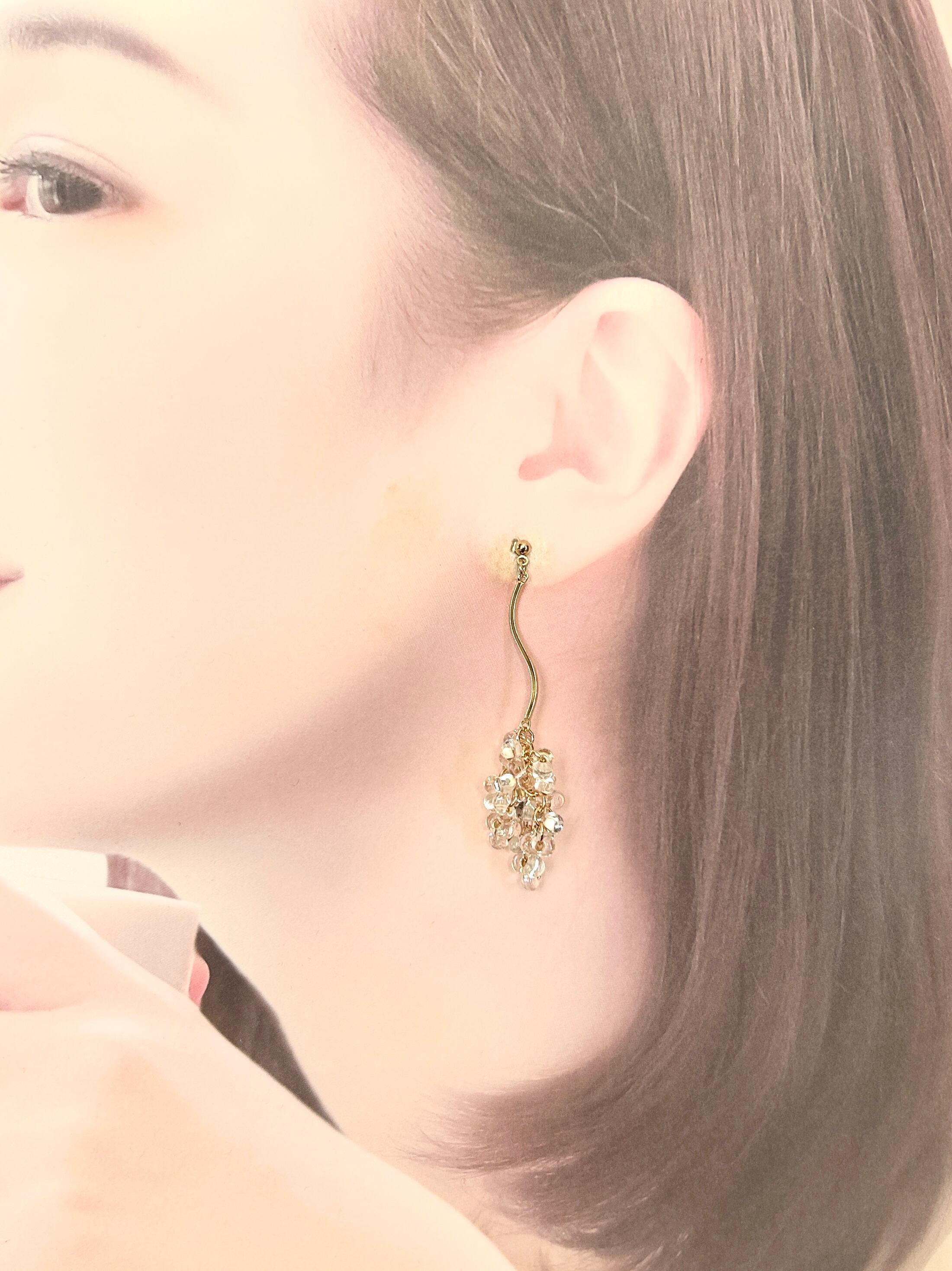 キラキラクリアチェコビーズが素敵な、洗練された大人の揺れるピアスです。