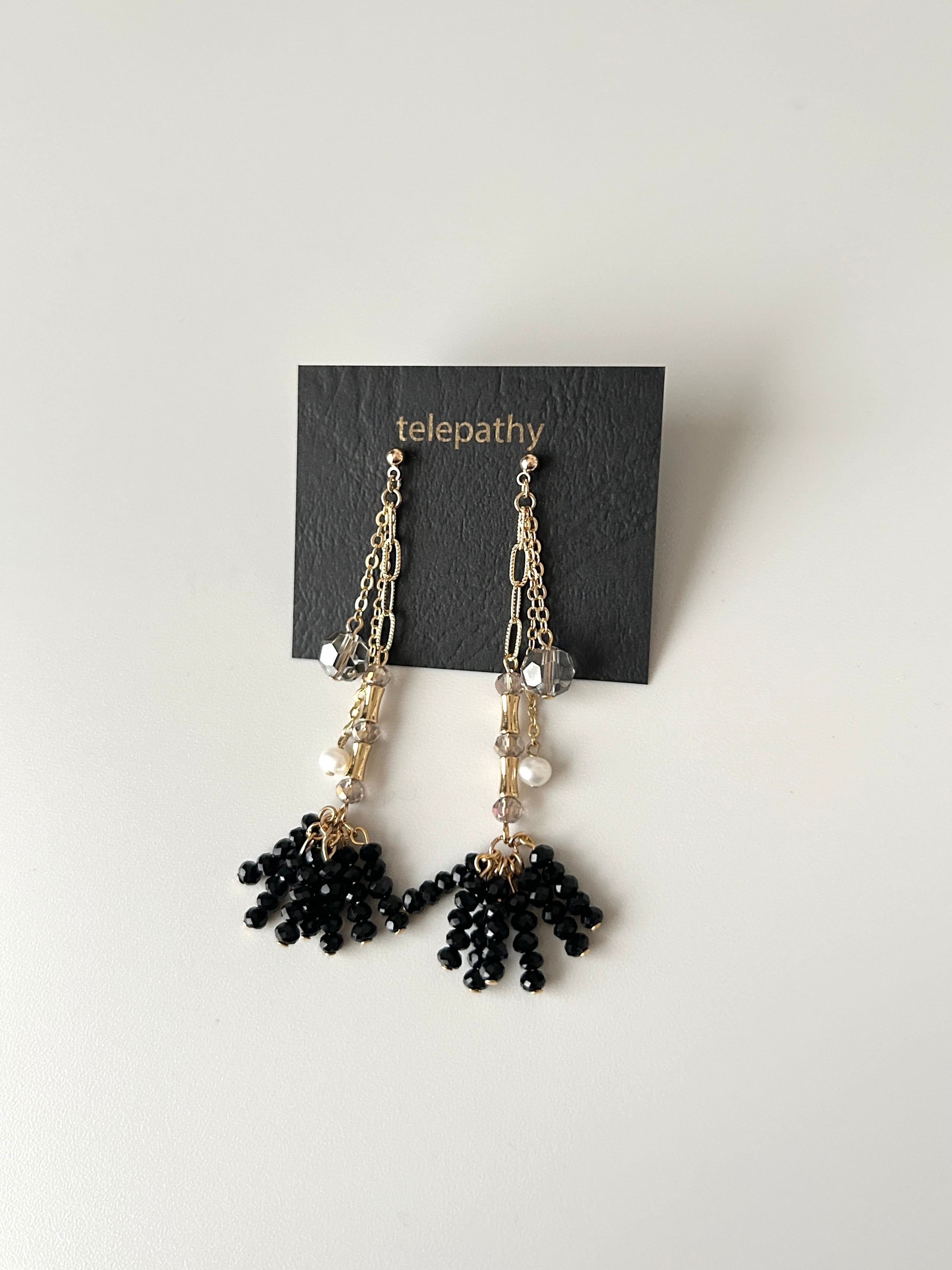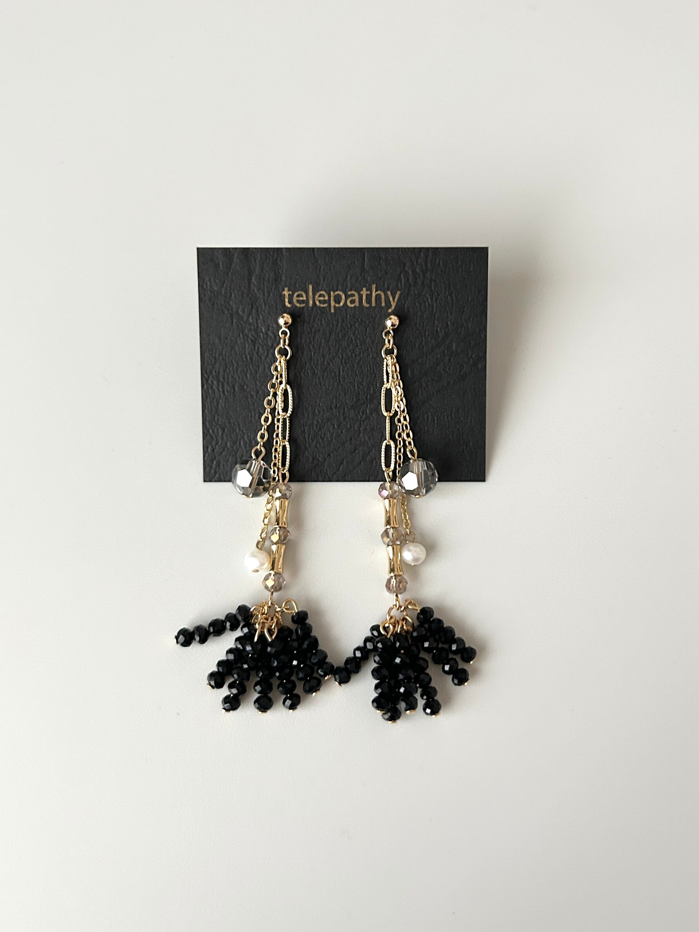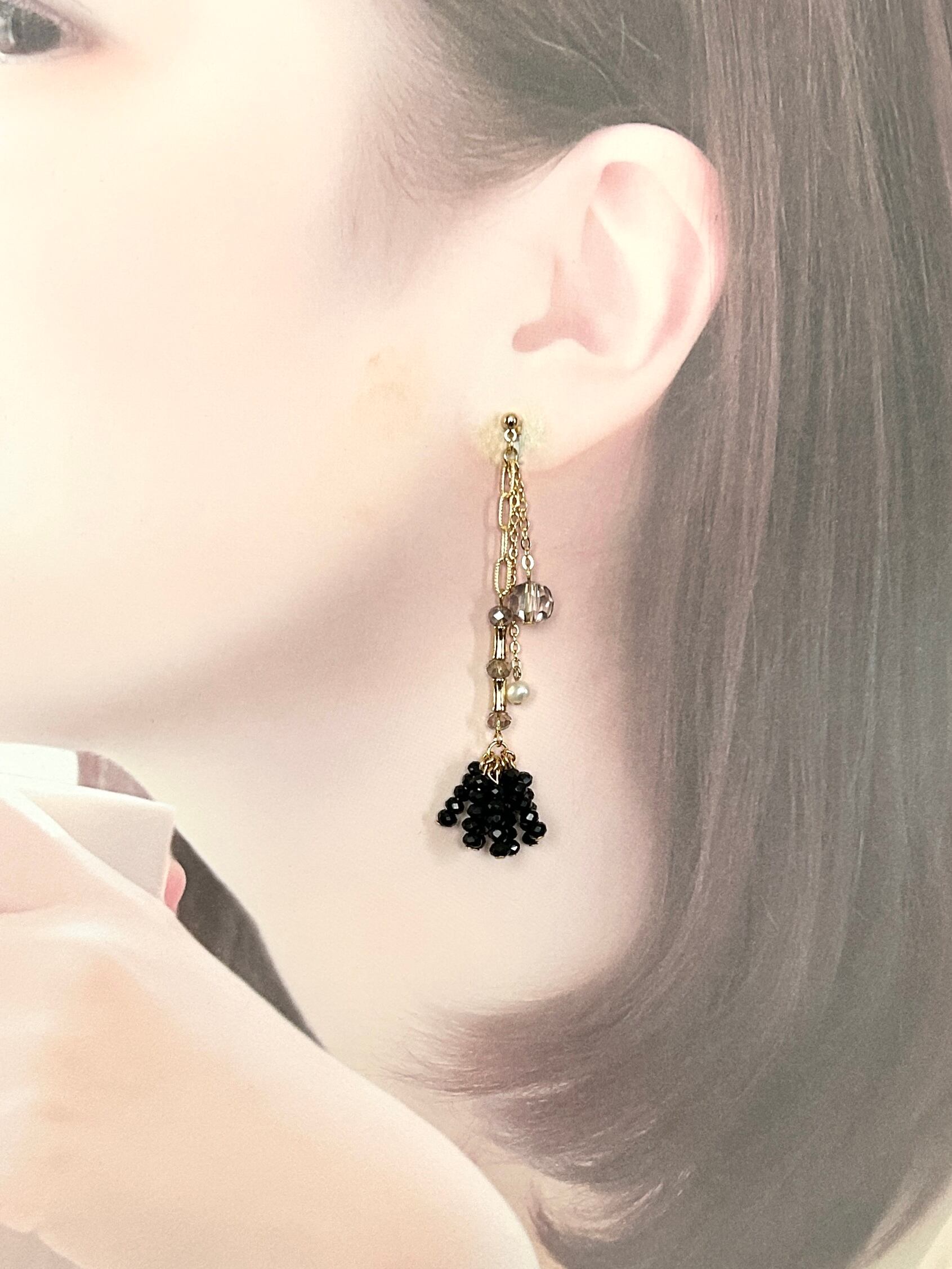 大人ブラック レイヤードピアス/イヤリング