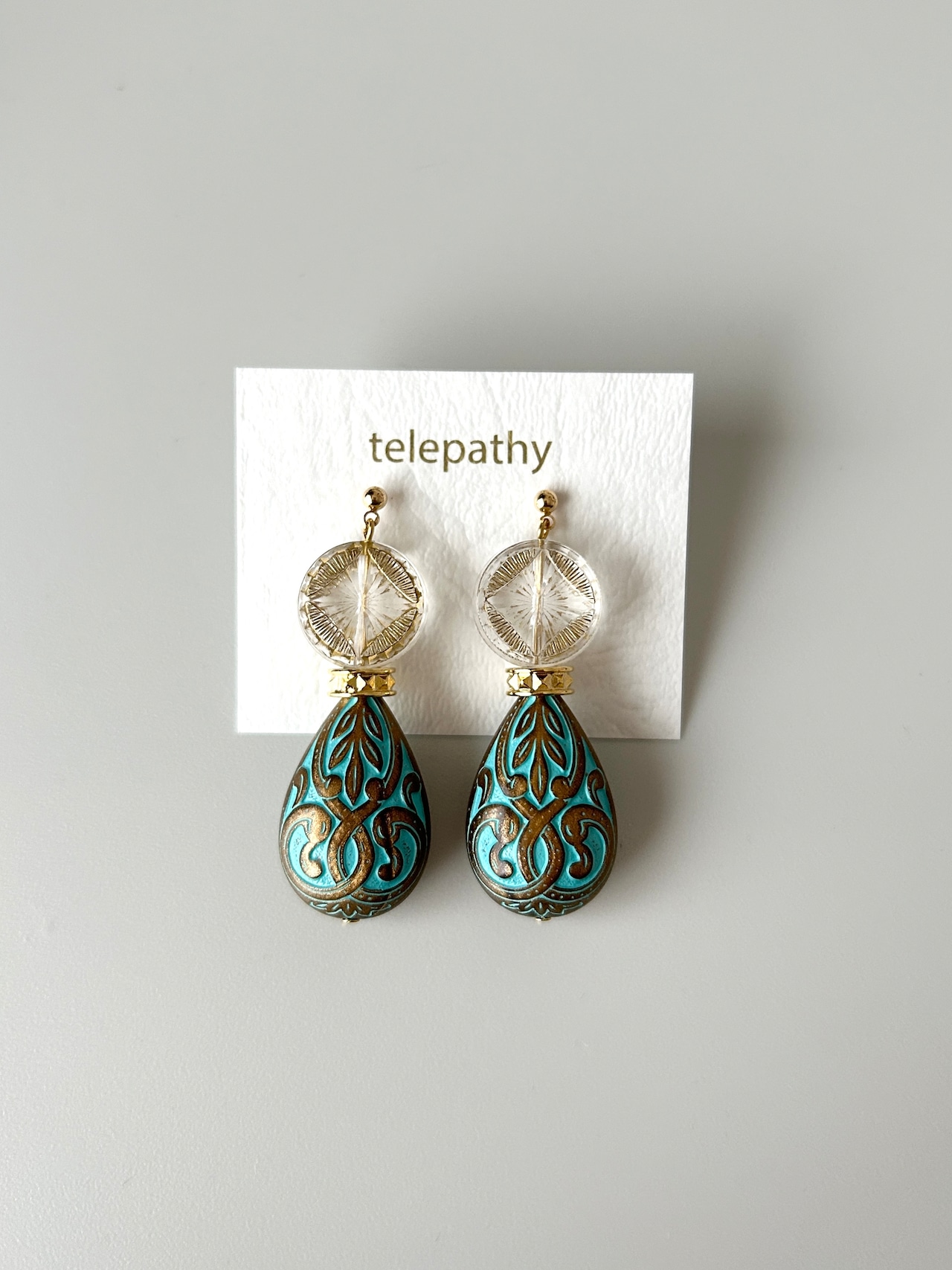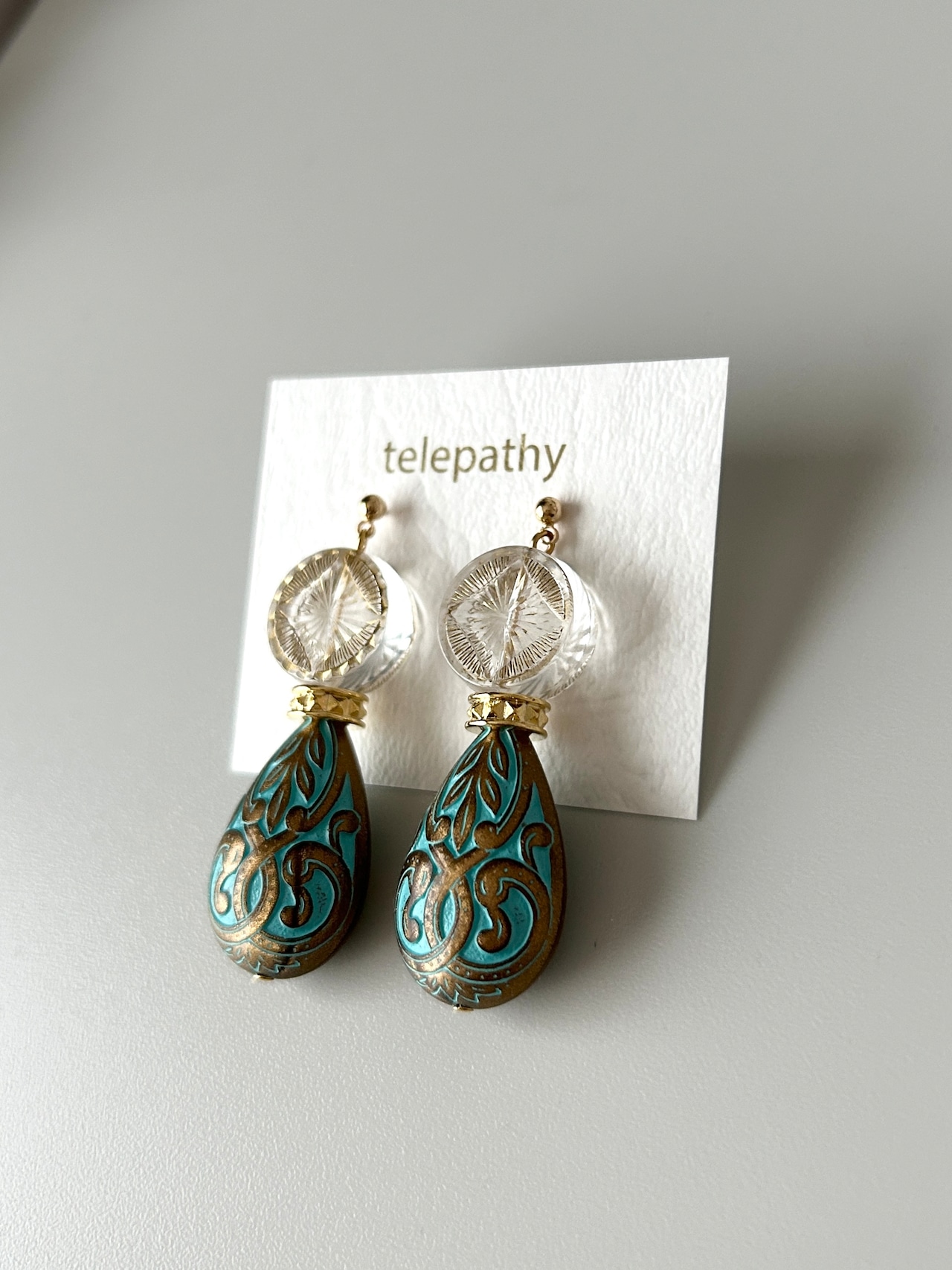 2種のアンティーク調ドイツ製アクリルを使用した、程よい存在感が素敵な大人ピアスです。