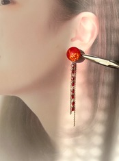 アセチカボション×ガラスビーズ&チェーンタッセルイヤリング