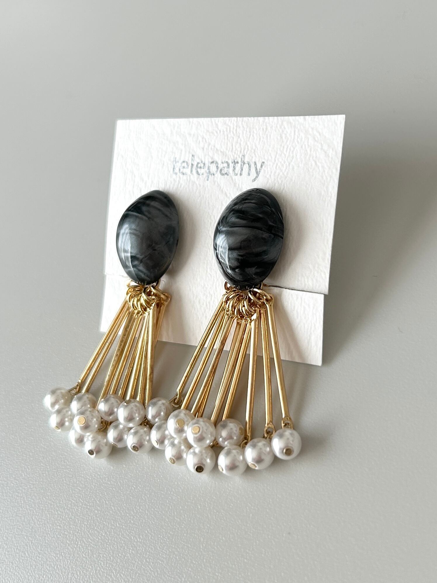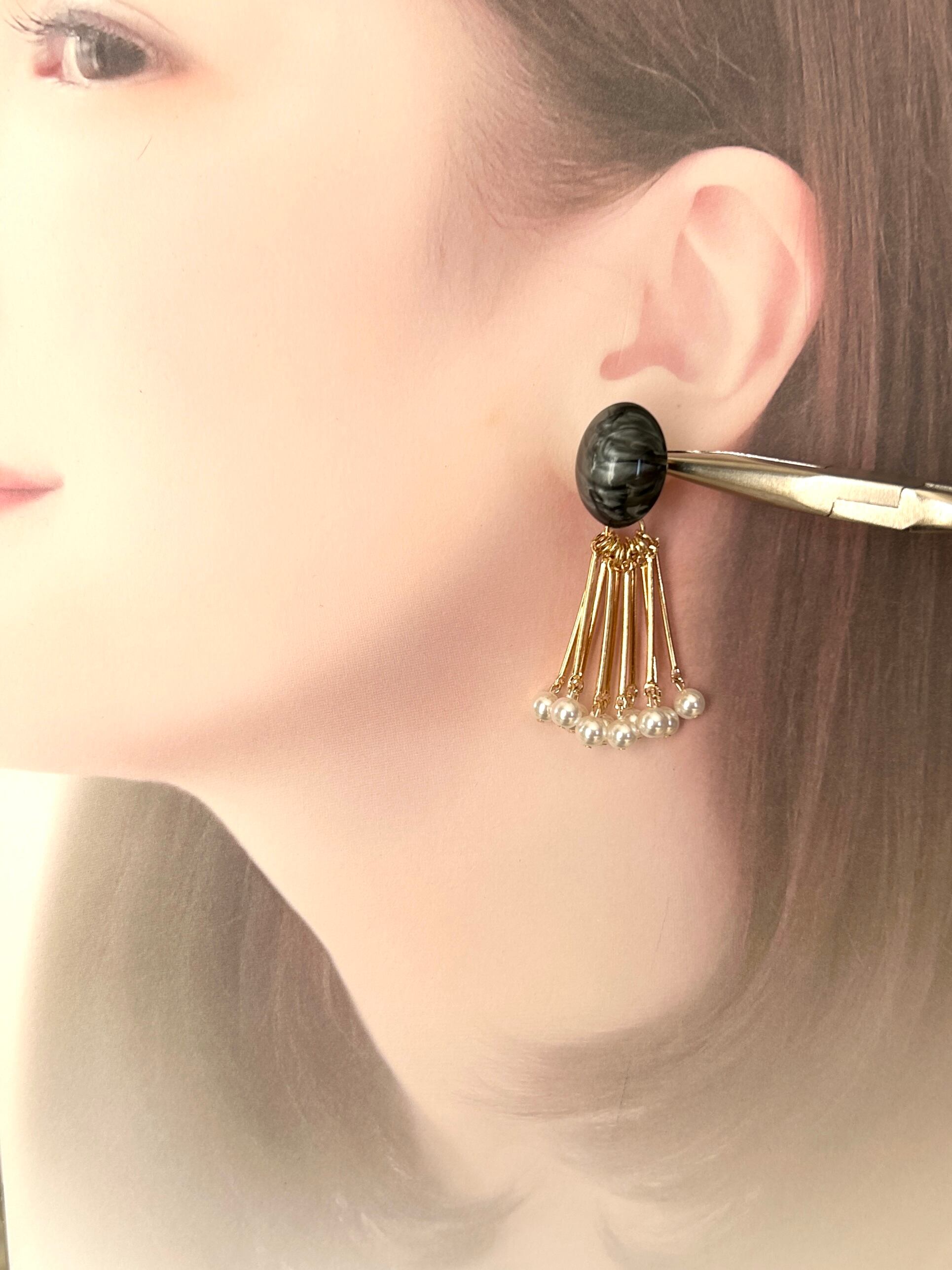 グレーブラックマーブルのヴィンテージカボションに、ジャラジャラパールを合わせました。