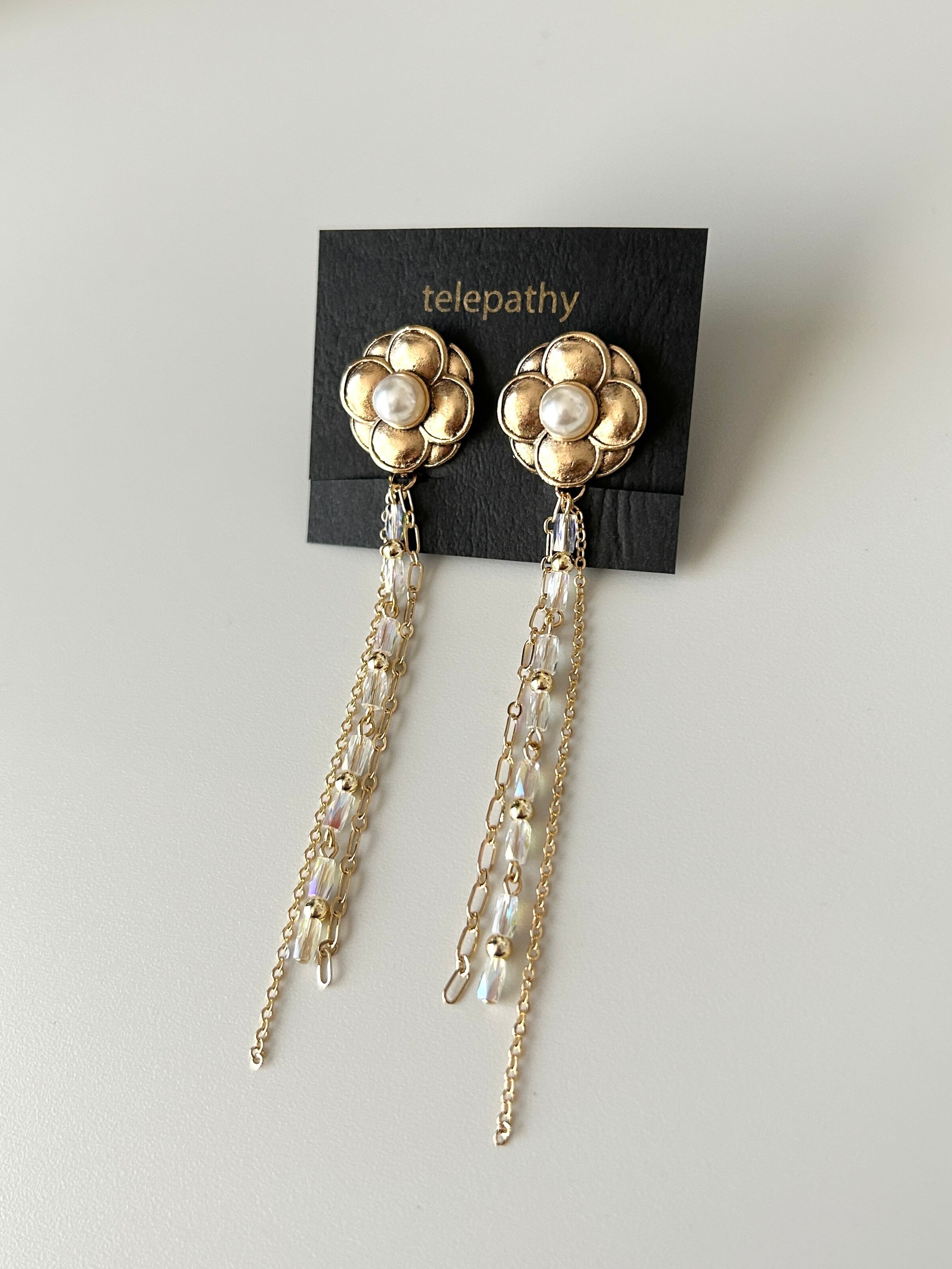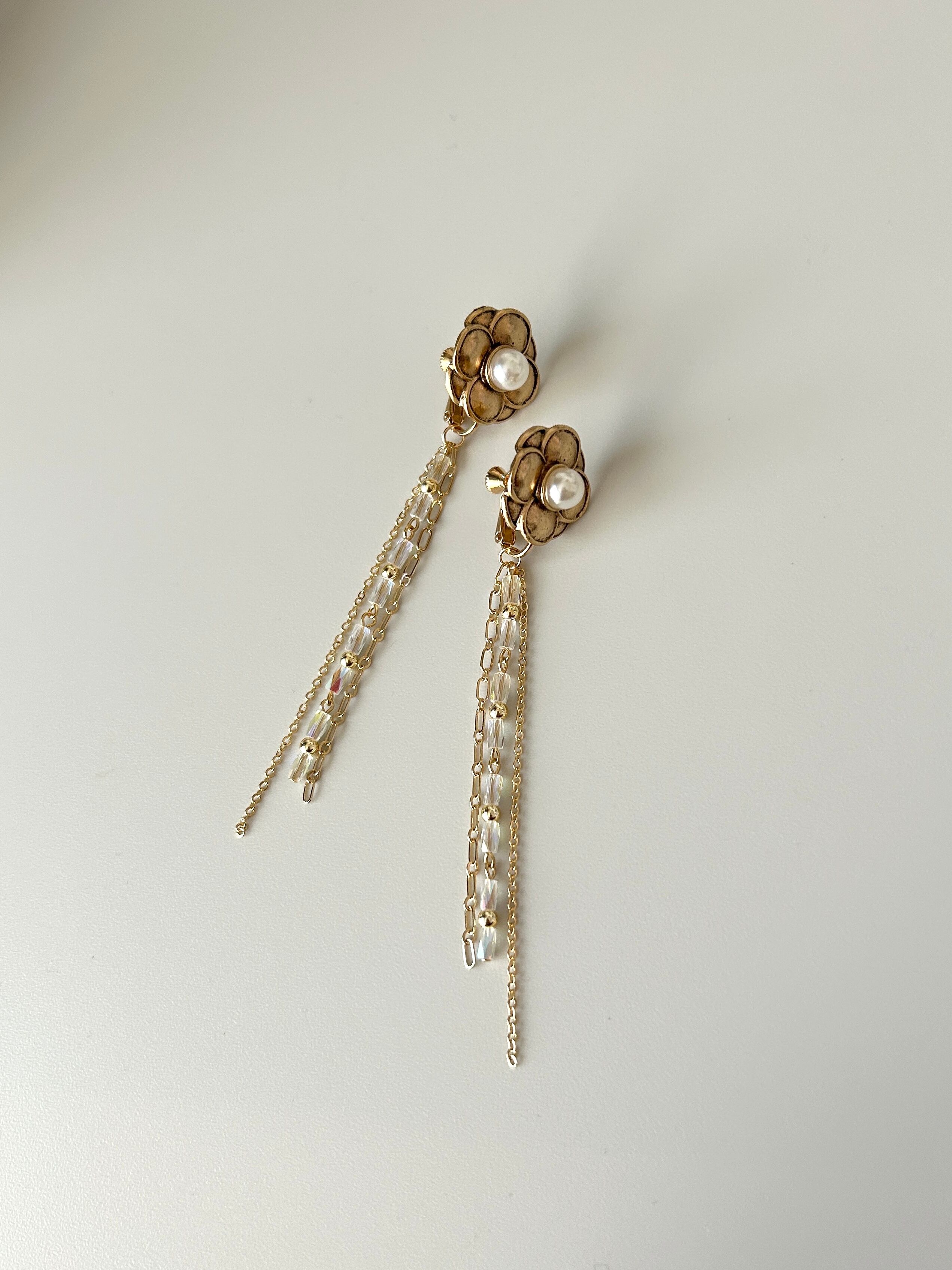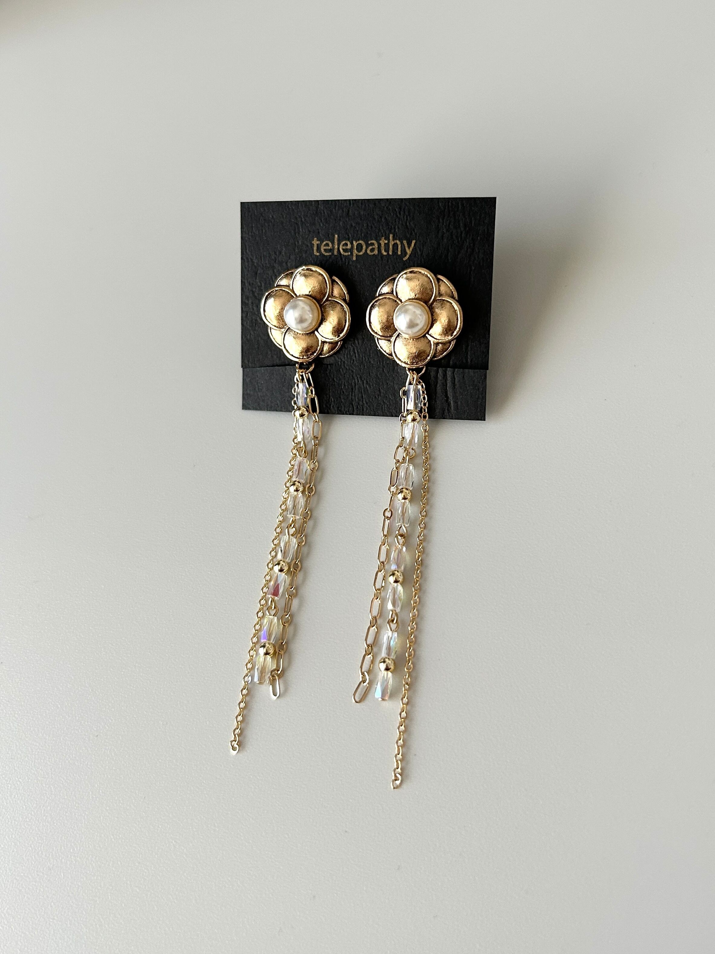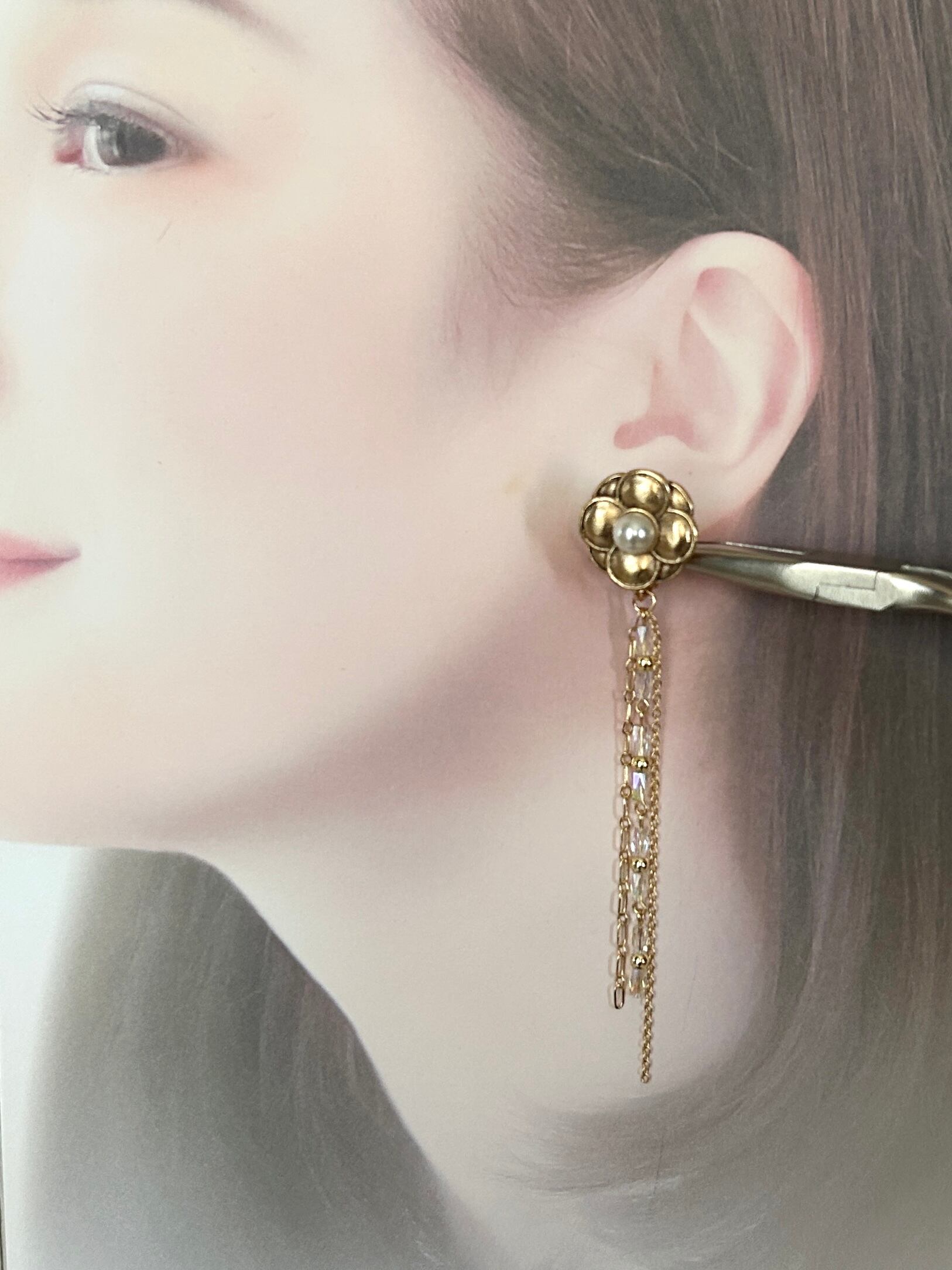 クラシカルフラワー×ガラスビーズ&チェーンタッセルイヤリング
