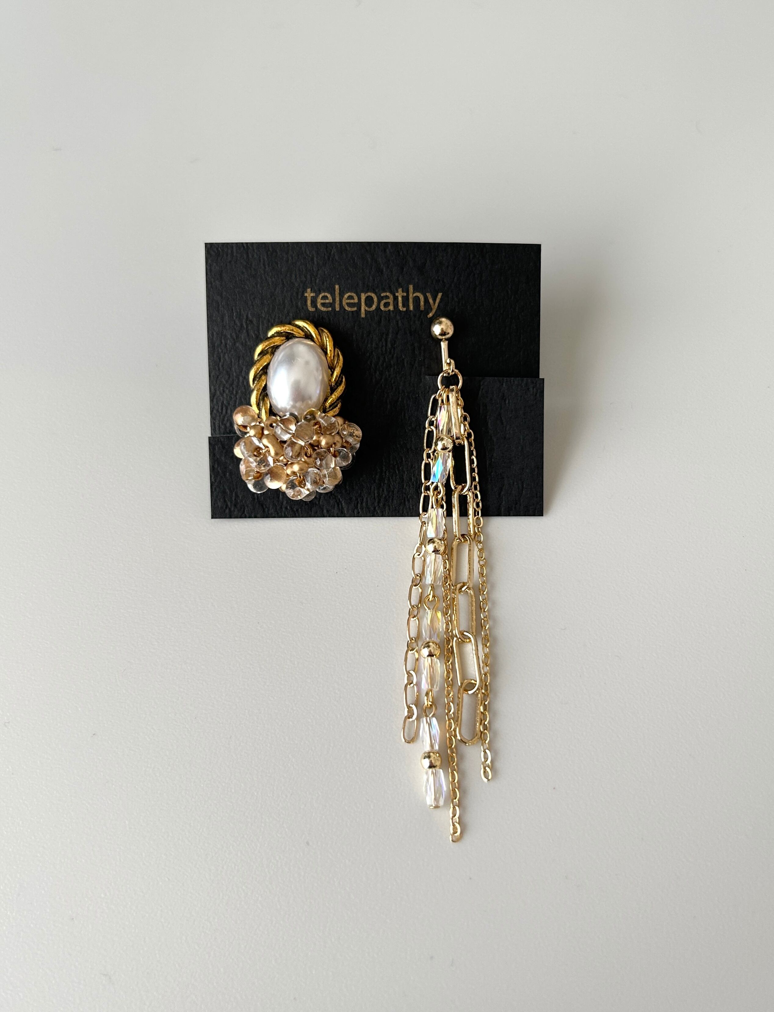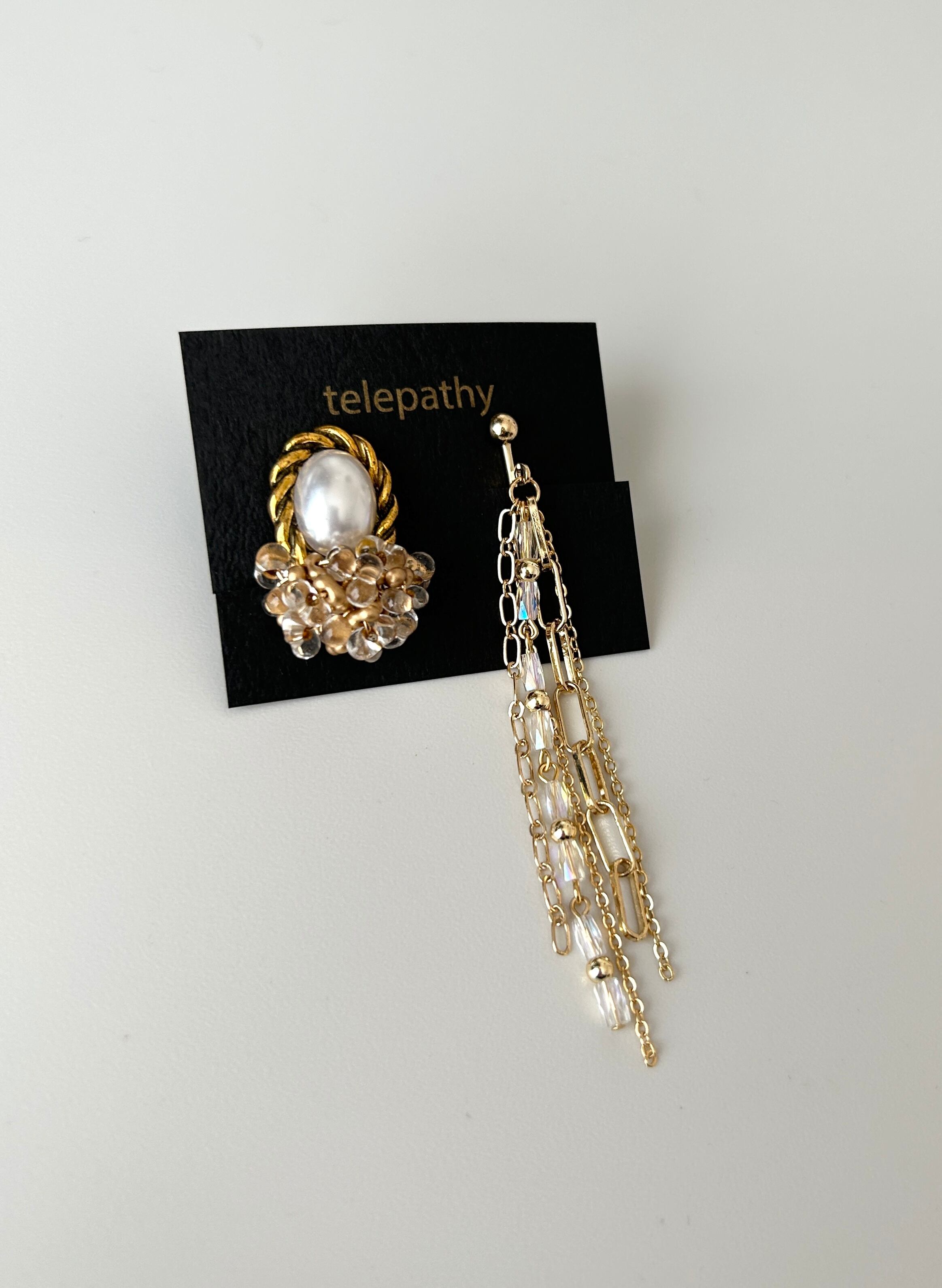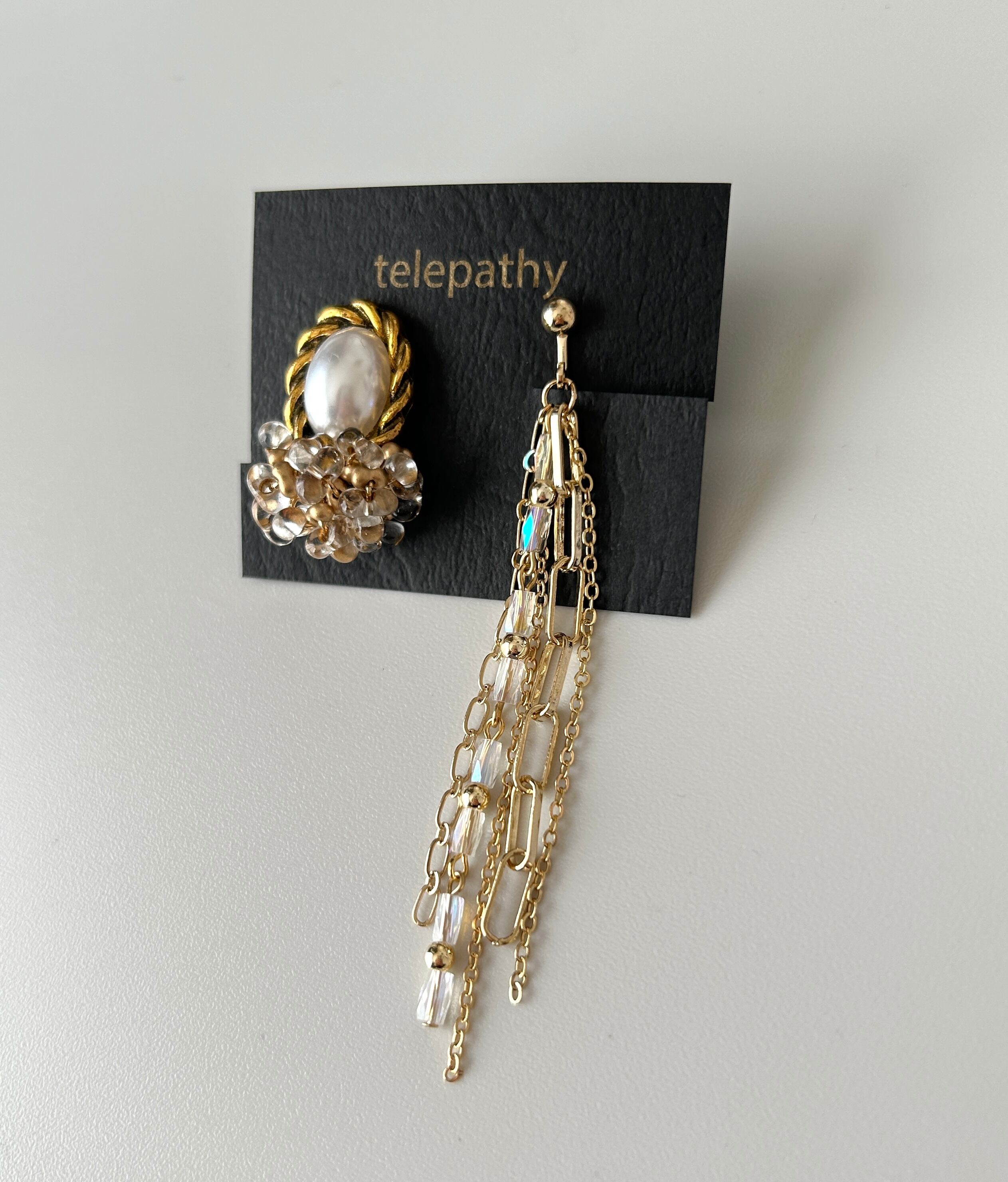 クラシカルパール&チェーンタッセル アシンメトリーイヤリング