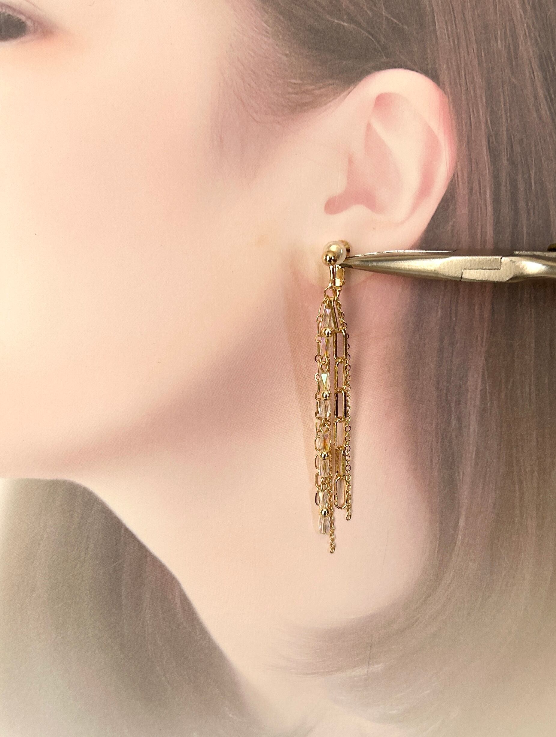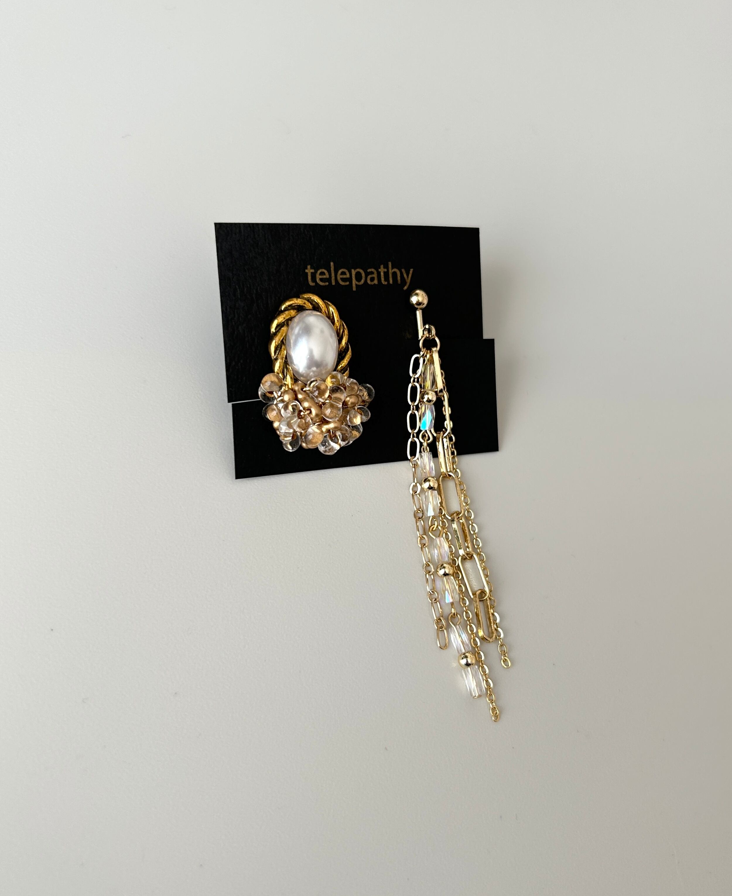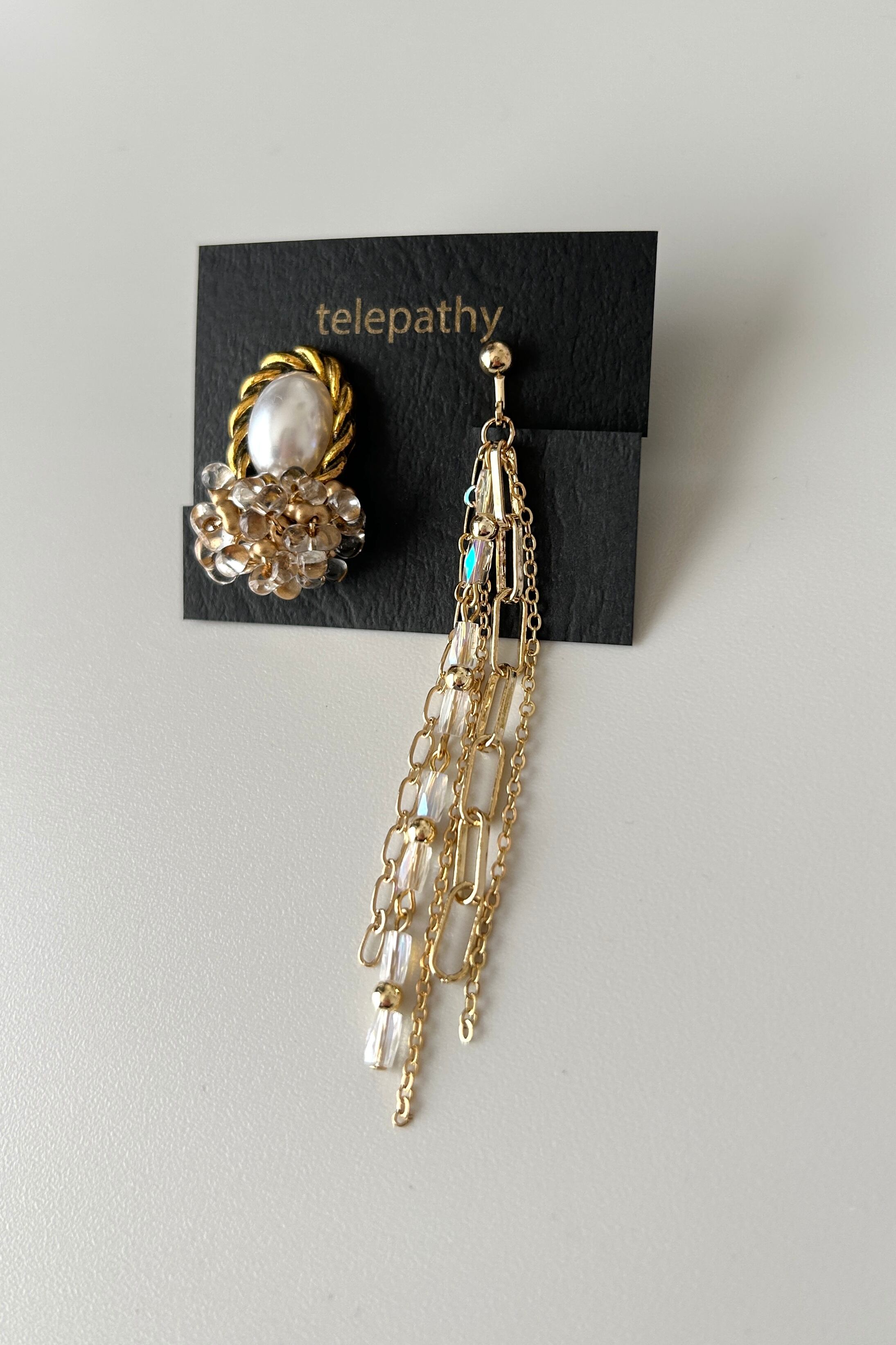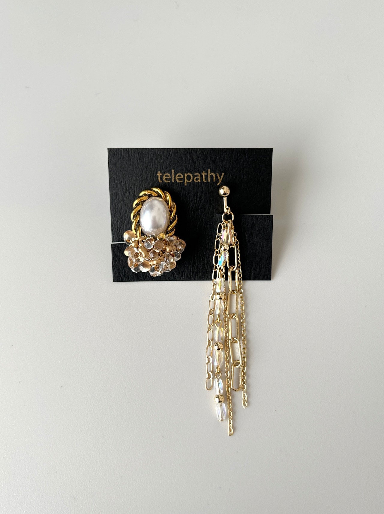 クラシカルパール&チェーンタッセル アシンメトリーイヤリング