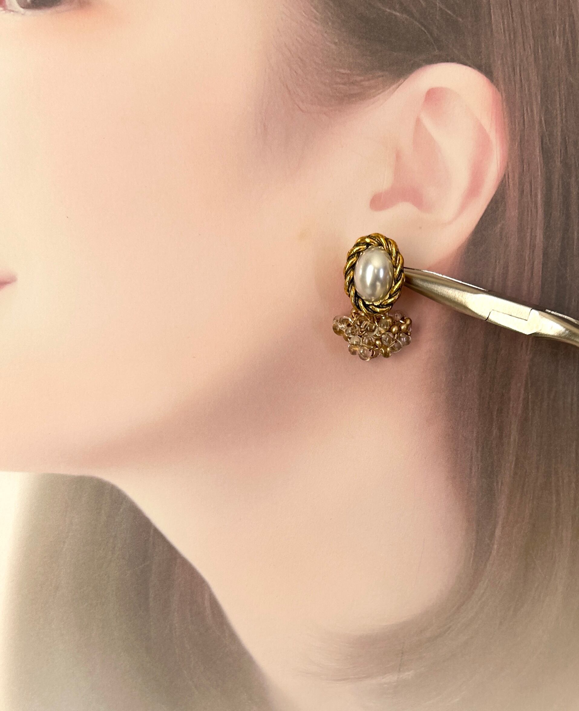 クラシカルパールカボション×チェコビーズと、ガラスビーズ&チェーンタッセルの