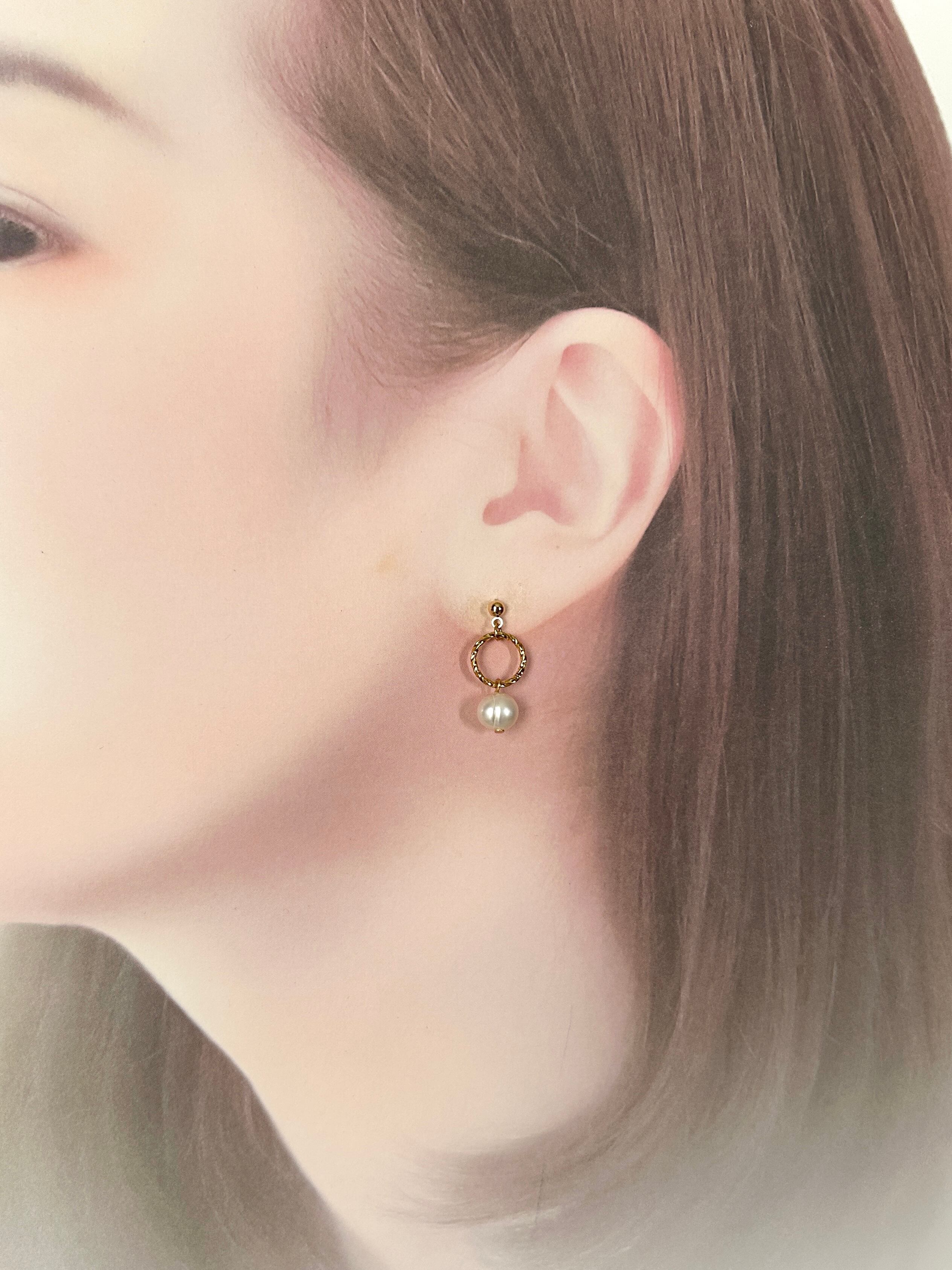 イヤーカフと合わせても可愛い、アシンメトリーピアスとミニメタルイヤーカフ のセットです。