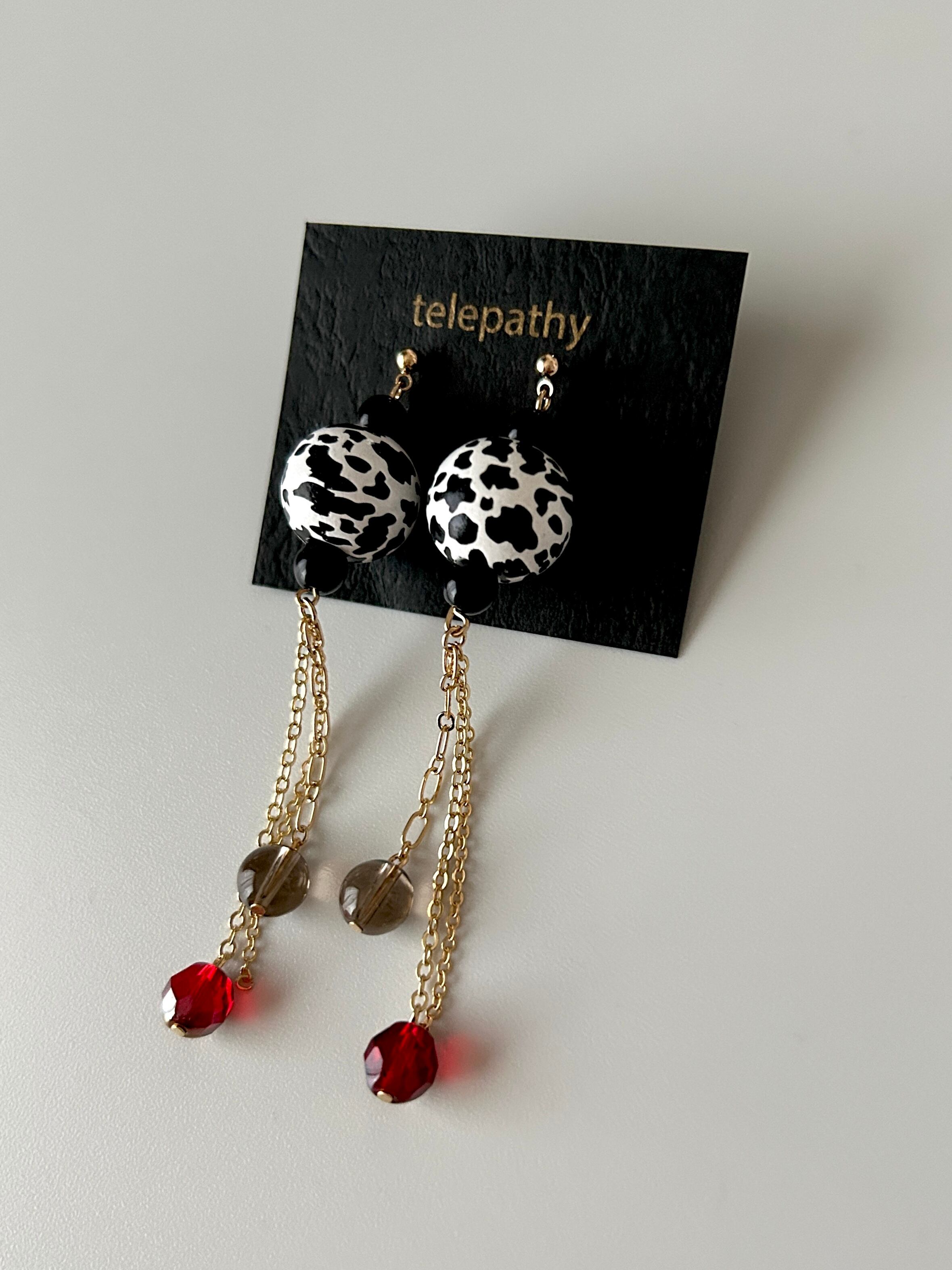 ダルメシアン柄ウッドビーズピアス/イヤリング