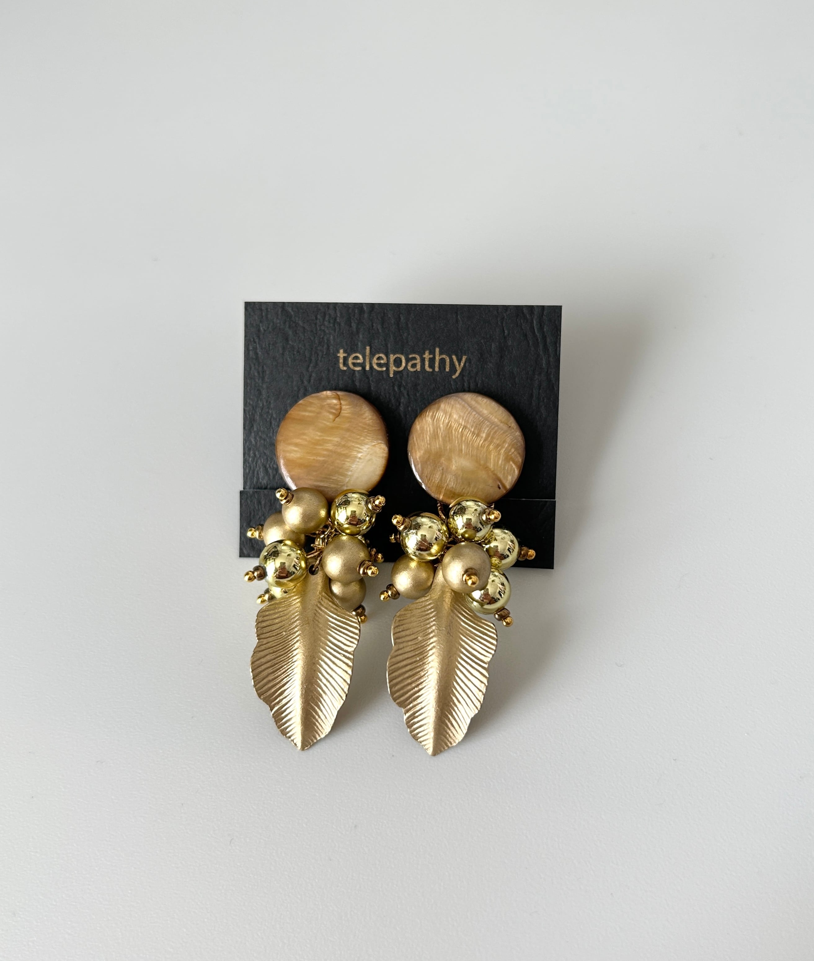 ブラウンシェル×ジャラジャラリーフ2wayイヤリング ゴールド